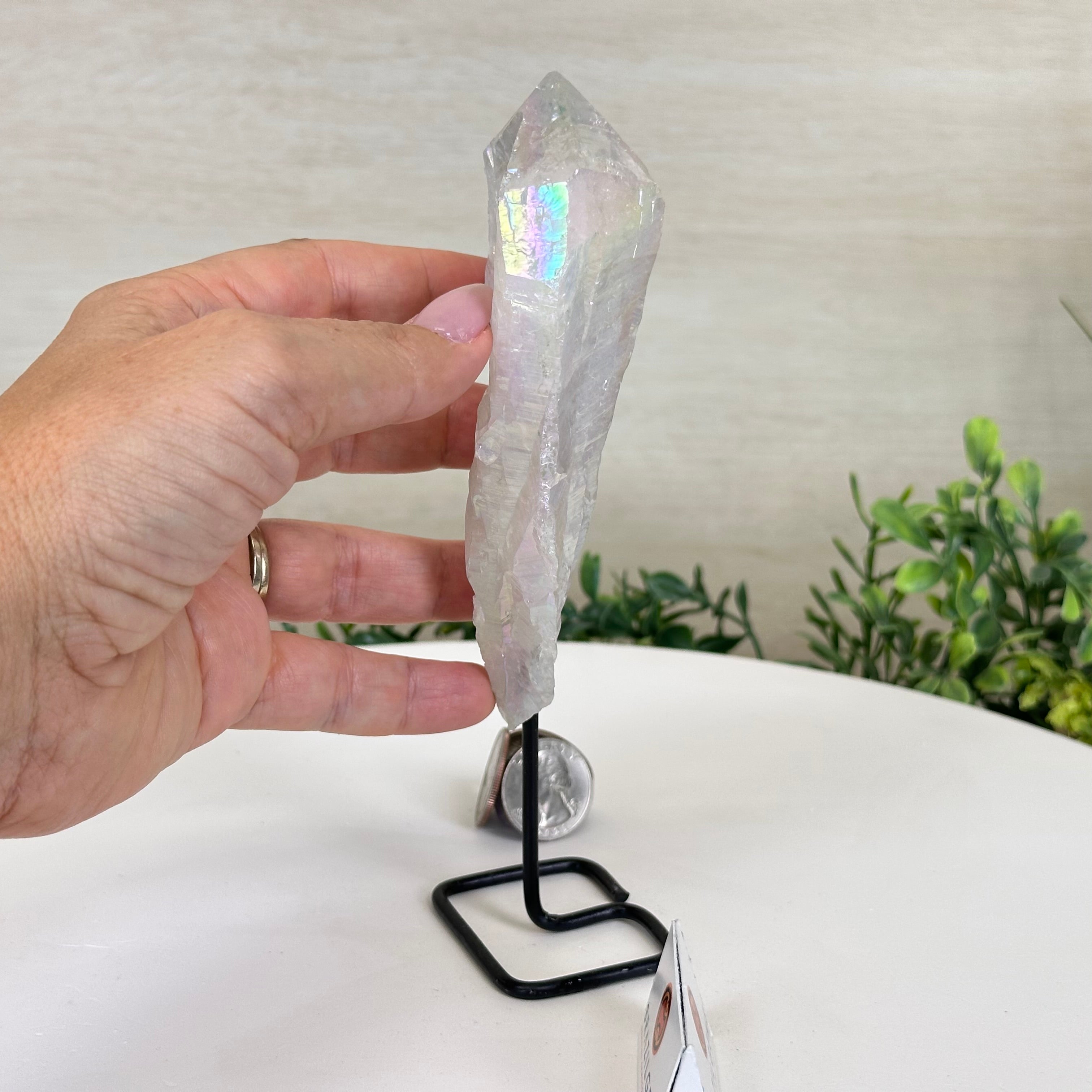 Angel Aura Quartz Point on a Metal Stand, 7.1" Tall #3122AA-041