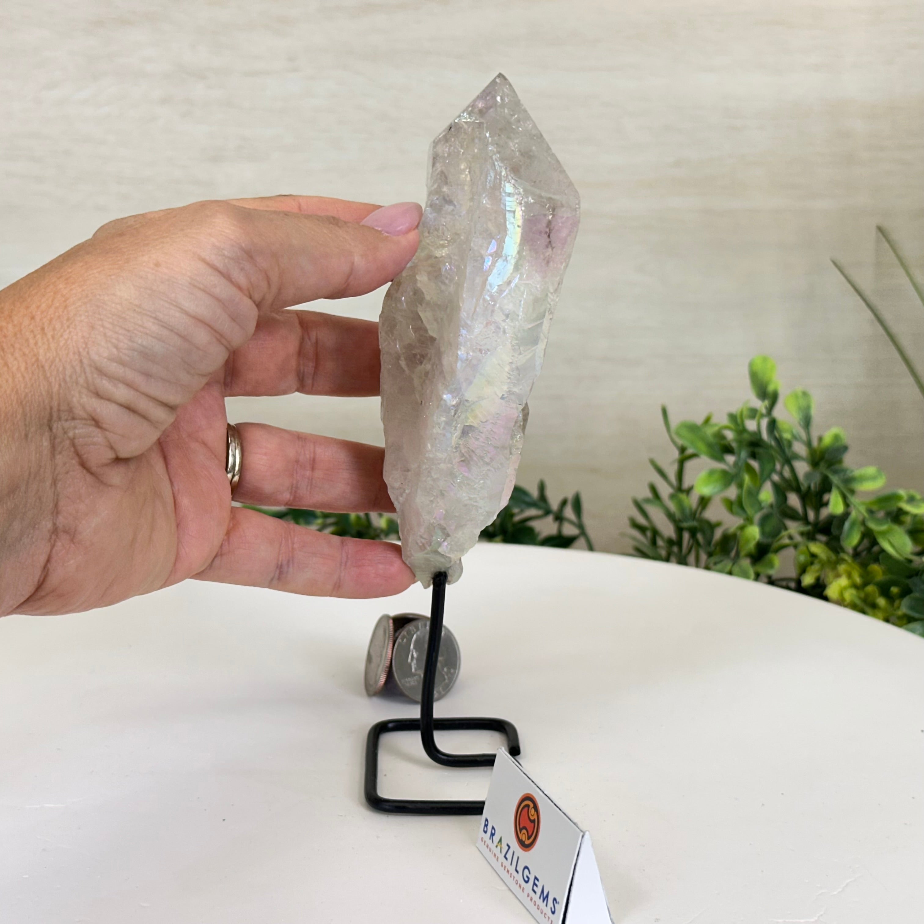 Angel Aura Quartz Point on a Metal Stand, 7.1" Tall #3122AA-047