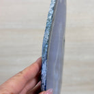 Brazilian Blue Agate Slice on a Metal Stand, 19.1" Tall #5055-0214