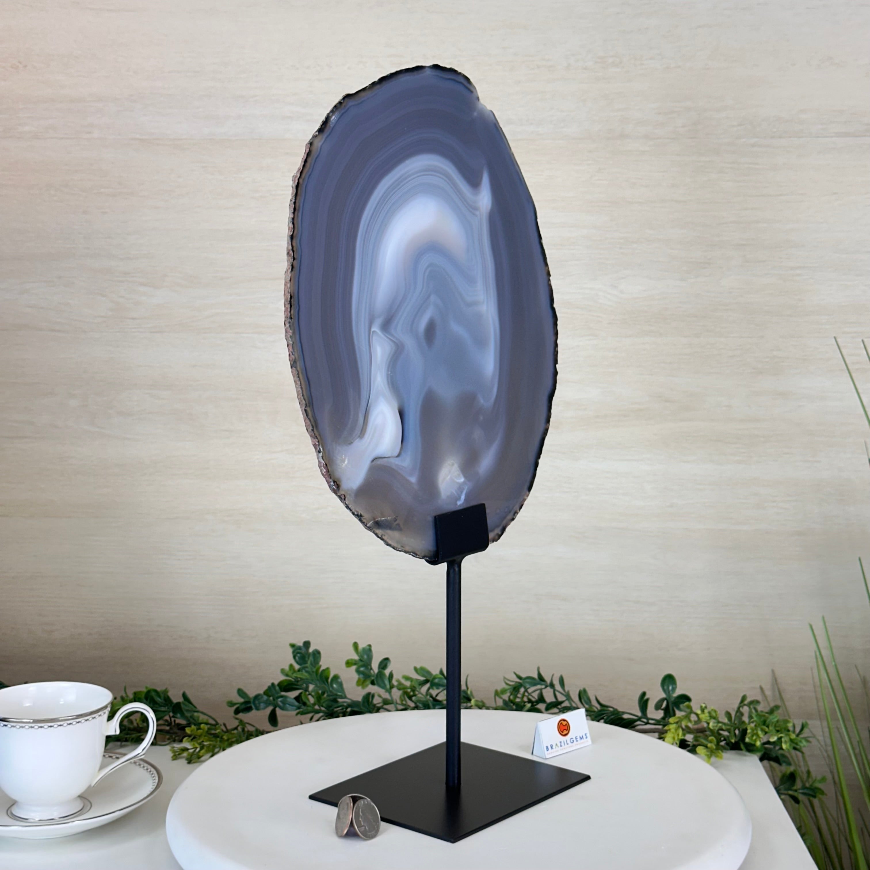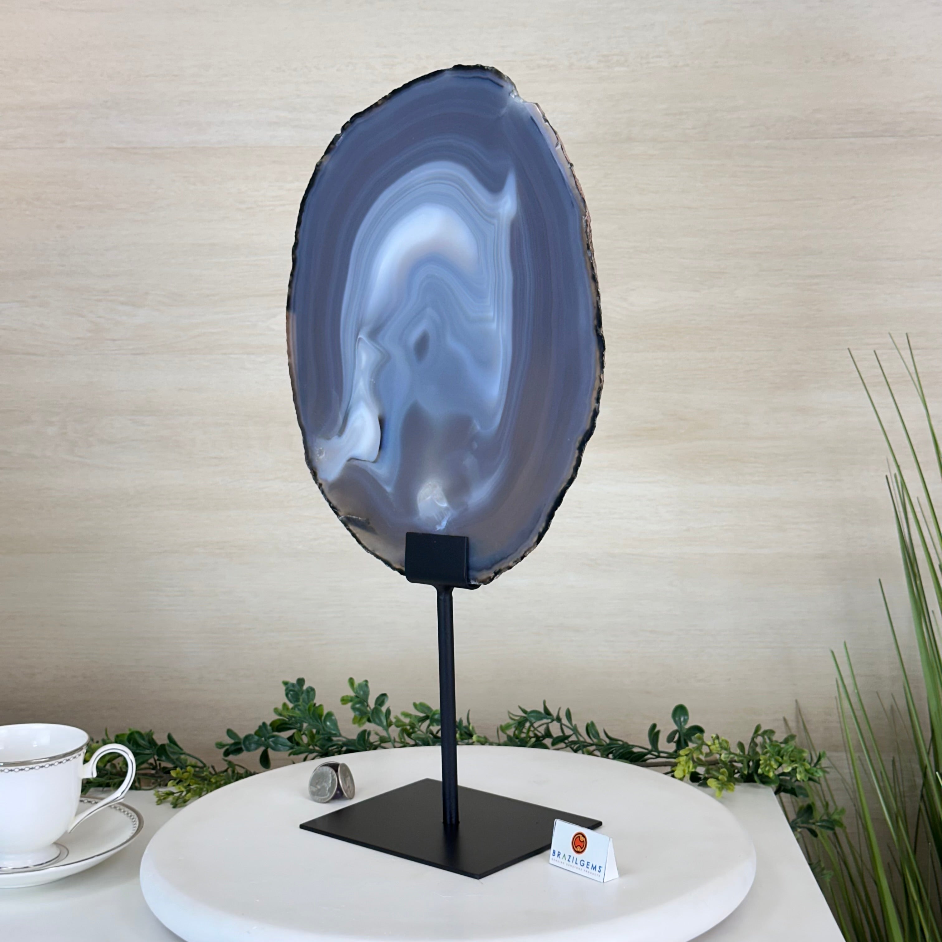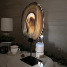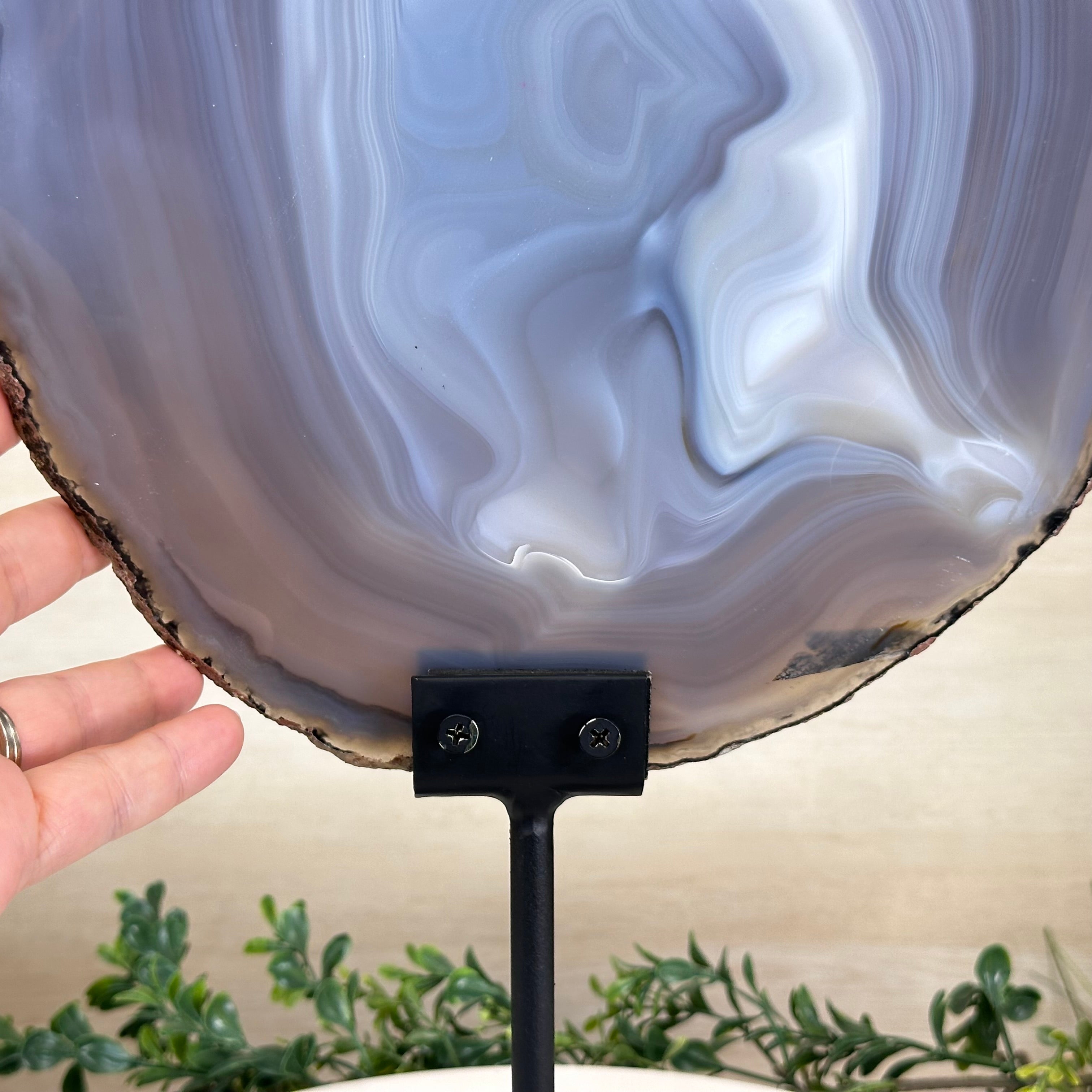 Large Natural Brazilian Agate Slice on a Metal Stand, 17.6" Tall #5056-0048