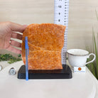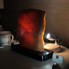 Elevate your space with this Brazilian Orchid Calcite Slice on a wood base. This piece is beautifully polished on the front with rough edges on the sides and the back. This slice will make a great addition or start to your crystal collection and will accent the décor of any room.