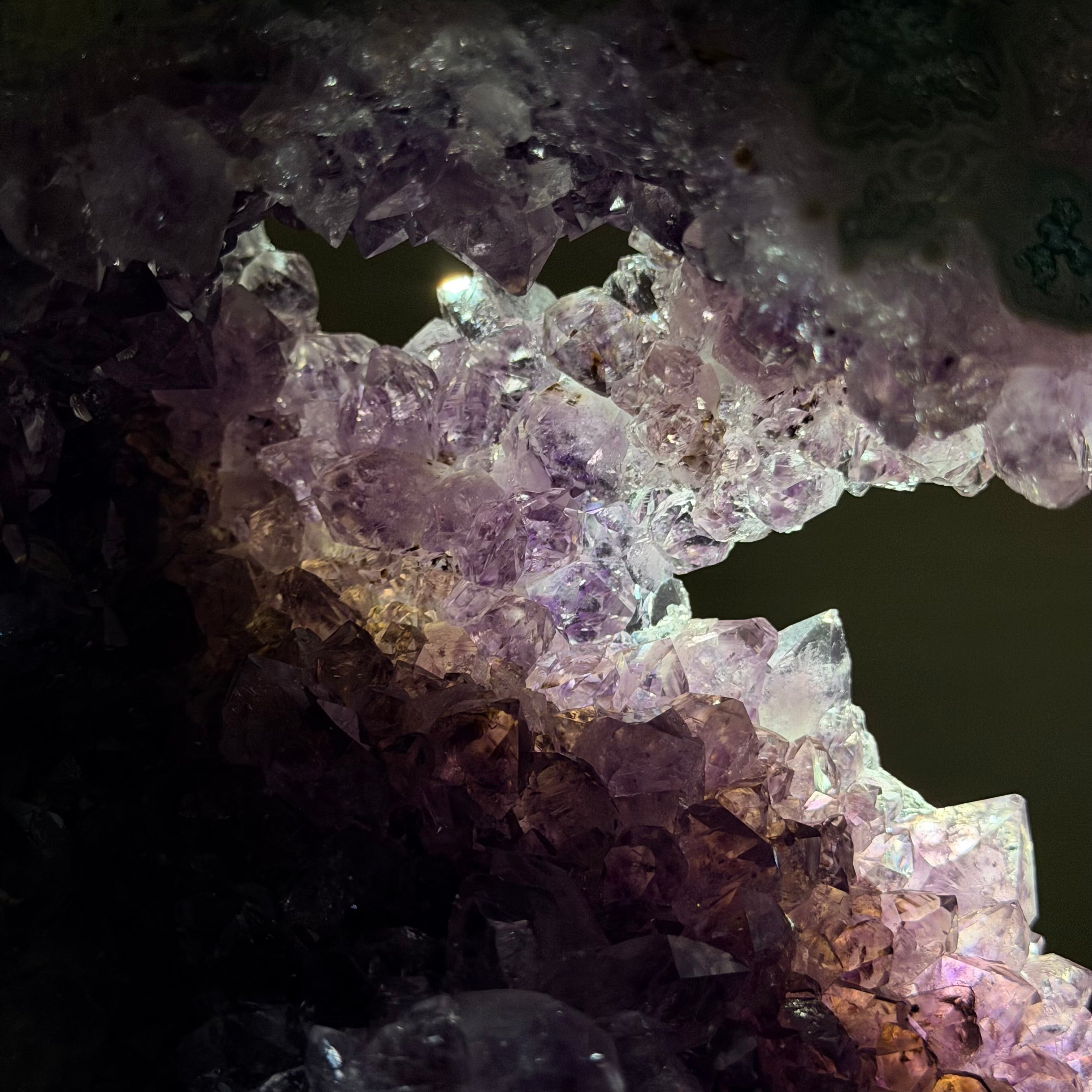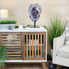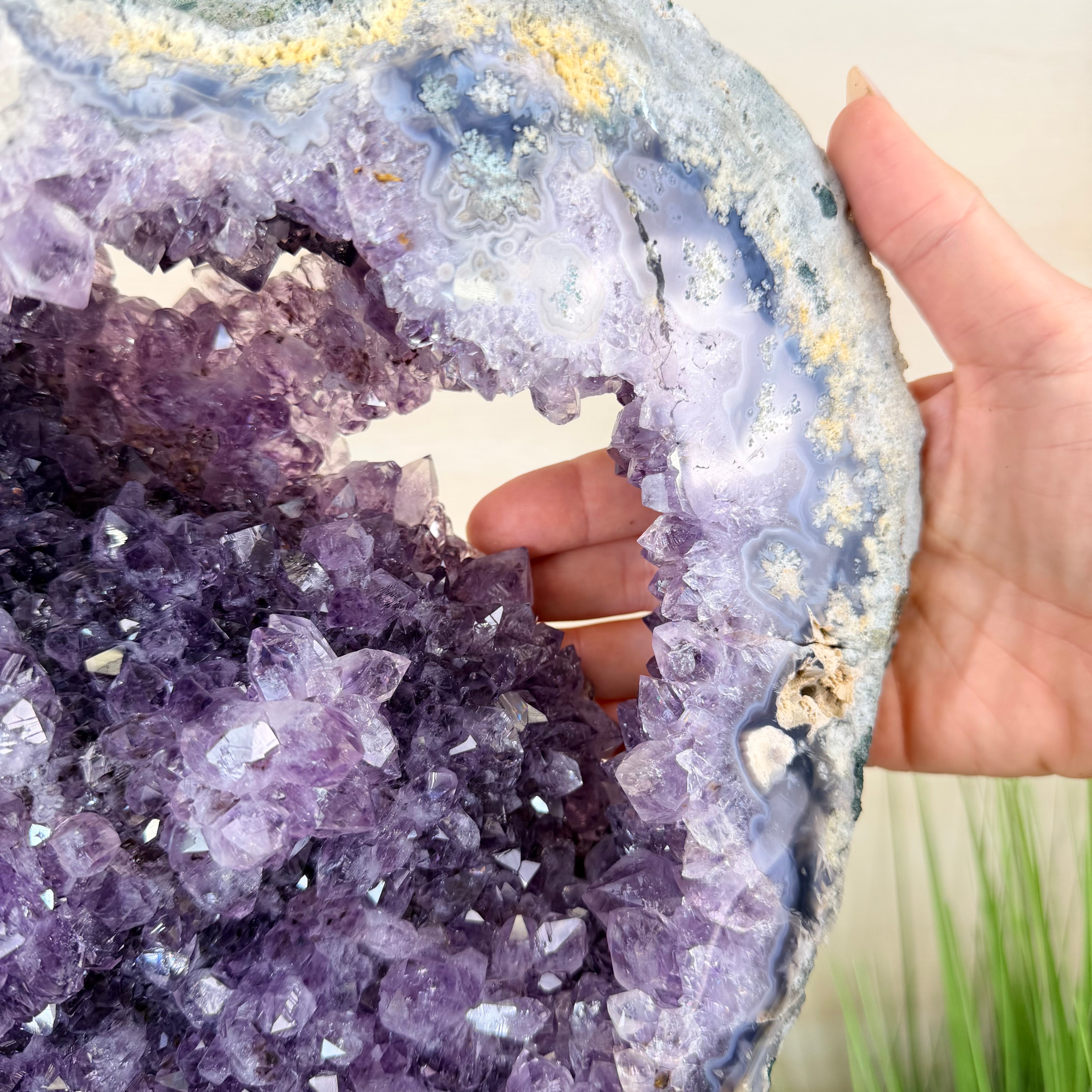 A crystal portal is often depicted as a mystical gateway or entrance formed with crystals, believed to connect different realms or dimensions. It will make a perfect focal point in your home or office. Add a small spotlight behind and watch it glow! It's definitely a gemstone to admire for generations to come.