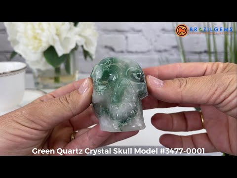 Handmade Polished Brazilian Green Quartz Crystal Skull. You can literally see the millions of years of nature's work to create such a beautiful crystal. This polished piece will become a conversation starter with friends and family.