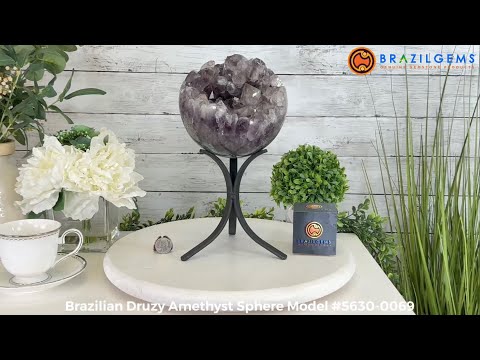 Brazil Gems® brings you this Brazilian Druzy Amethyst Sphere on a black metal stand. Beautifully crafted from a larger geode, this polished piece will become a conversation starter every single time.