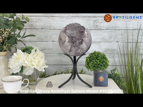 Brazil Gems® brings you this Brazilian Druzy Amethyst Sphere on a black metal stand. Beautifully crafted from a larger geode, this polished piece will become a conversation starter every single time.
