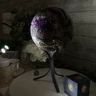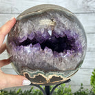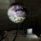 Druzy Amethyst Sphere on a Metal Base, 15.4 lbs & 12.8" Tall #5630-0077