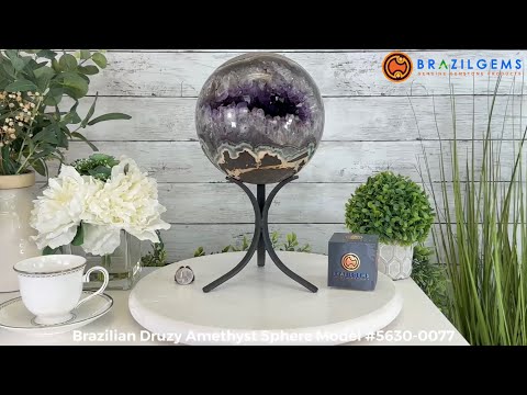 Brazil Gems® brings you this Brazilian Druzy Amethyst Sphere on a black metal stand. Beautifully crafted from a larger geode, this polished piece will become a conversation starter every single time.