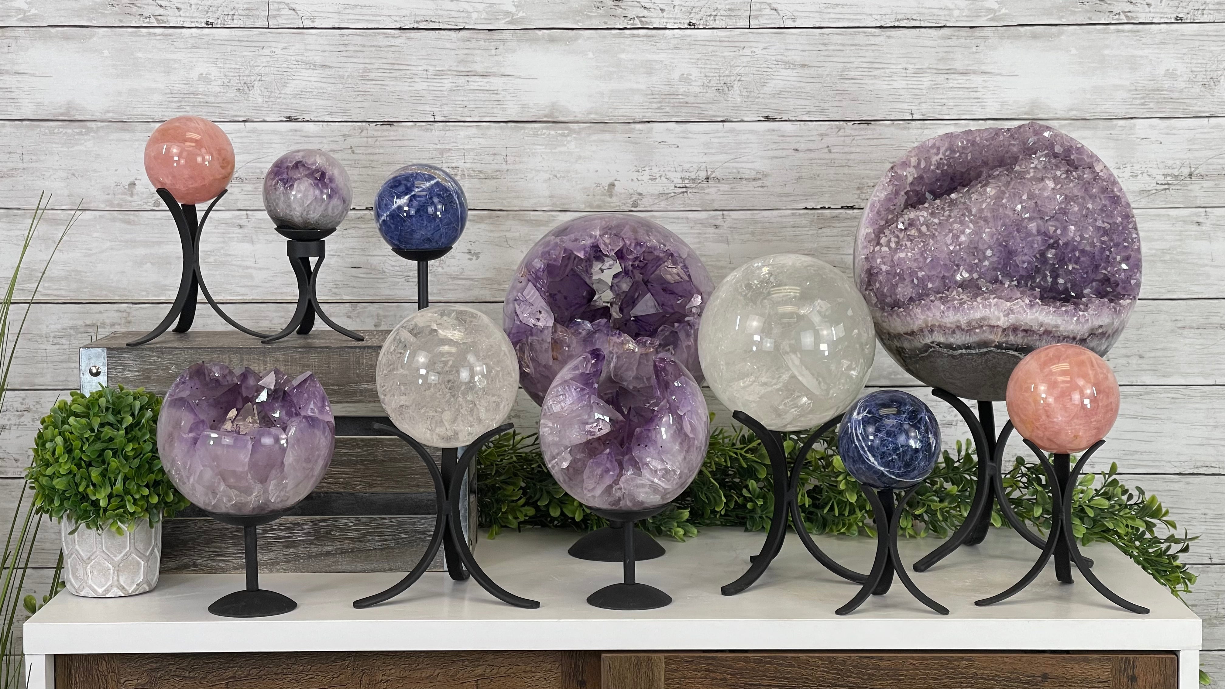 We offer spheres in various gemstone options including Amethyst, Clear Quartz, Rose Quartz and Sodalite.