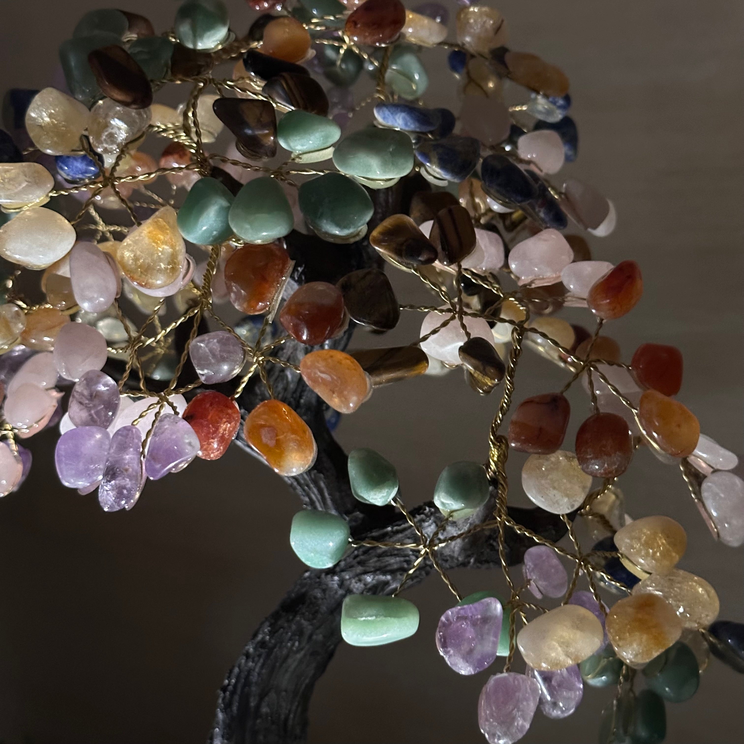 Each piece is carefully crafted by skilled artisans in Brazil. From selecting the crystal base to forming the trunk and meticulously attaching each gemstone by hand, the result is a work of art that radiates harmony, care, and intention.