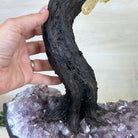 At approximately 26.1" tall to the top of its bark style branches this gemstone tree is both big and a design statement that will impact any room in your home or office. The amethyst clusters used as bases for this size of our gemstone trees are substantial gemstones on their own.