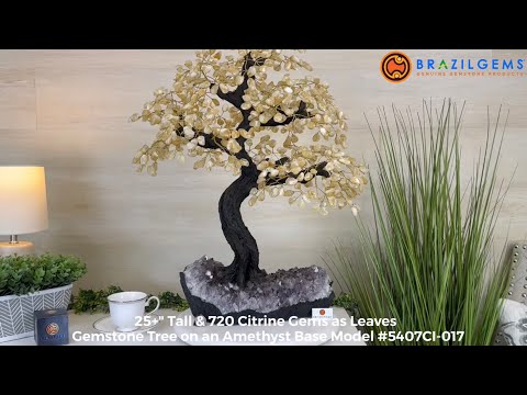 Disclaimer: This is a genuine gemstone handmade item sold by Brazil Gems® as is and as you see it in its images and video. It is the exact tree you will receive. The base may contain natural imperfections as well as imperfections, repairs and broken edges from the extraction, polishing, and prepping processes and the branches and leaf gemstones may contain imperfections as well. To allow for it to stand on its own the amethyst cluster base may have a small amount of cement added to the bottom then painted black. As is the case for the majority of Citrine on the market from Brazil, this Citrine has been heated to give it its beautiful amber color. At Brazil Gems® we make every effort to get measurements as exact as possible but they are done by human hands and eyes and therefore may have minor discrepancies.