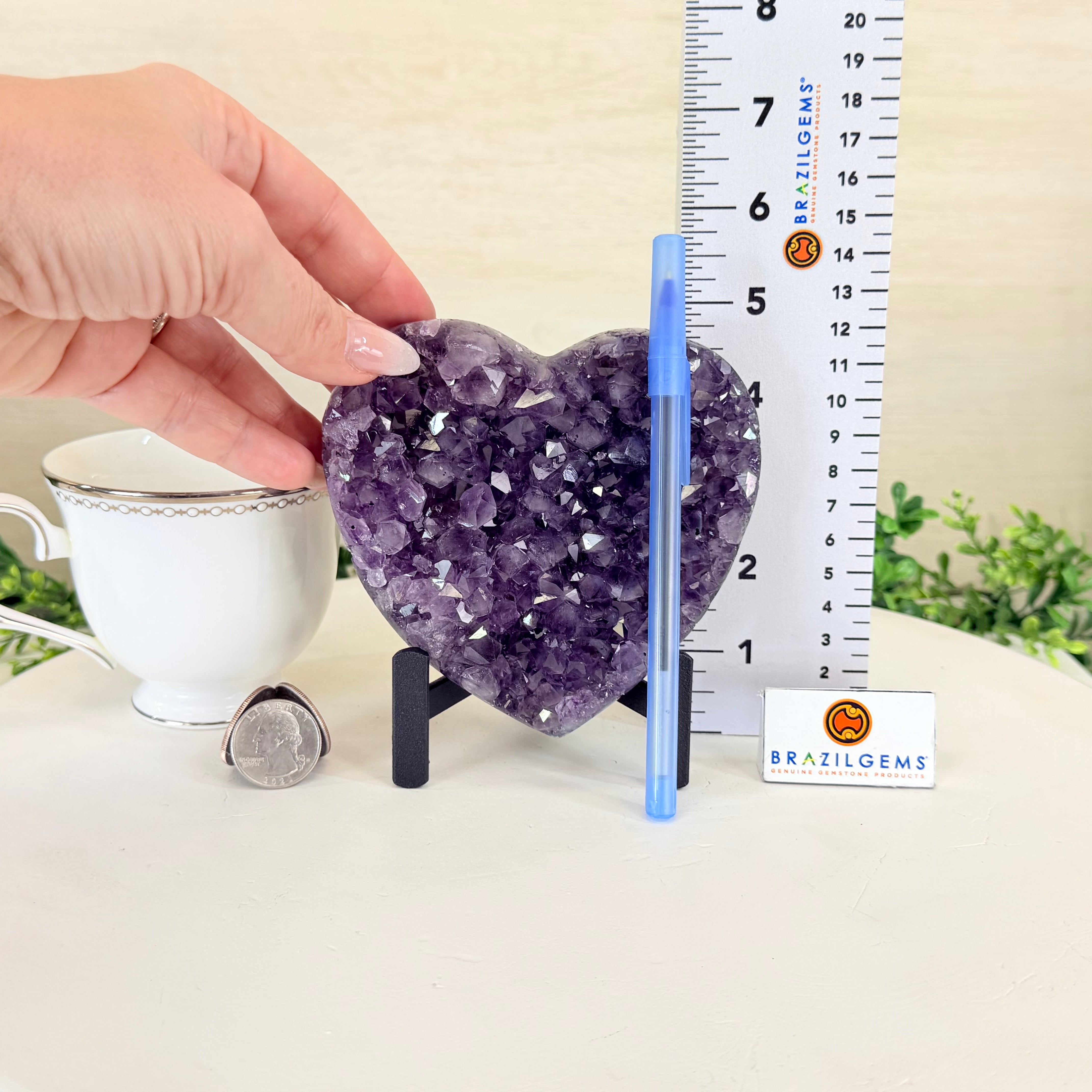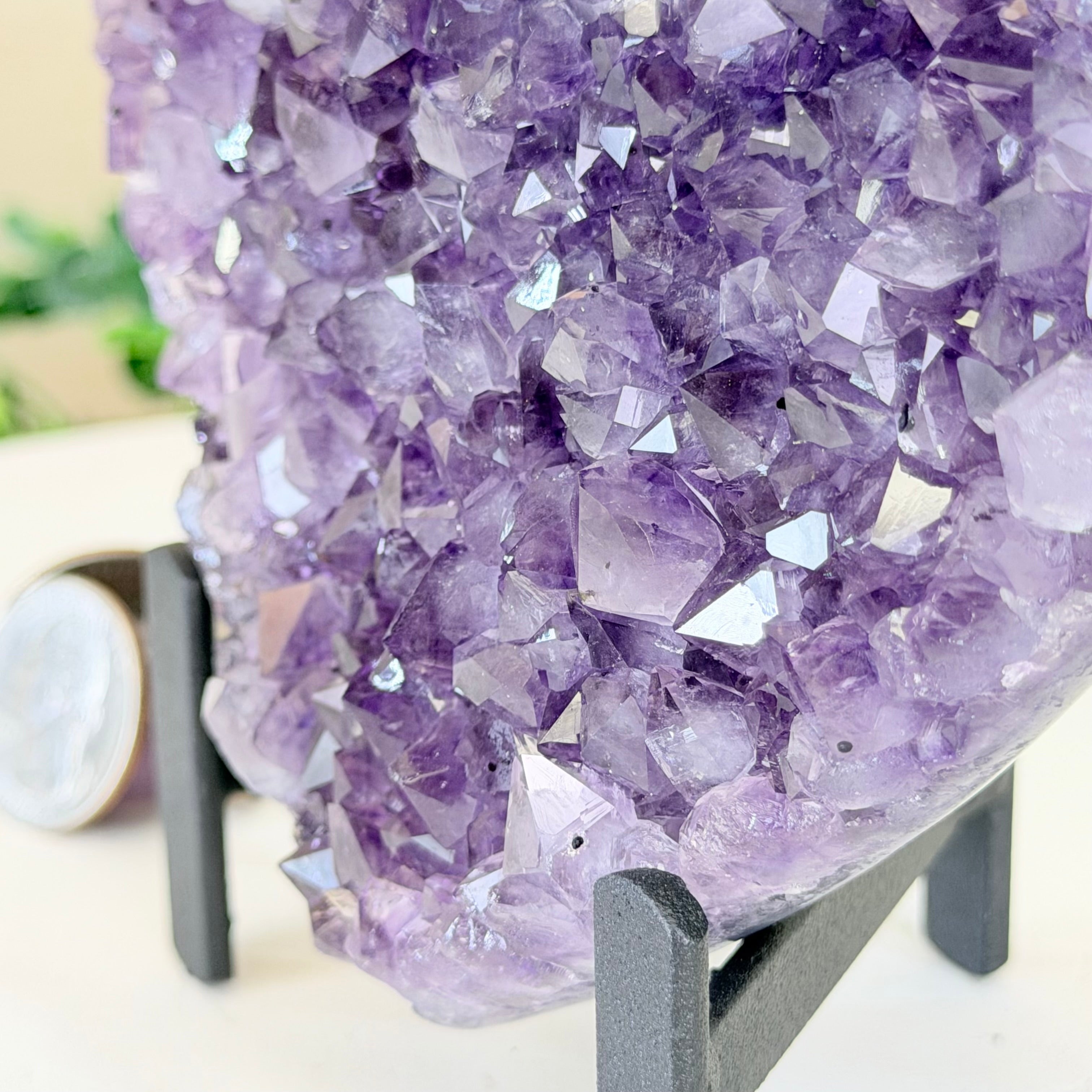 Disclaimer: This is a natural gemstone crystal sold by Brazil Gems® as is and as you see it in its images and video. It is the exact one you will receive. It may contain natural imperfections as well as imperfections, broken edges and repairs from the extraction, polishing, prepping and mounting processes. The metal stand is custom made to fit this gemstone and painted black. At Brazil Gems® we make every effort to get measurements as exact as possible but they are done by human hands and eyes and therefore may have minor discrepancies.