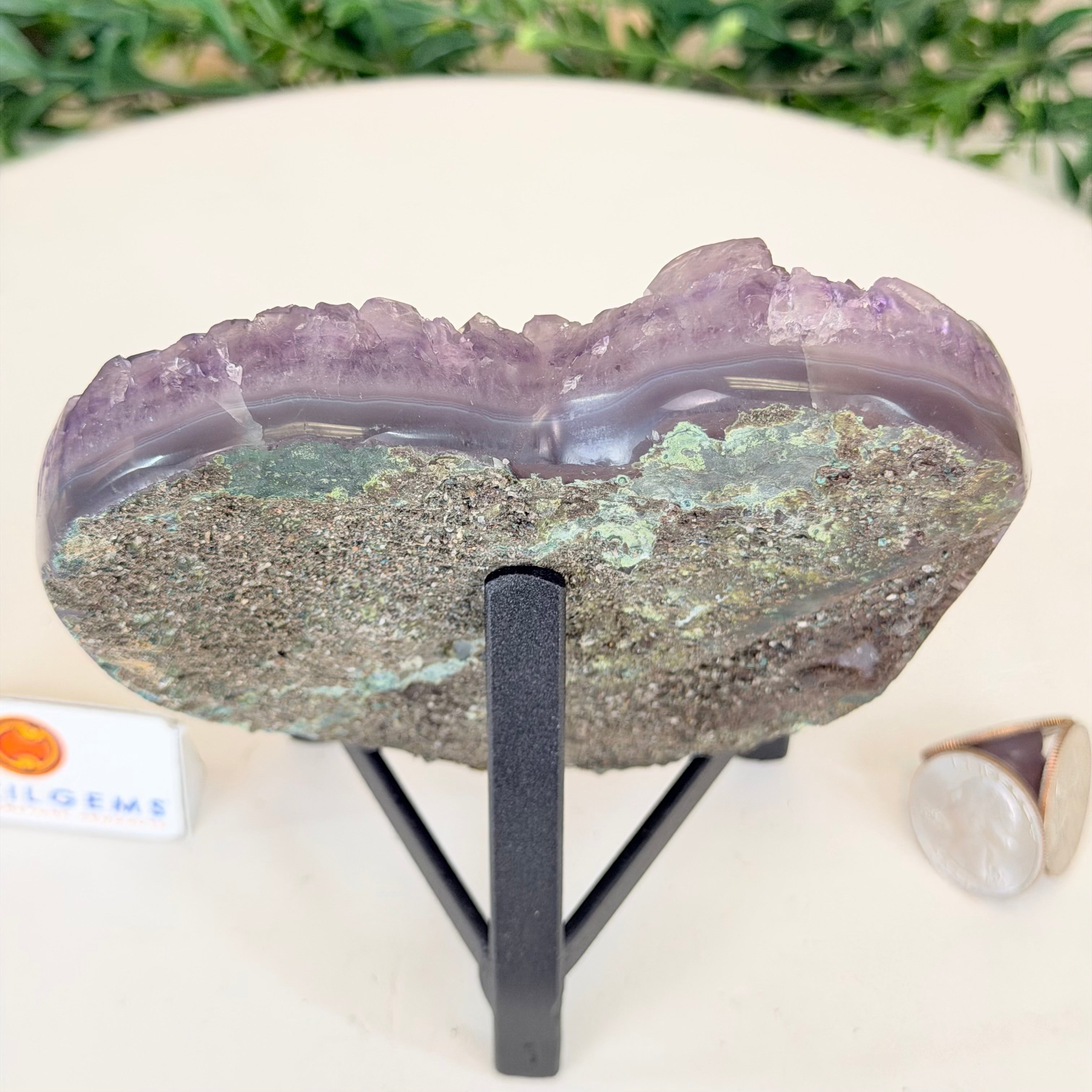 Amethyst Heart Geode on a Metal Stand, 1.3 lbs and 5" Tall #5463-0367