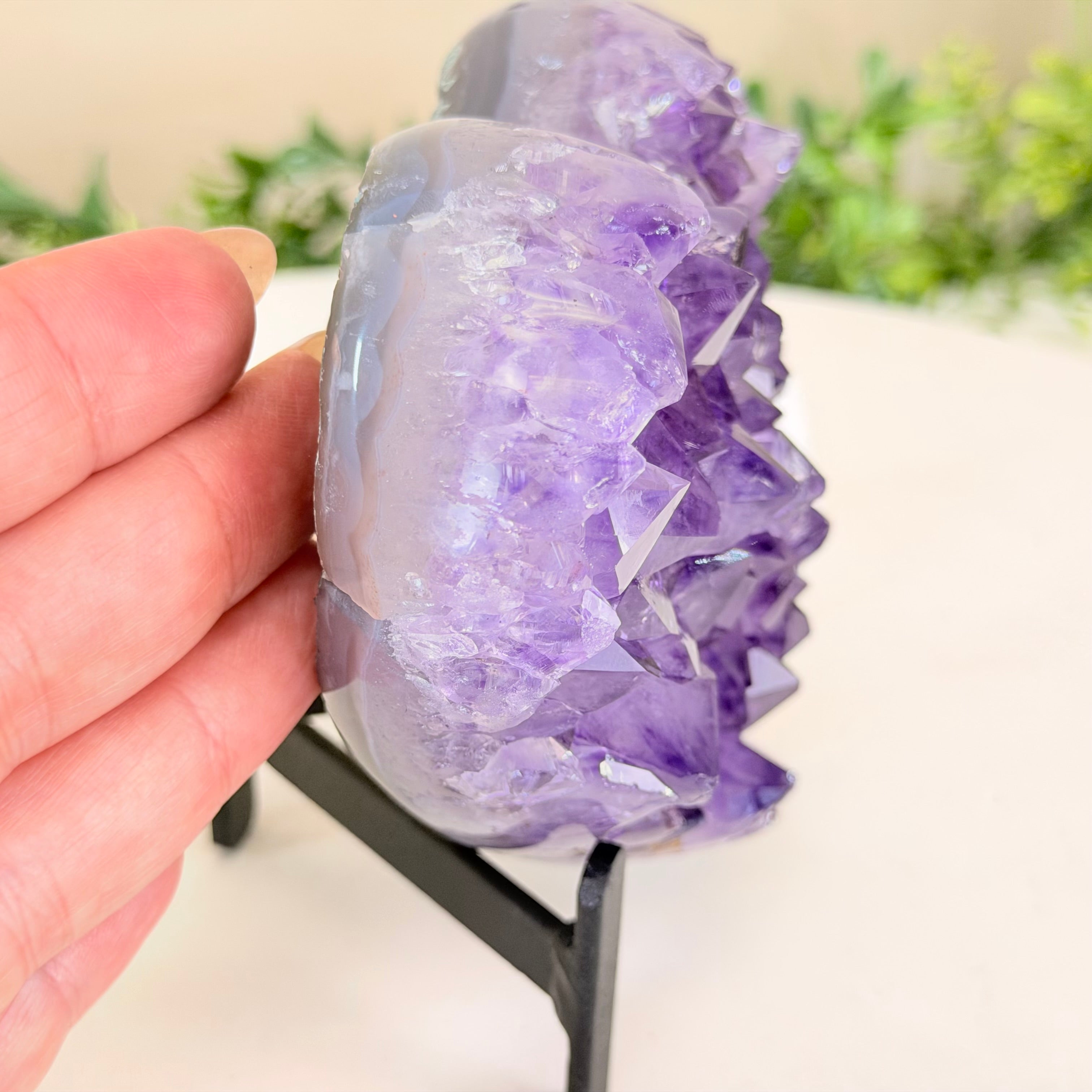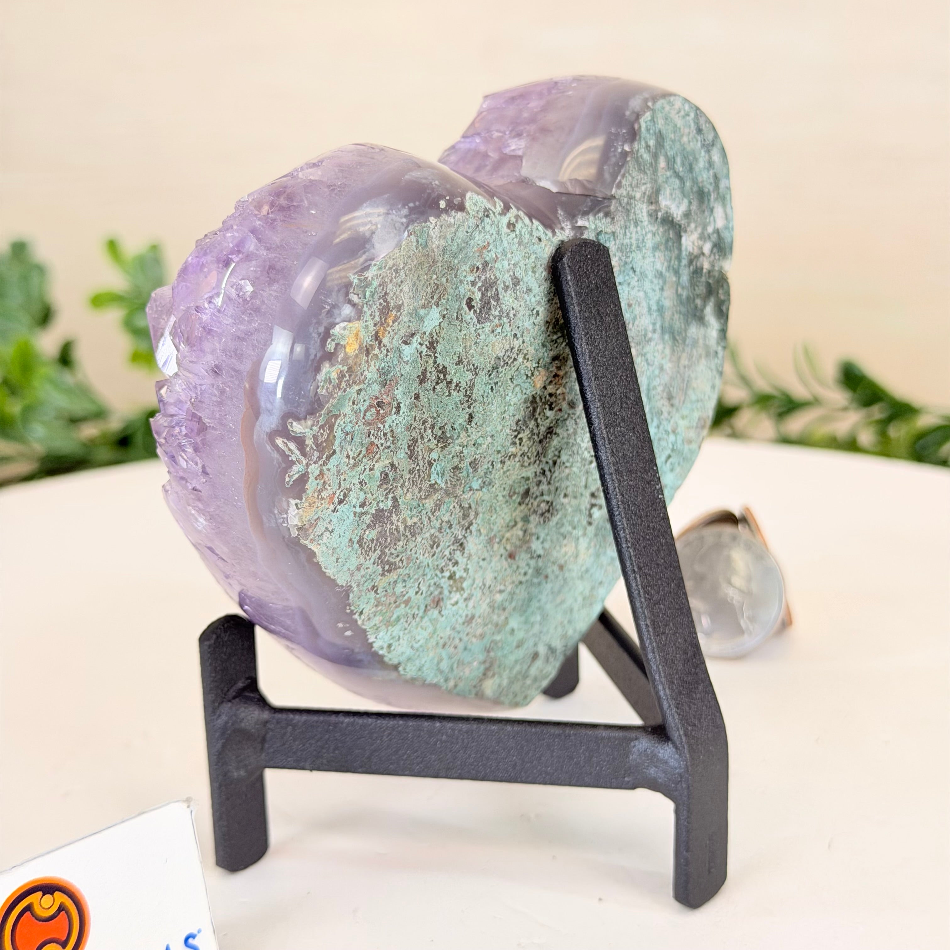 Amethyst Heart Geode on a Metal Stand, 1.3 lbs and 4.4" Tall #5463-0368