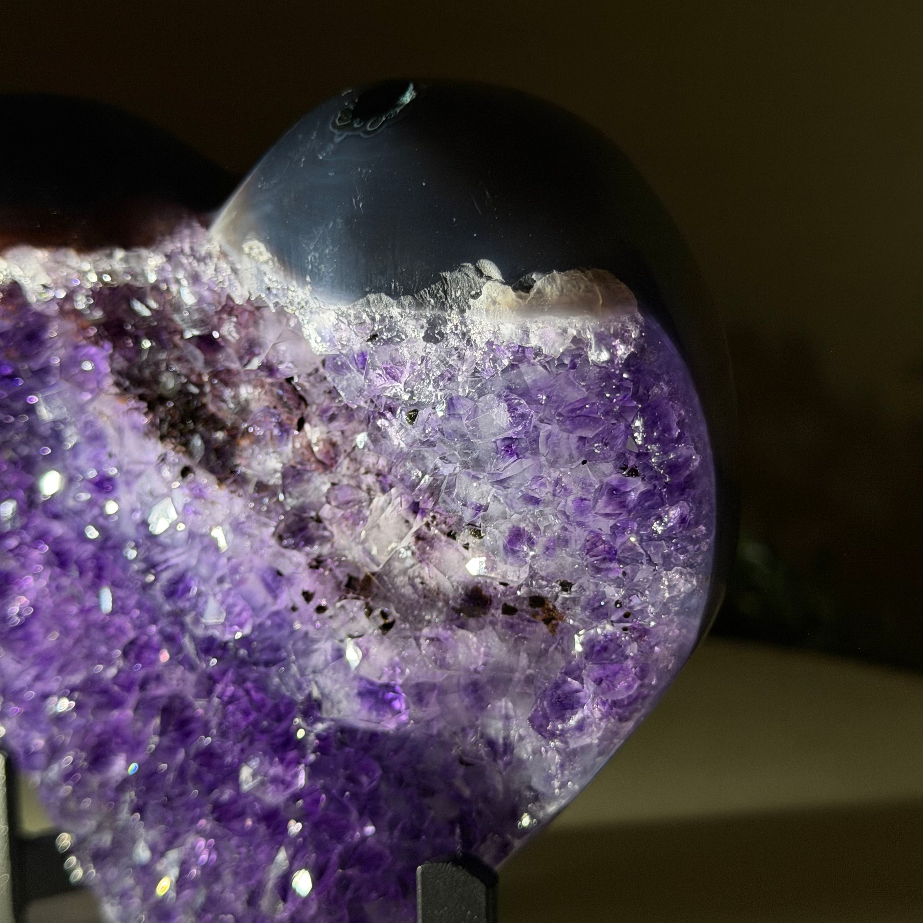 Amethyst Heart Geode on a Metal Stand, 1.5 lbs and 5" Tall #5463-0371