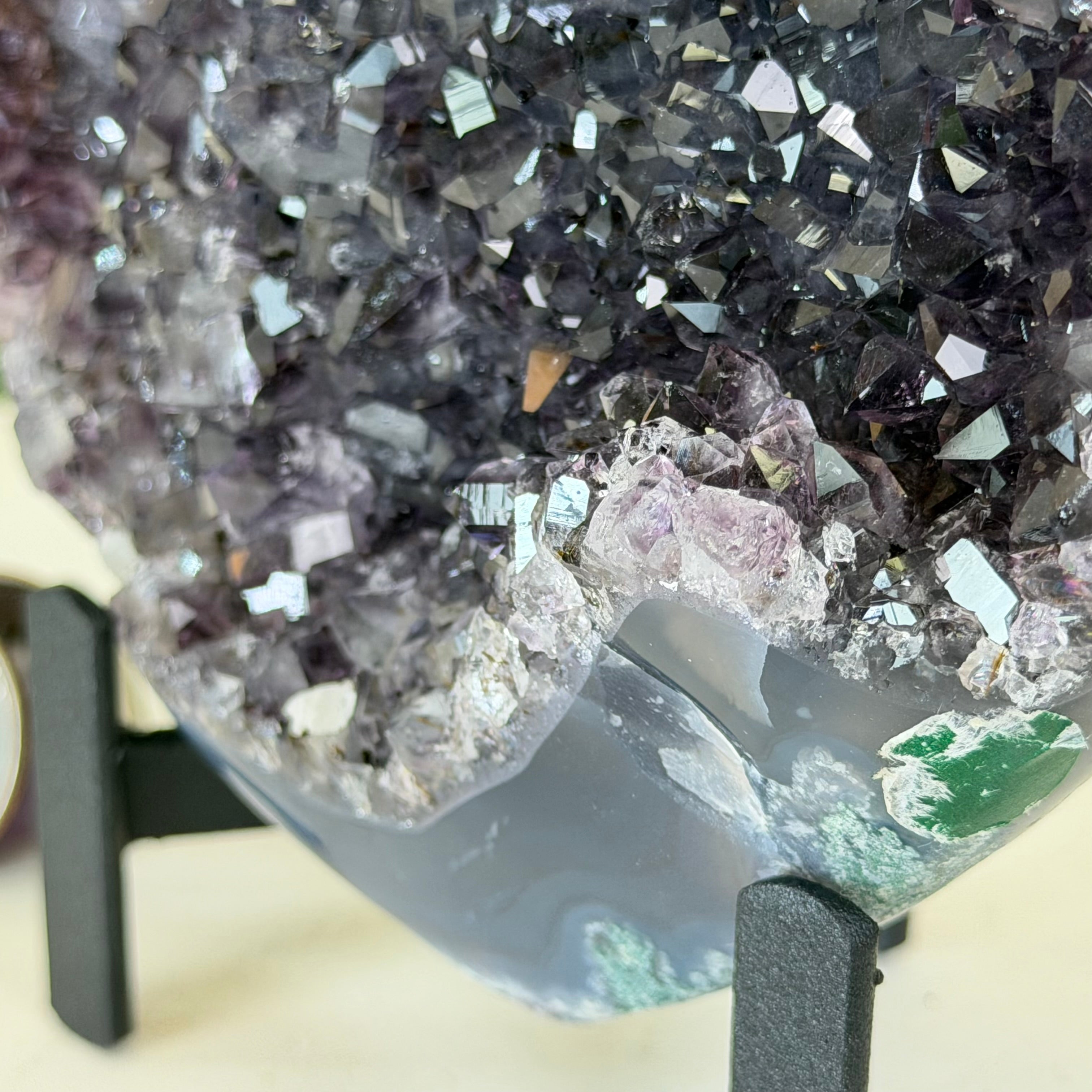 Disclaimer: This is a natural gemstone crystal sold by Brazil Gems® as is and as you see it in its images and video. It is the exact one you will receive. It may contain natural imperfections as well as imperfections, broken edges and repairs from the extraction, polishing, prepping and mounting processes. The metal stand is custom made to fit this gemstone and painted black. At Brazil Gems® we make every effort to get measurements as exact as possible but they are done by human hands and eyes and therefore may have minor discrepancies.