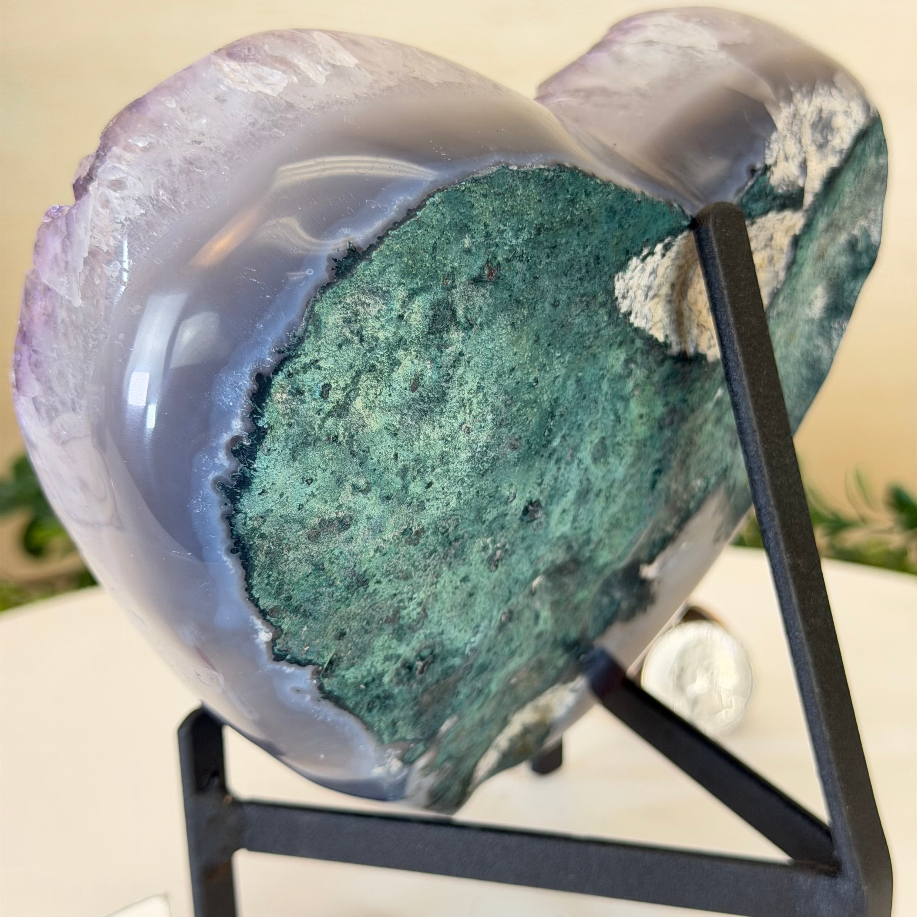 Amethyst Heart Geode on a Metal Stand, 4.3 lbs and 6.3" Tall #5463-0386