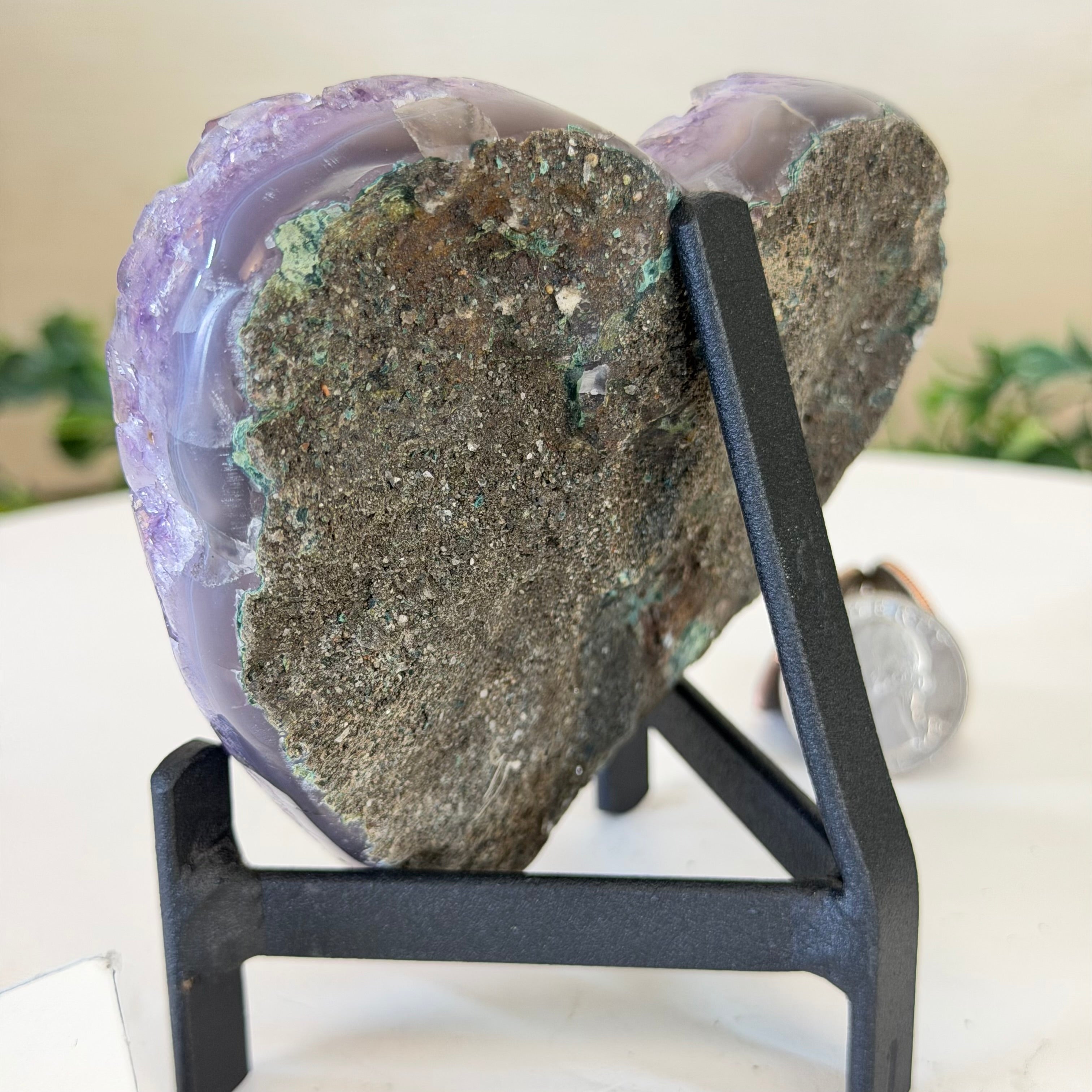 Amethyst Heart Geode on a Metal Stand, 0.9 lbs and 3.9" Tall #5463-0389
