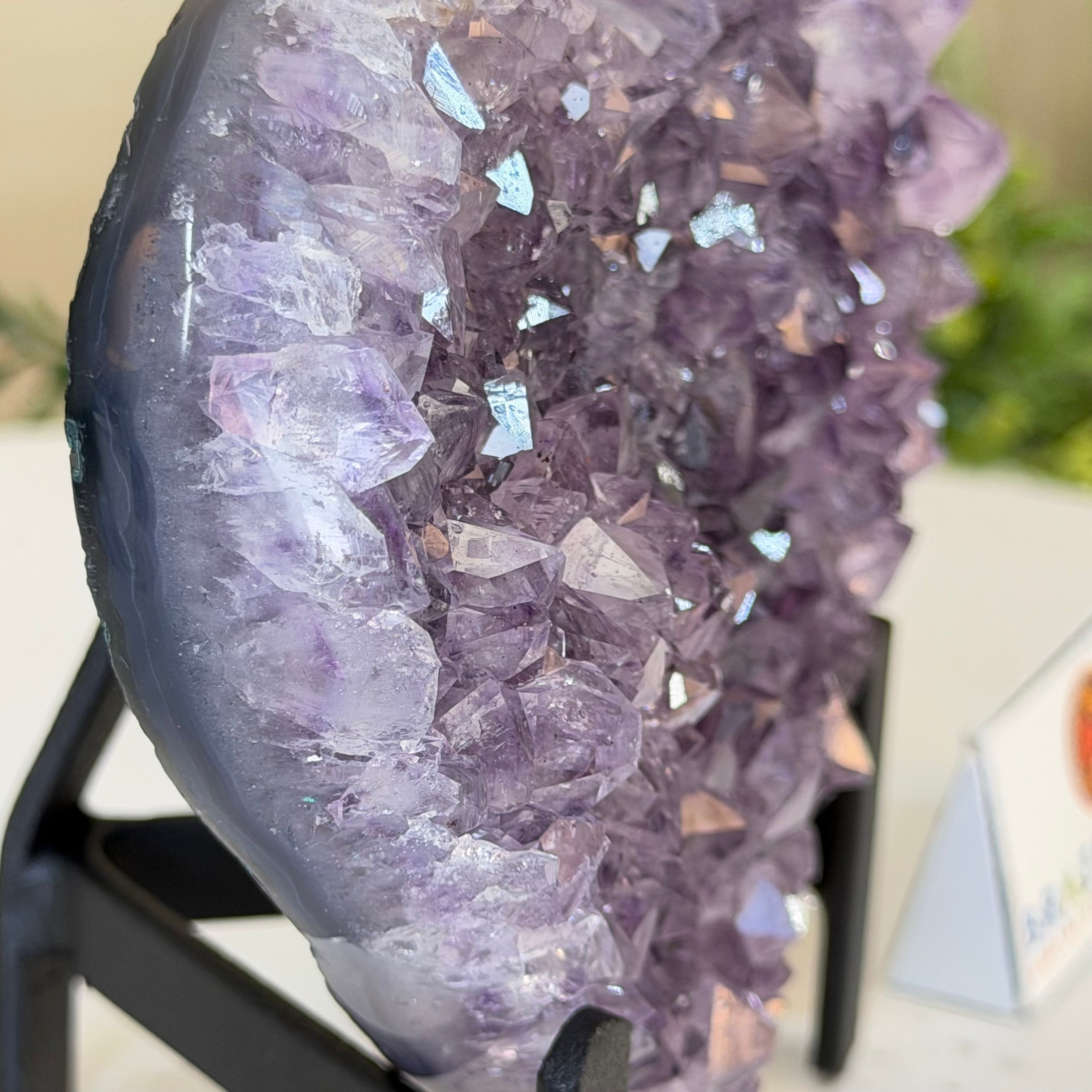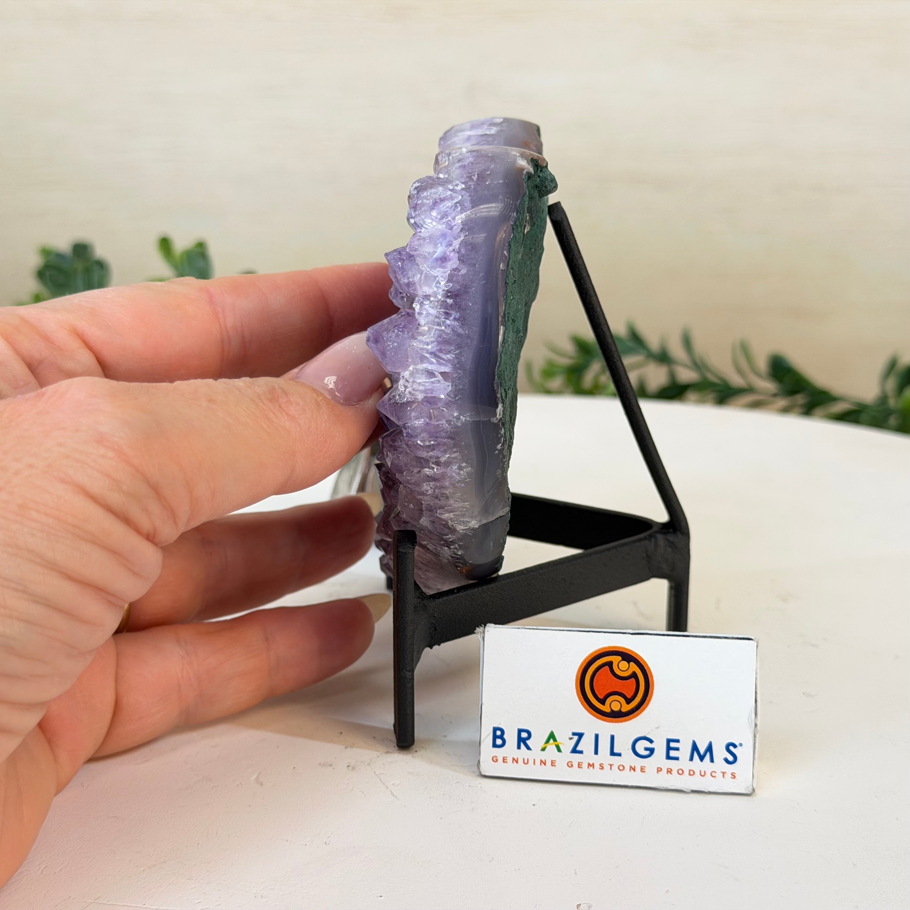 Disclaimer: This is a natural gemstone crystal sold by Brazil Gems® as is and as you see it in its images and video. It is the exact one you will receive. It may contain natural imperfections as well as imperfections, broken edges and repairs from the extraction, polishing, prepping and mounting processes. The metal stand is custom made to fit this gemstone and painted black. At Brazil Gems® we make every effort to get measurements as exact as possible but they are done by human hands and eyes and therefore may have minor discrepancies.