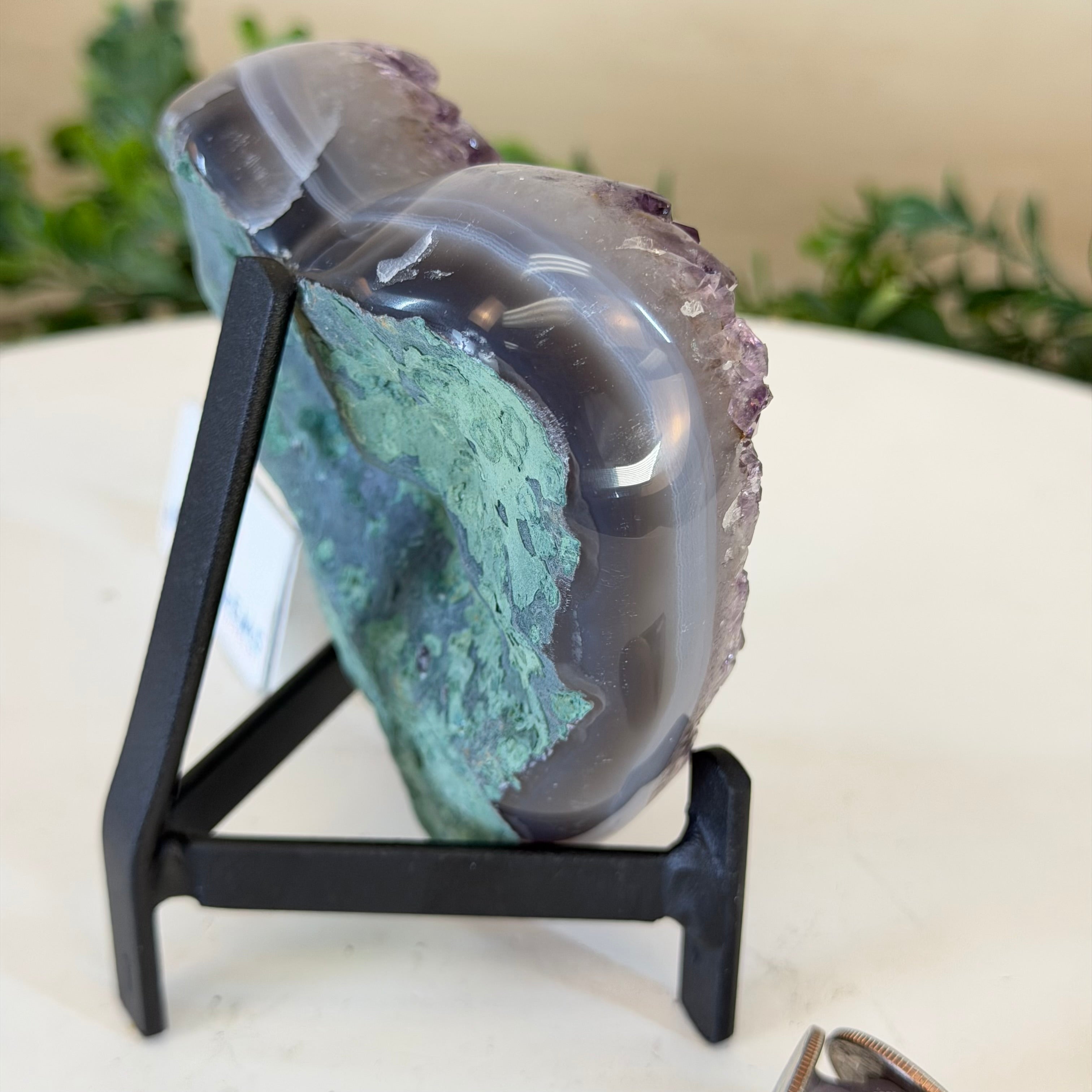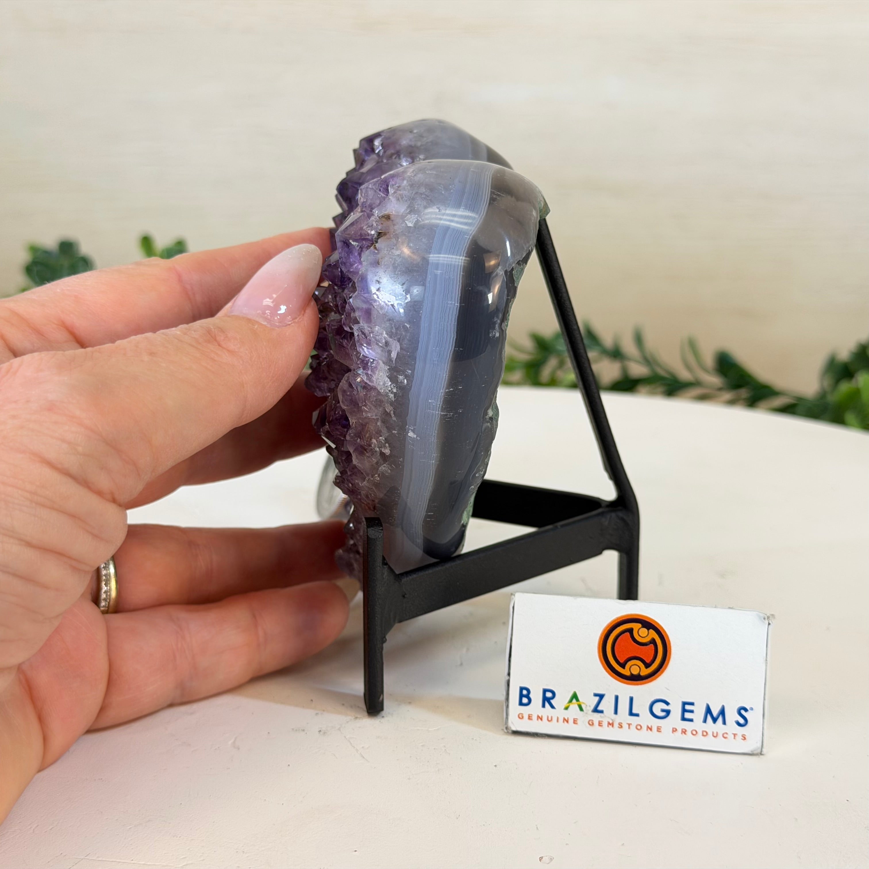 Amethyst Heart Geode on a Metal Stand, 1.1 lbs and 4.1" Tall #5463-0392