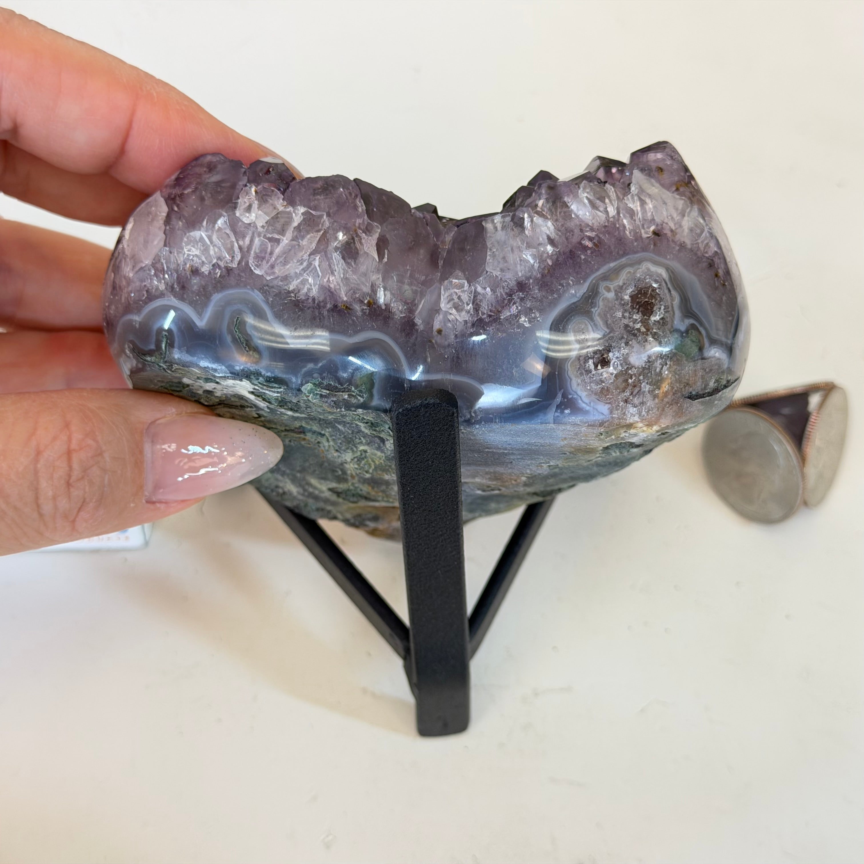 Amethyst Heart Geode on a Metal Stand, 1.3 lbs and 3.9" Tall #5463-0393