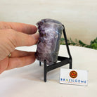 Disclaimer: This is a natural gemstone crystal sold by Brazil Gems® as is and as you see it in its images and video. It is the exact one you will receive. It may contain natural imperfections as well as imperfections, broken edges and repairs from the extraction, polishing, prepping and mounting processes. The metal stand is custom made to fit this gemstone and painted black. At Brazil Gems® we make every effort to get measurements as exact as possible but they are done by human hands and eyes and therefore may have minor discrepancies.
