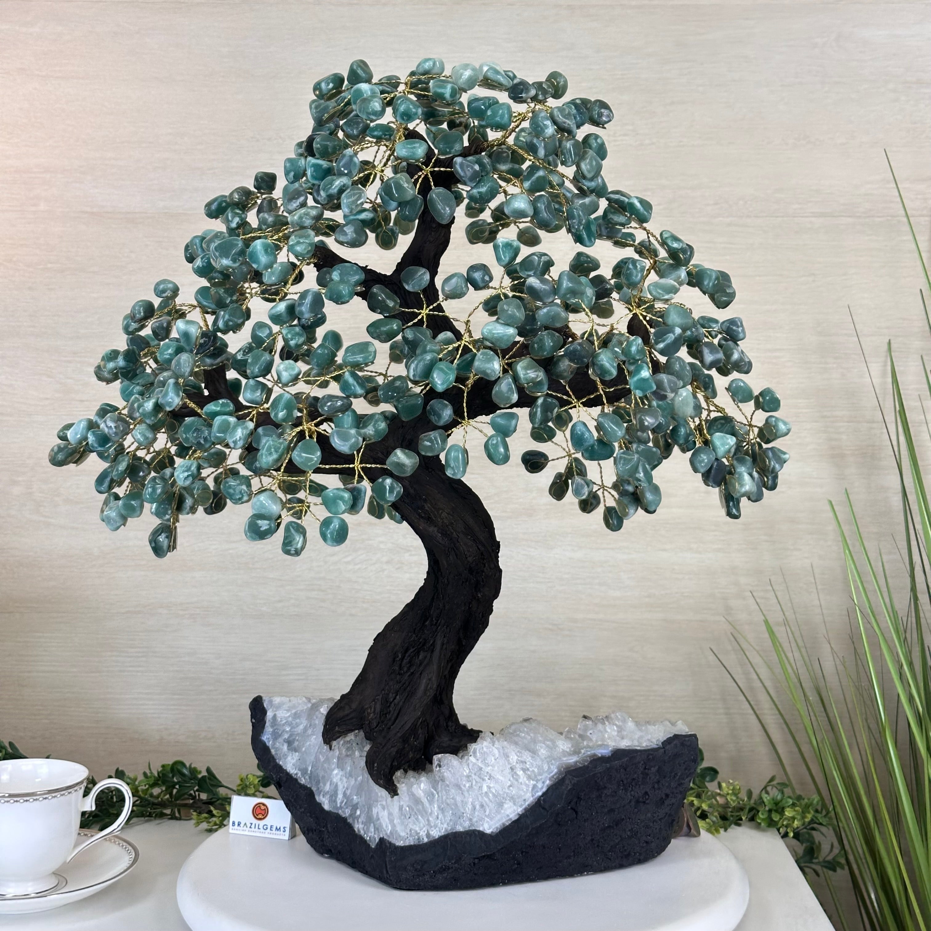 Distinctively vibrant and translucent, it showcases a verdant spectrum of color that ranges from delicate pastel tones to deeper shades. Its green hue evokes the lush landscapes of Brazil's tropical rainforests.