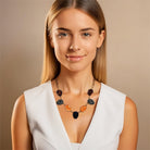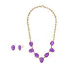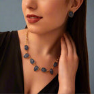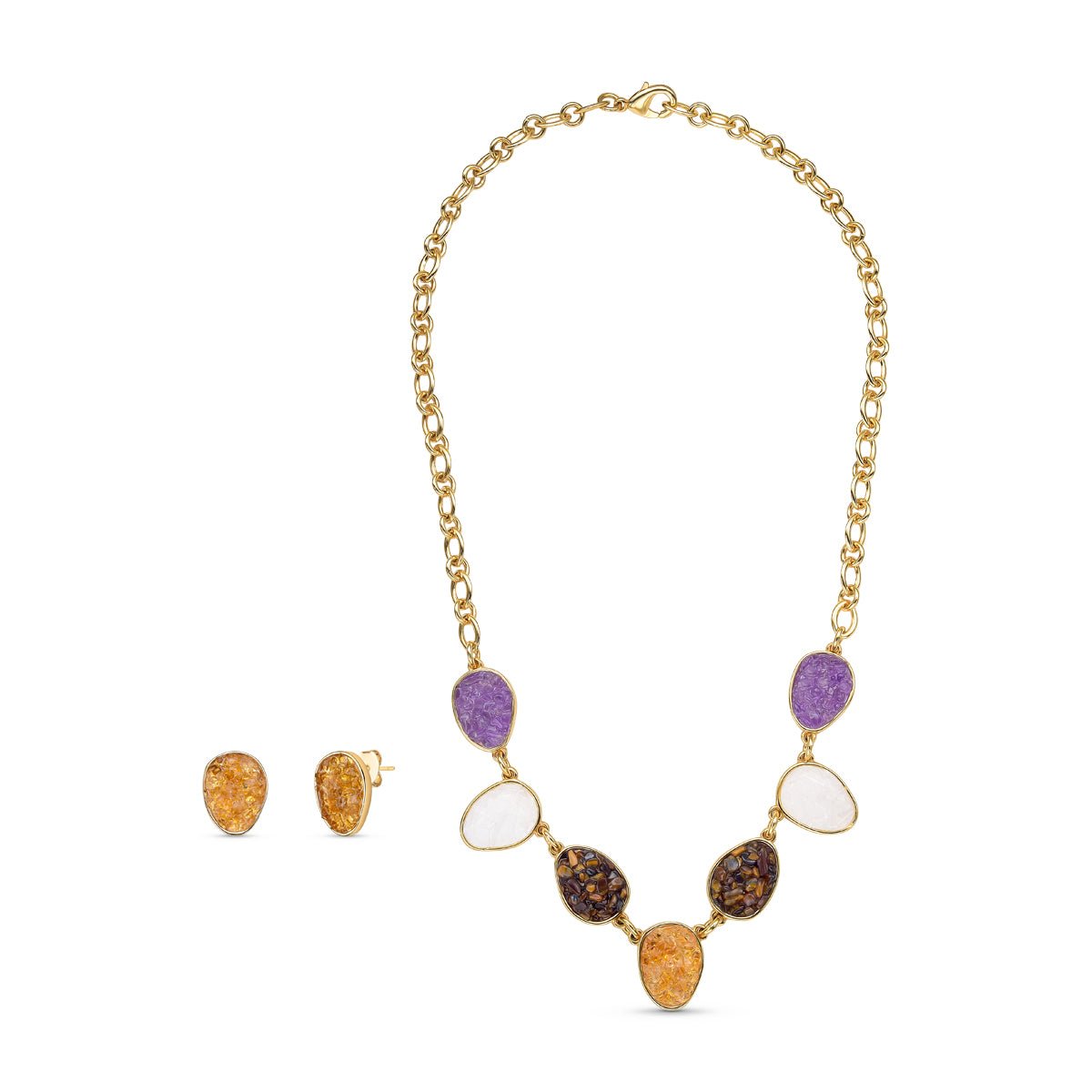 7-Stone Gold Plated Riviera Necklace & Earring Set w/ Natural Gemstone Fragments