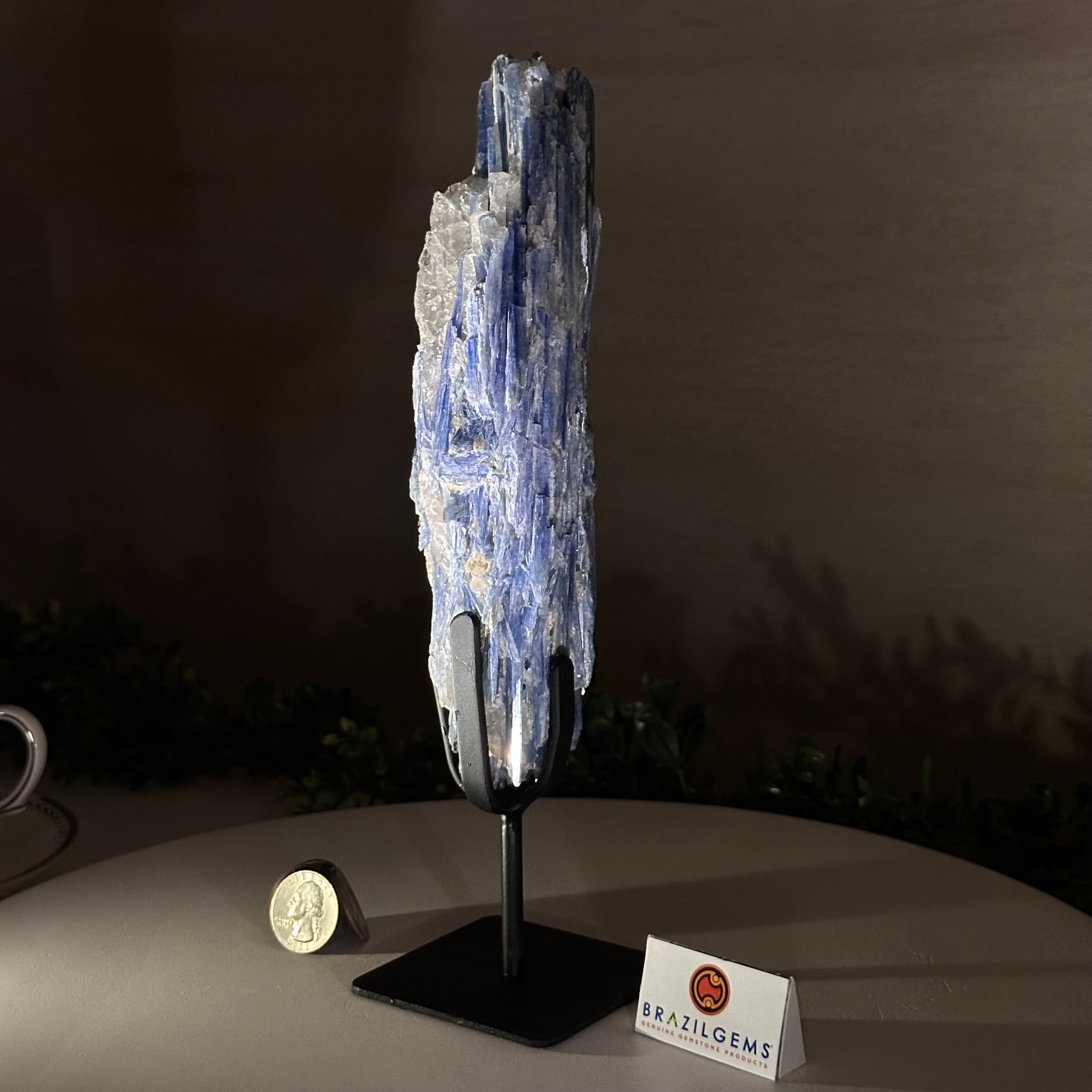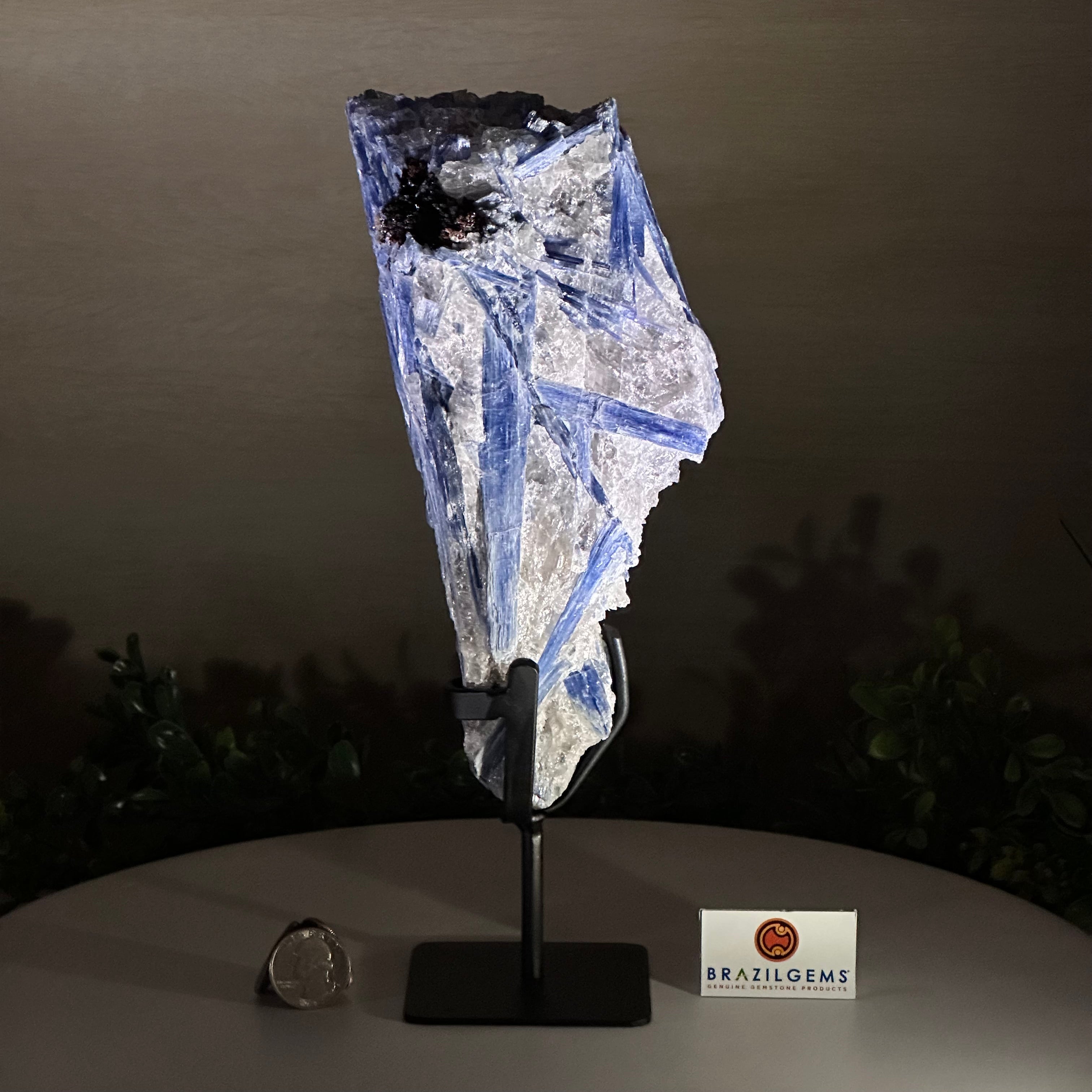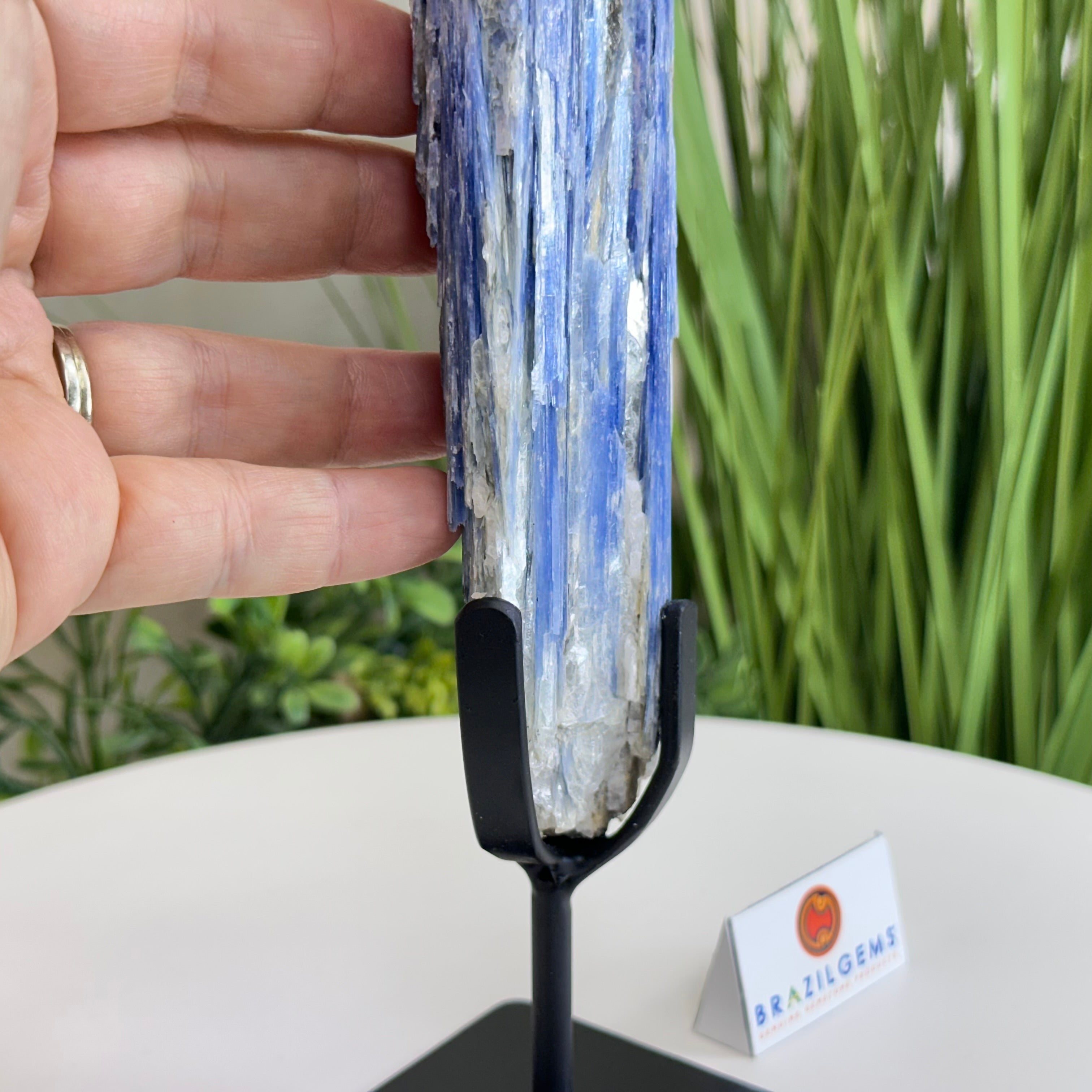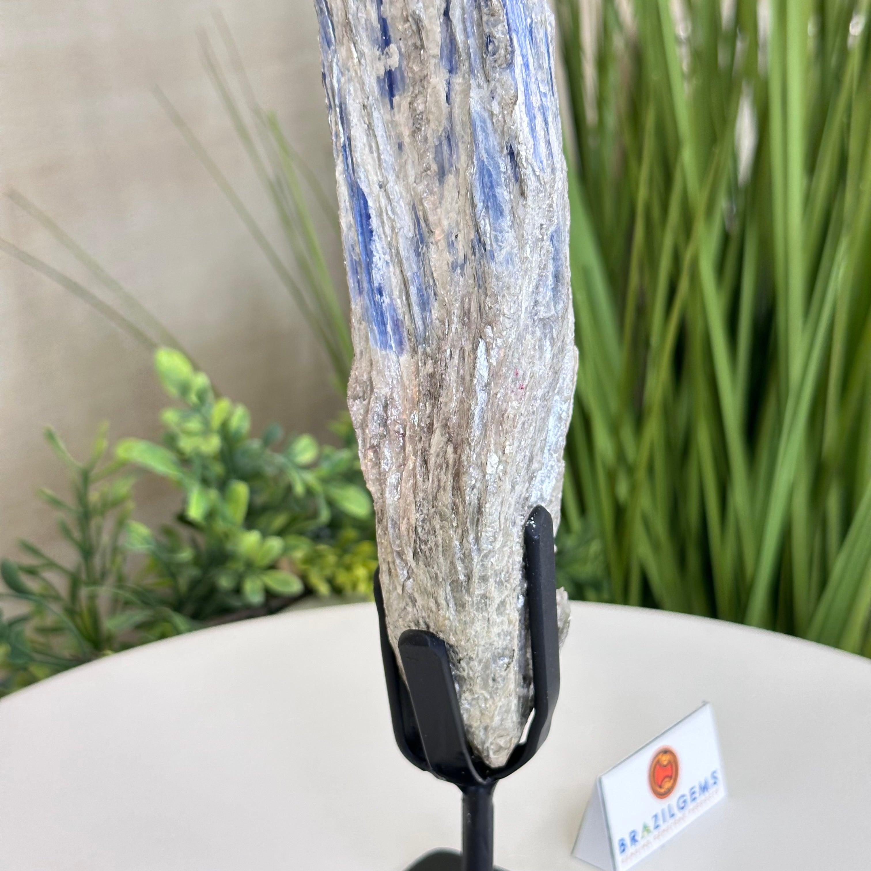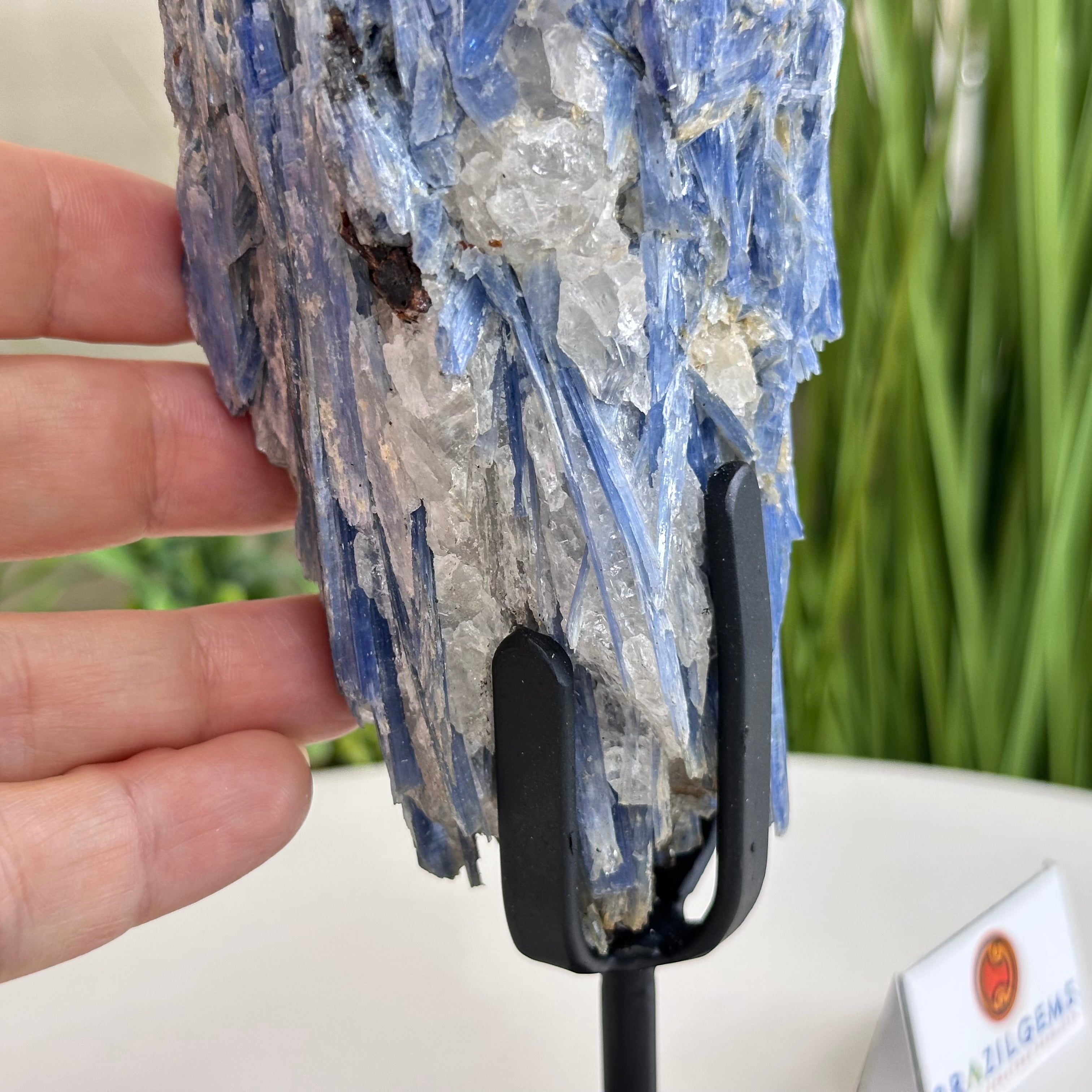 Brazil Gems offers quality Brazilian Kyanite clusters displayed on wood or metal bases. The bright blue colors of this brittle gemstone will accent the decor of your home or office.