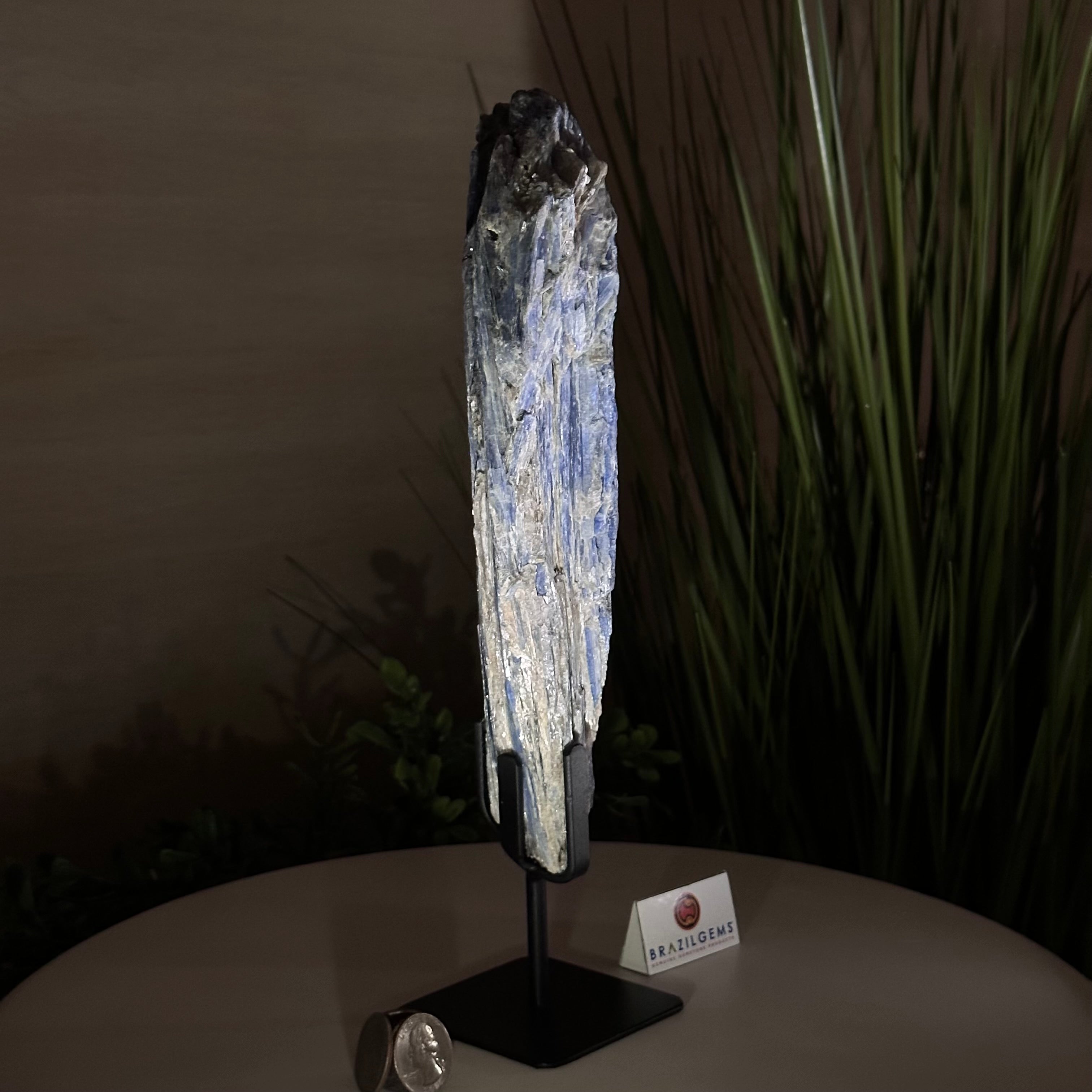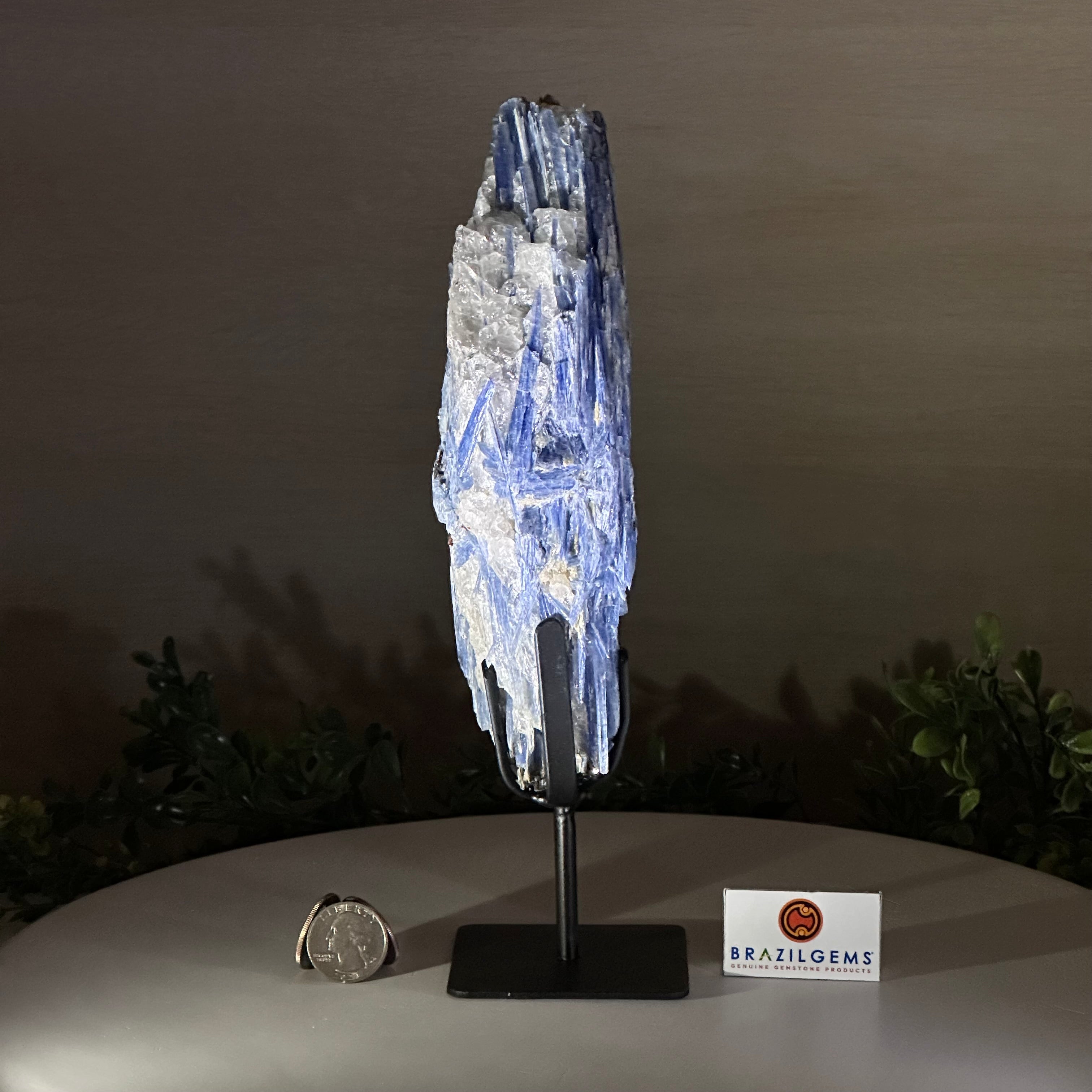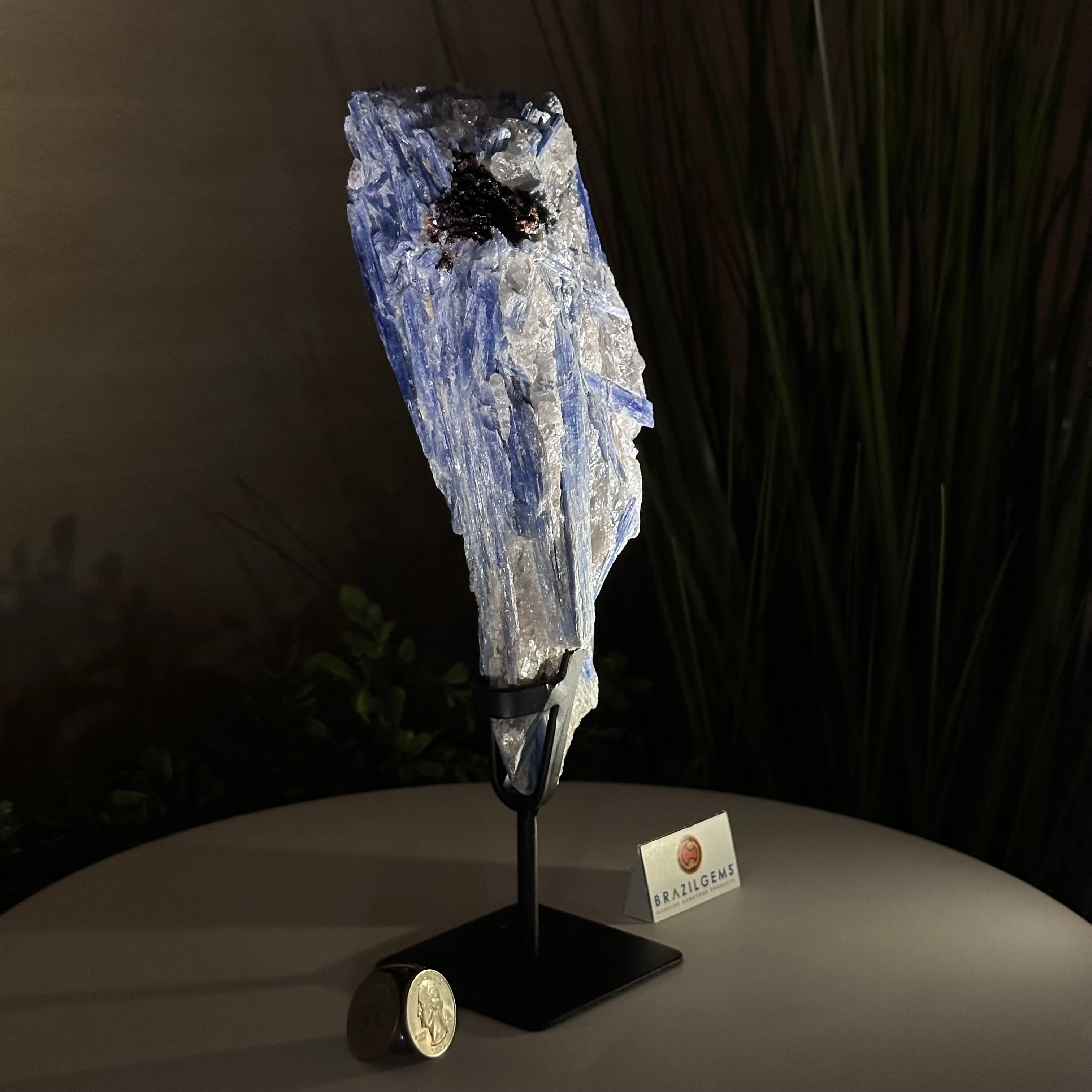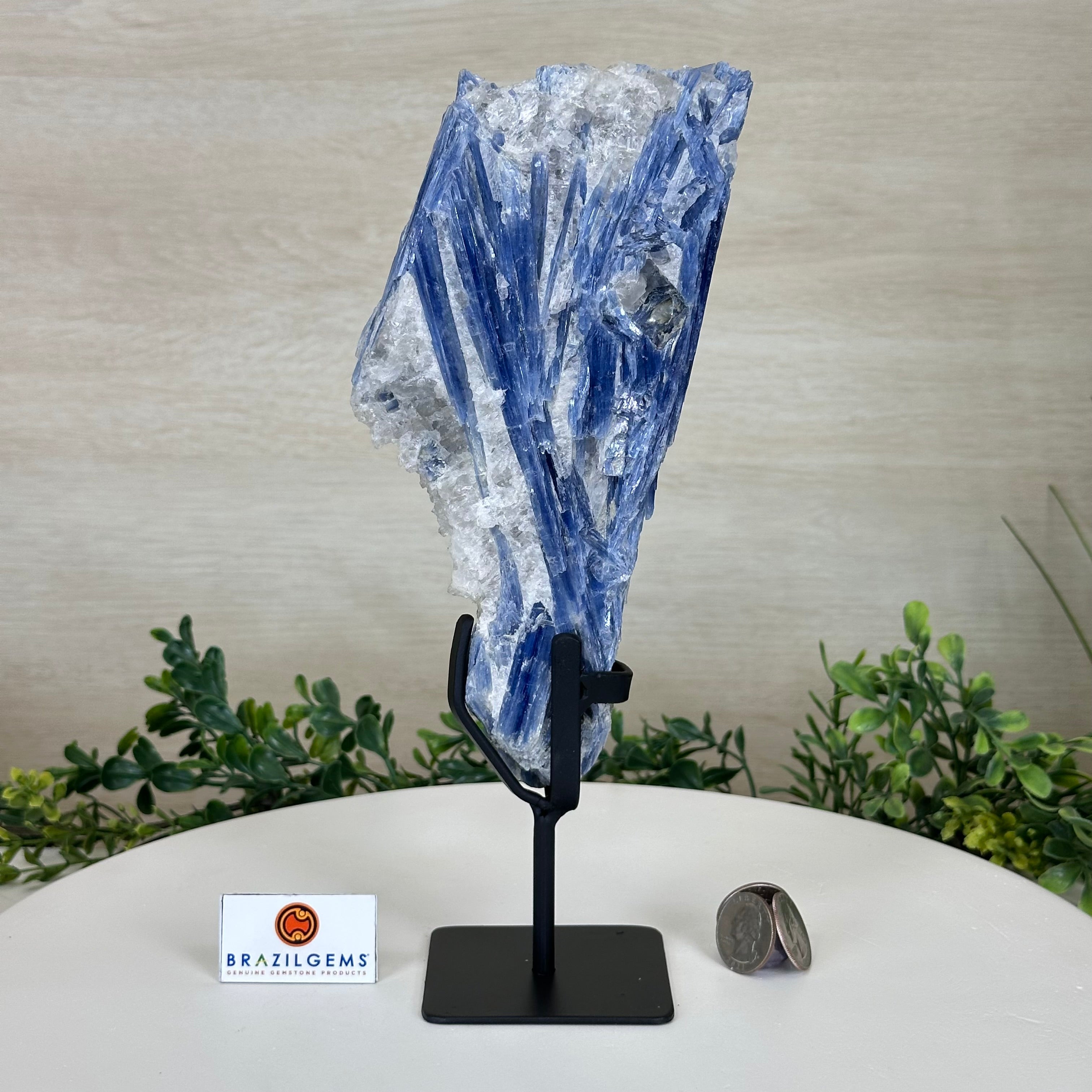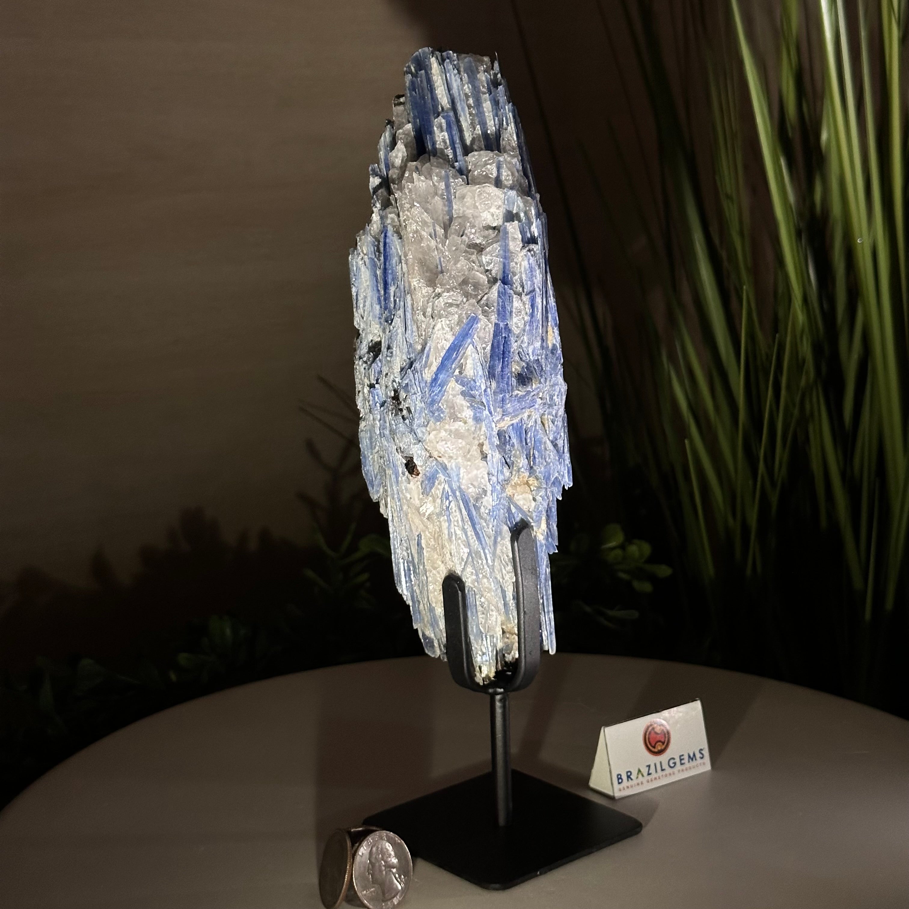 Brazil Gems offers quality Brazilian Kyanite clusters displayed on wood or metal bases. The bright blue colors of this brittle gemstone will accent the decor of your home or office.