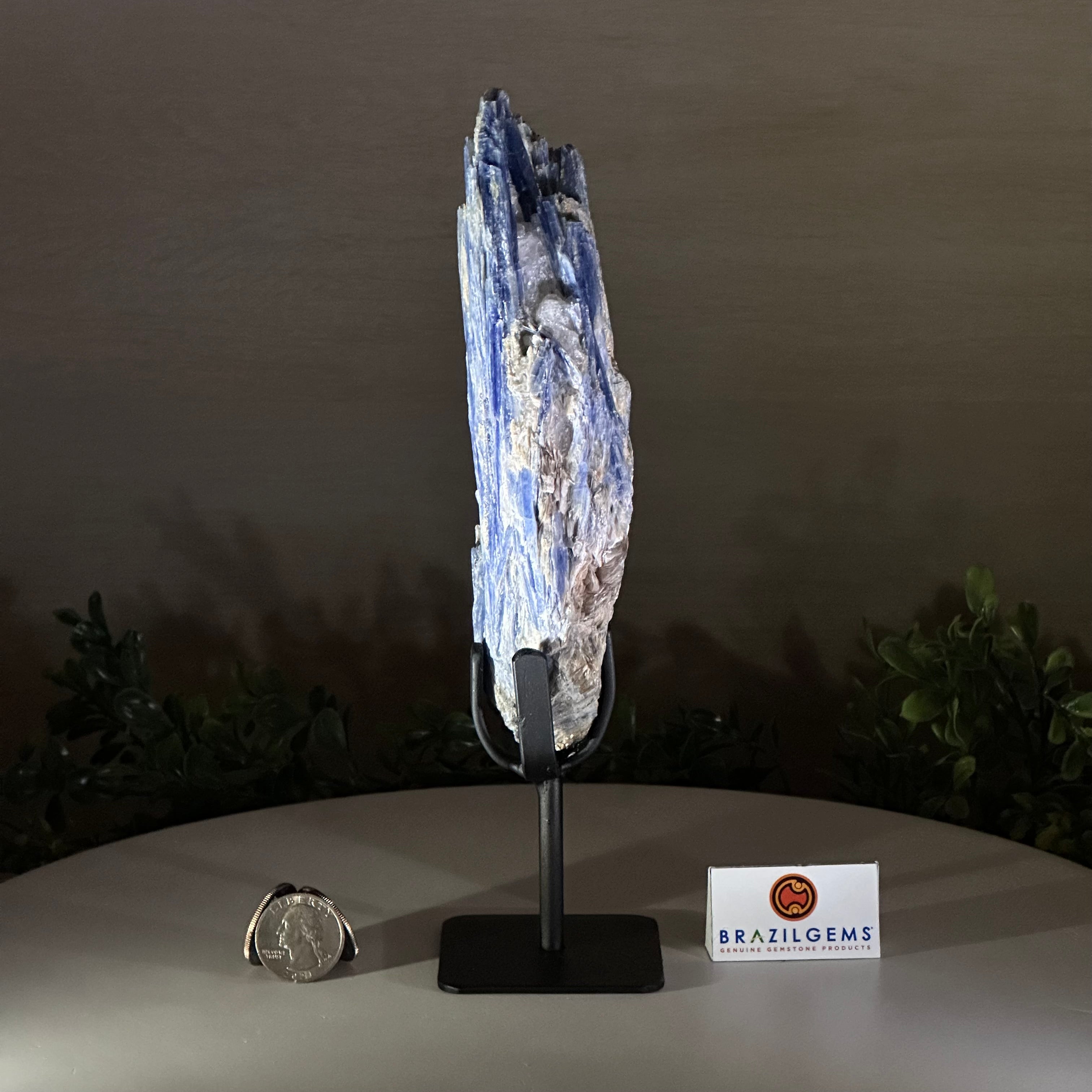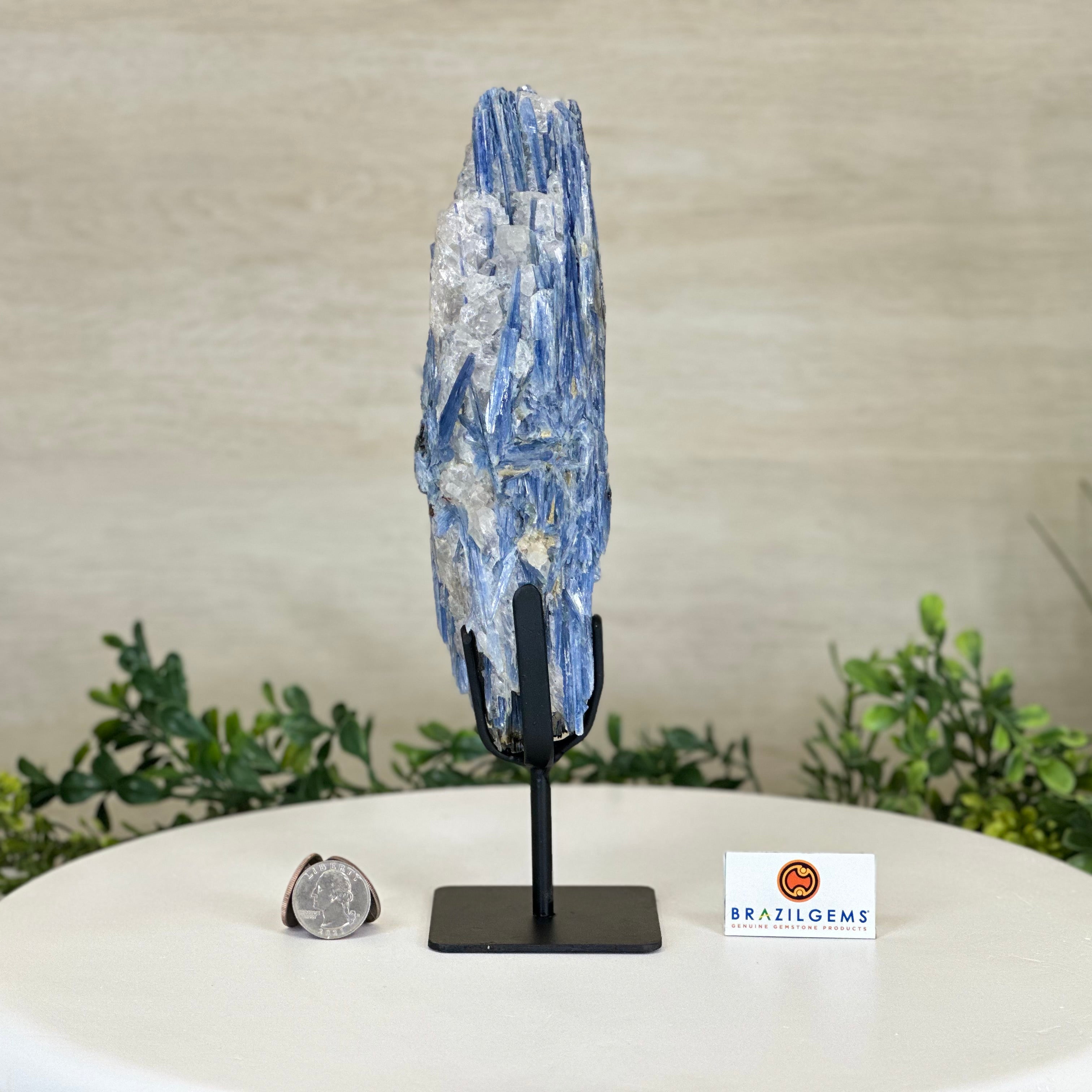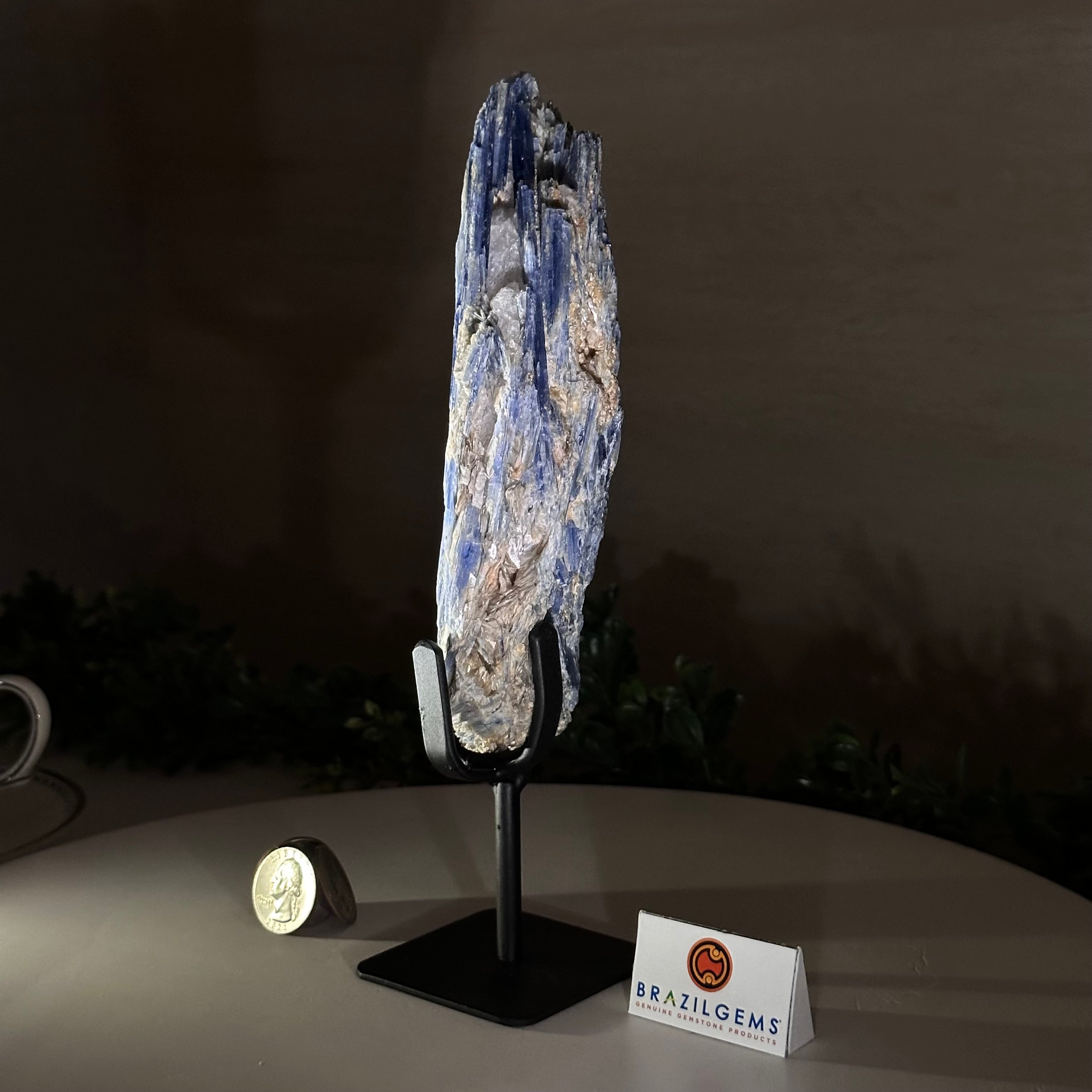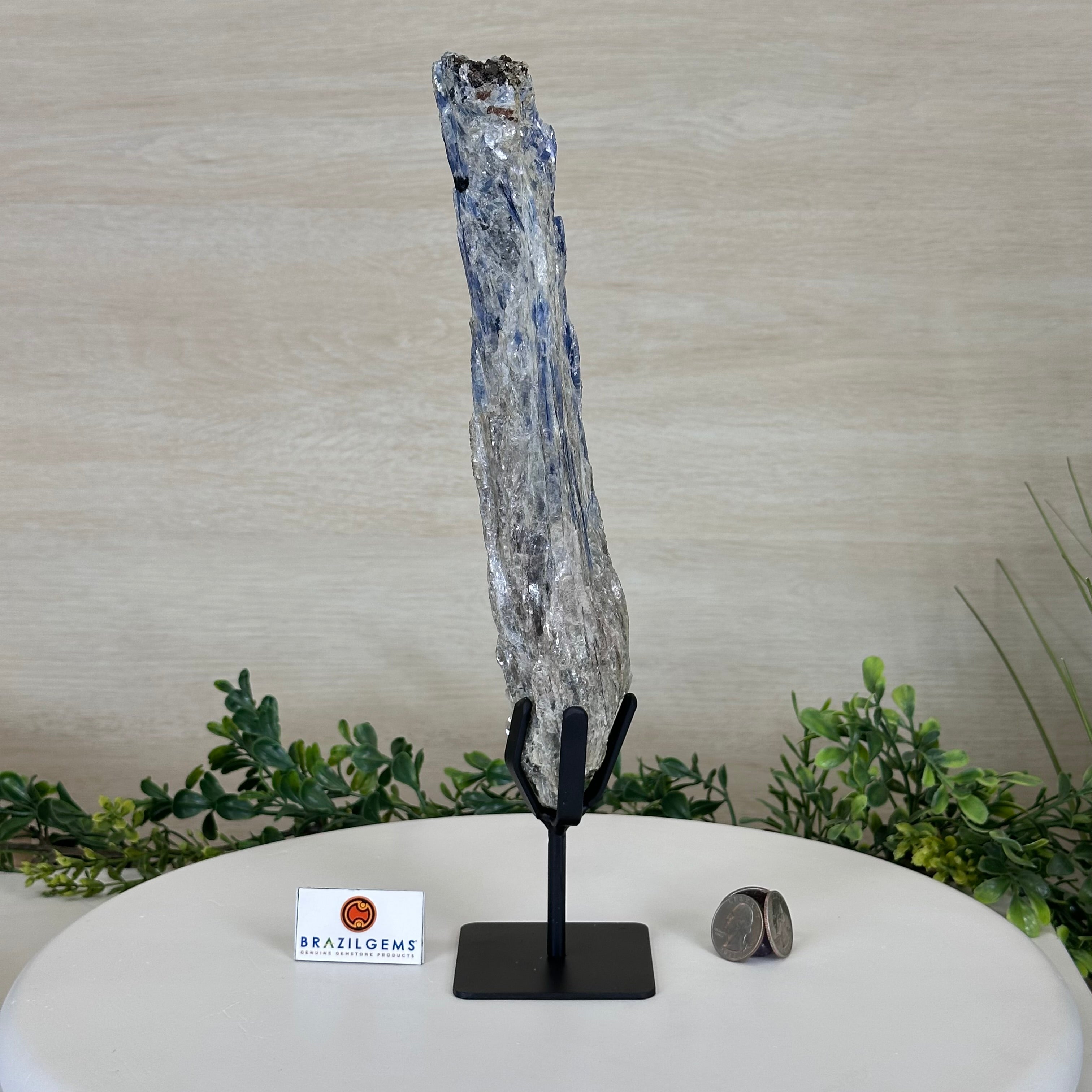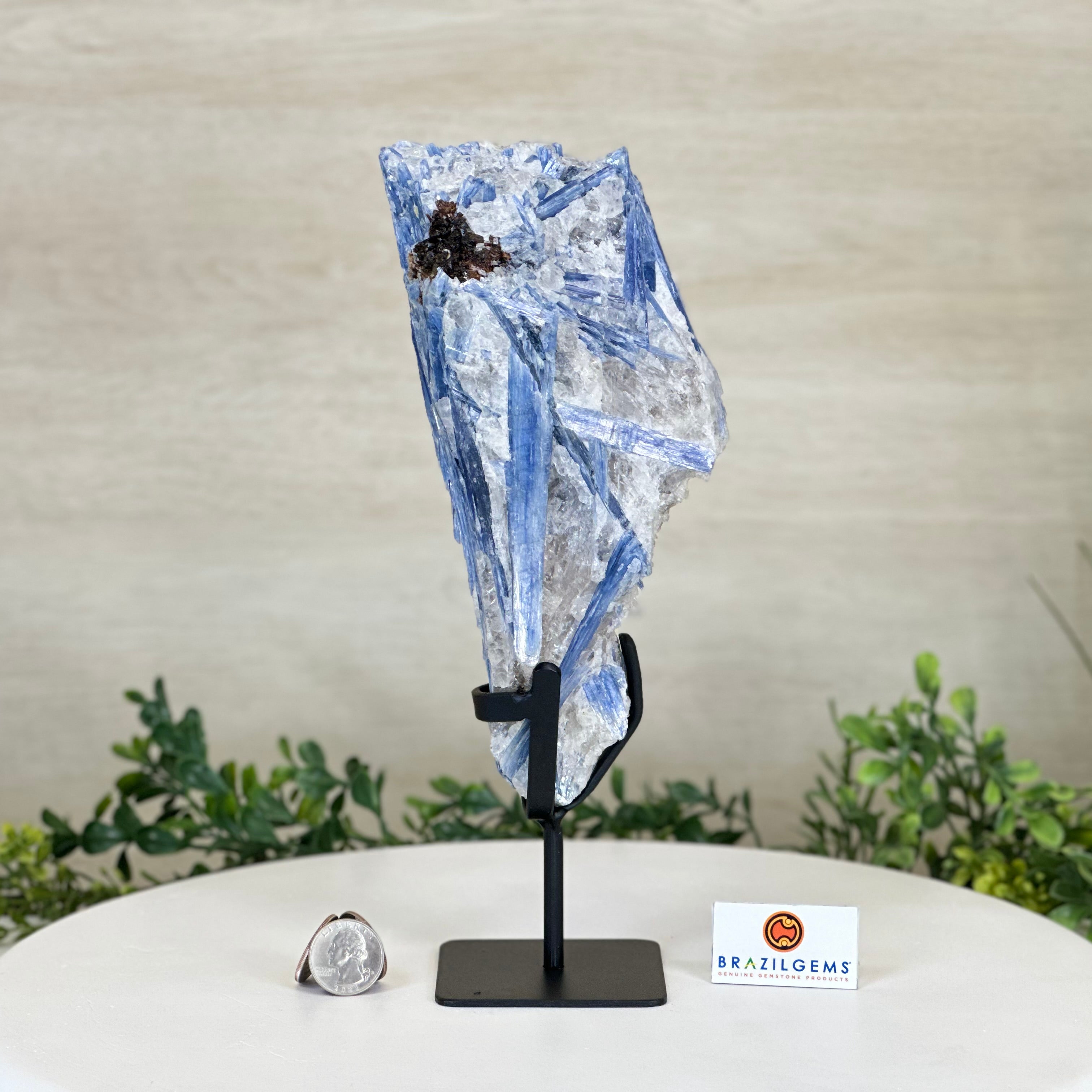 Brazil Gems offers quality Brazilian Kyanite clusters displayed on wood or metal bases. The bright blue colors of this brittle gemstone will accent the decor of your home or office.