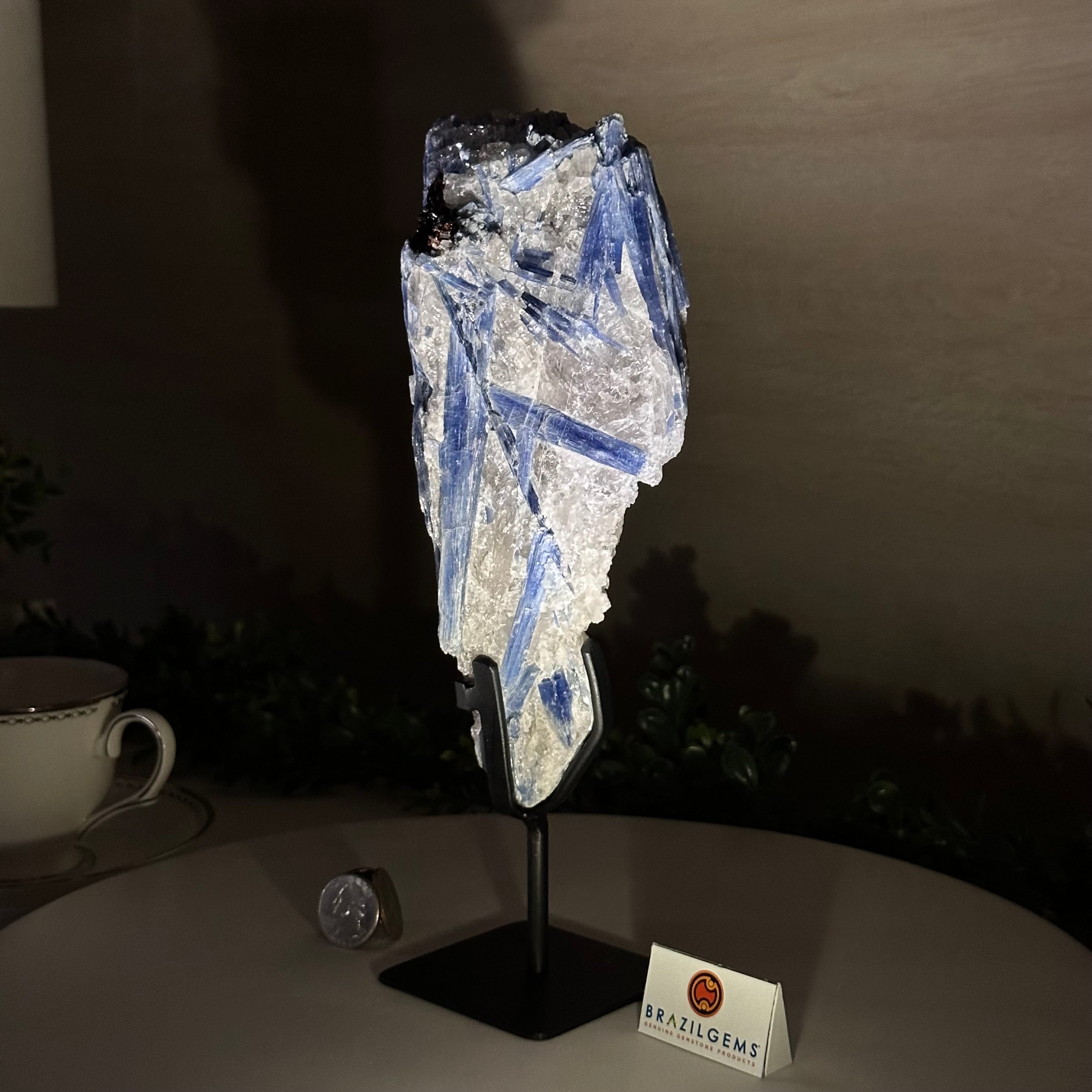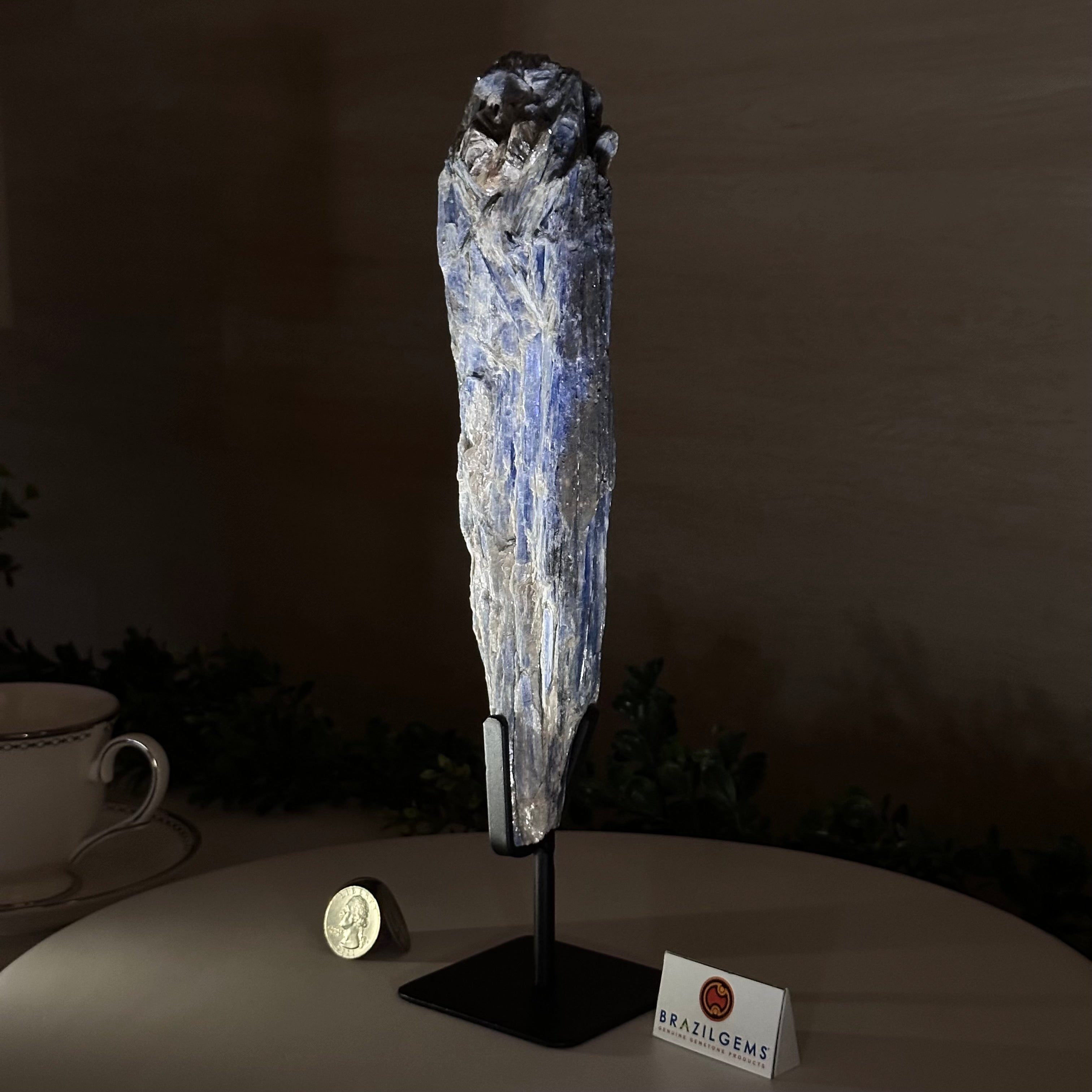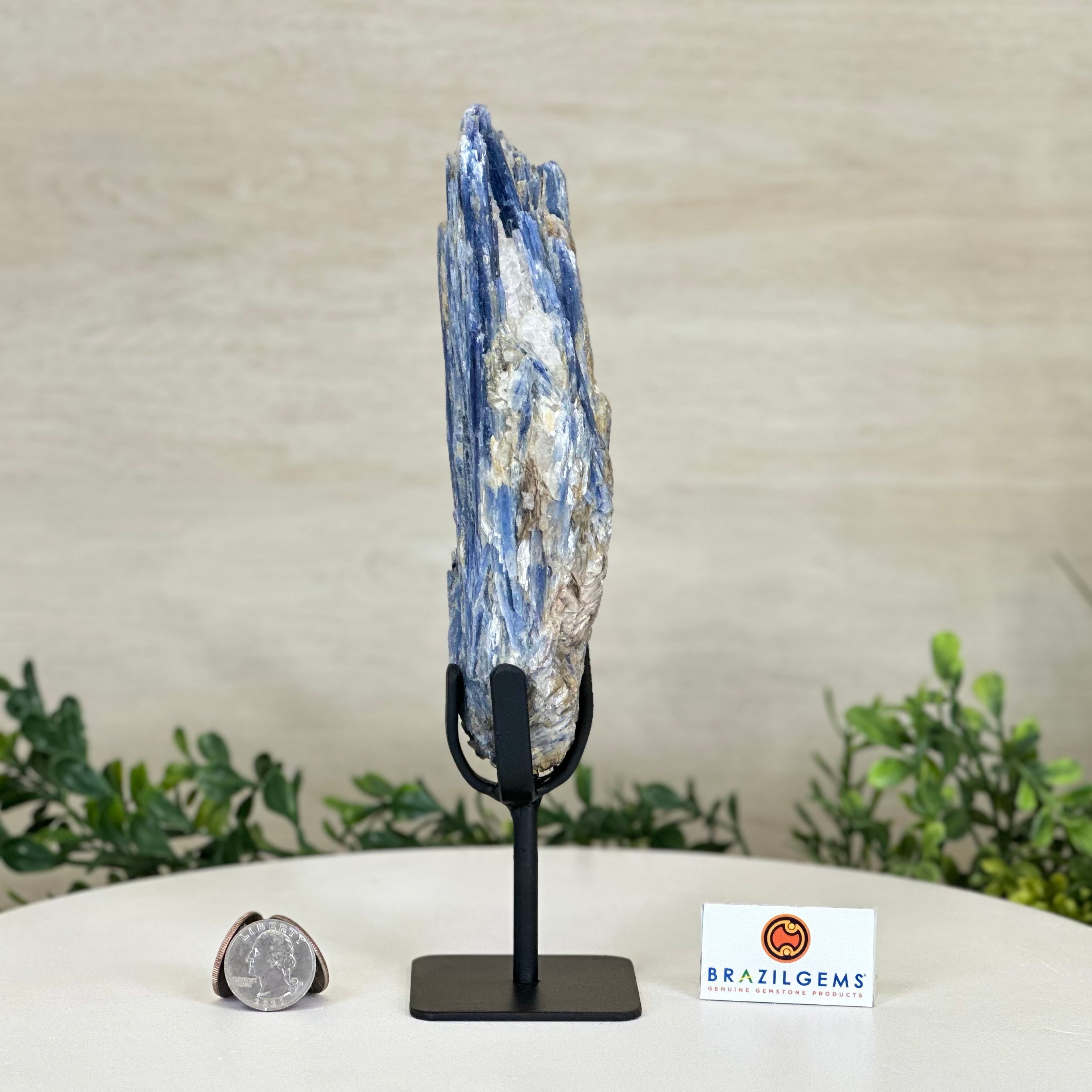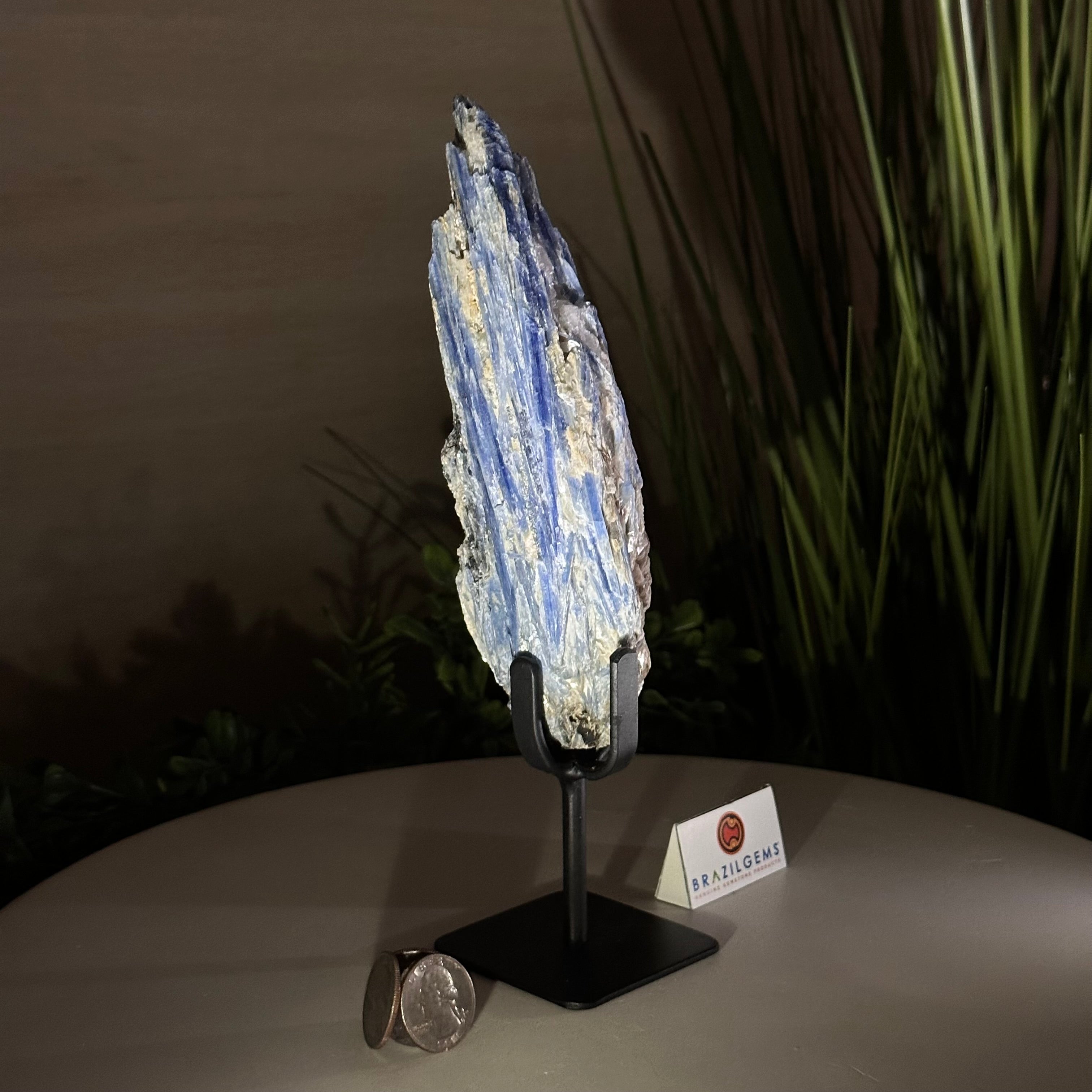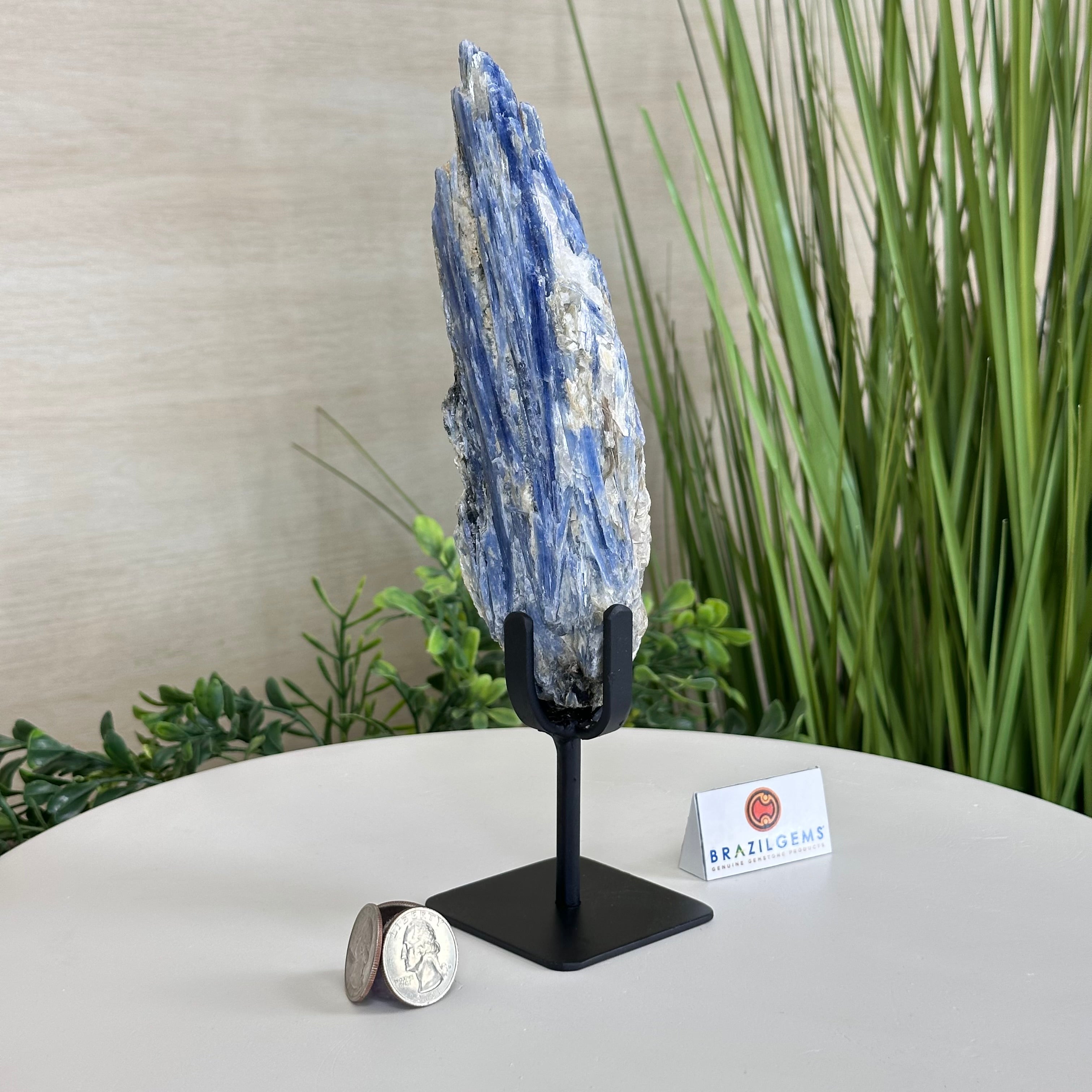 Brazil Gems offers quality Brazilian Kyanite clusters displayed on wood or metal bases. The bright blue colors of this brittle gemstone will accent the decor of your home or office.