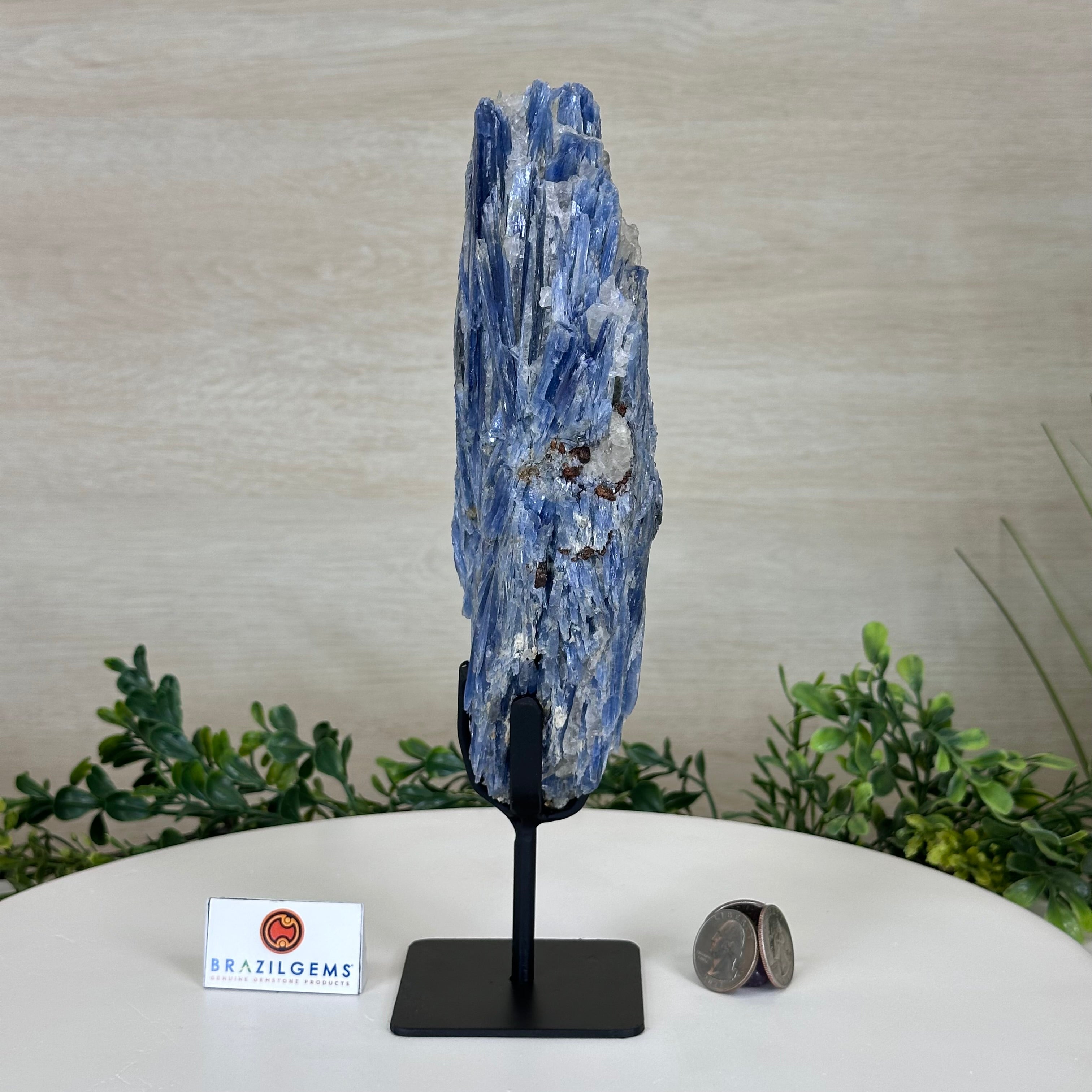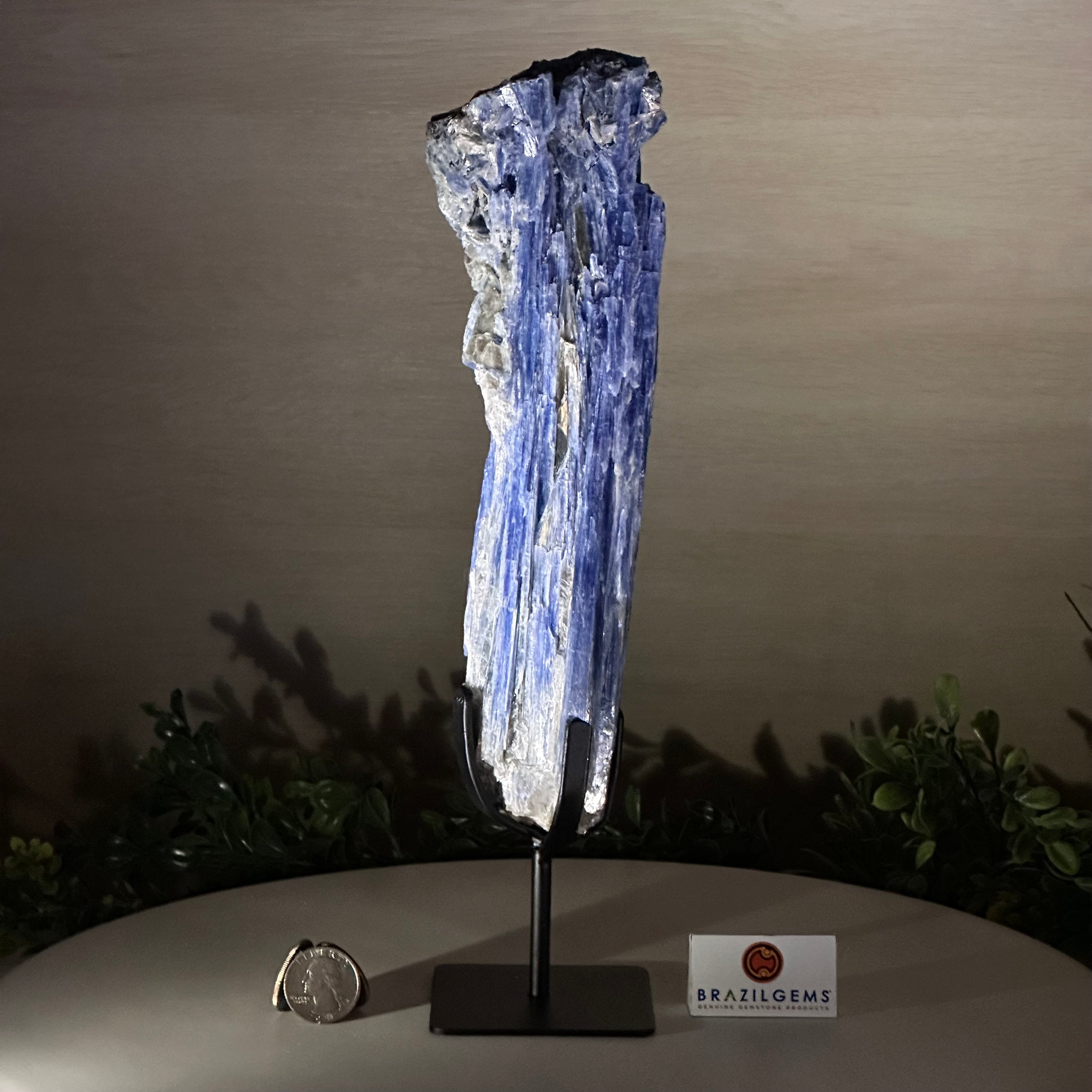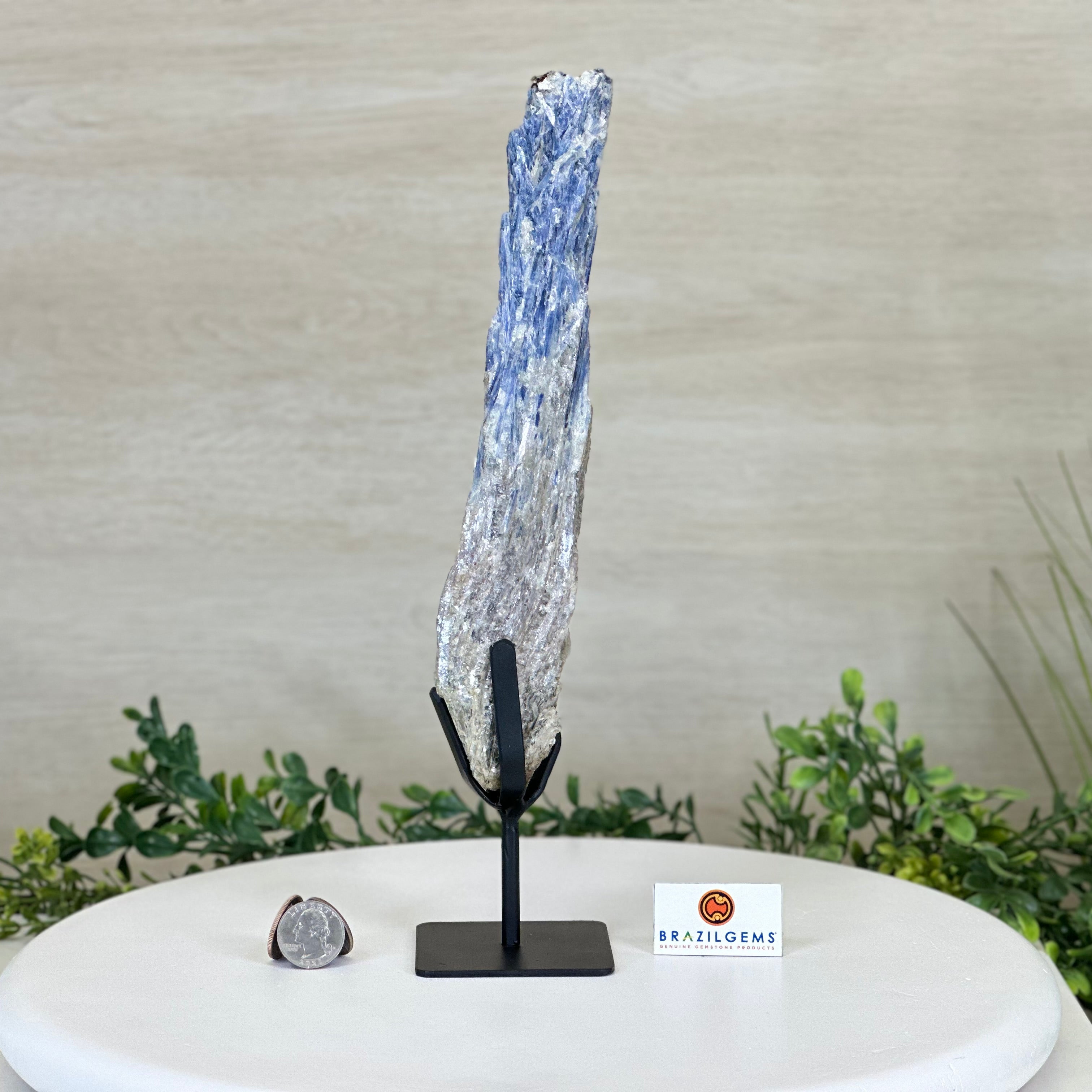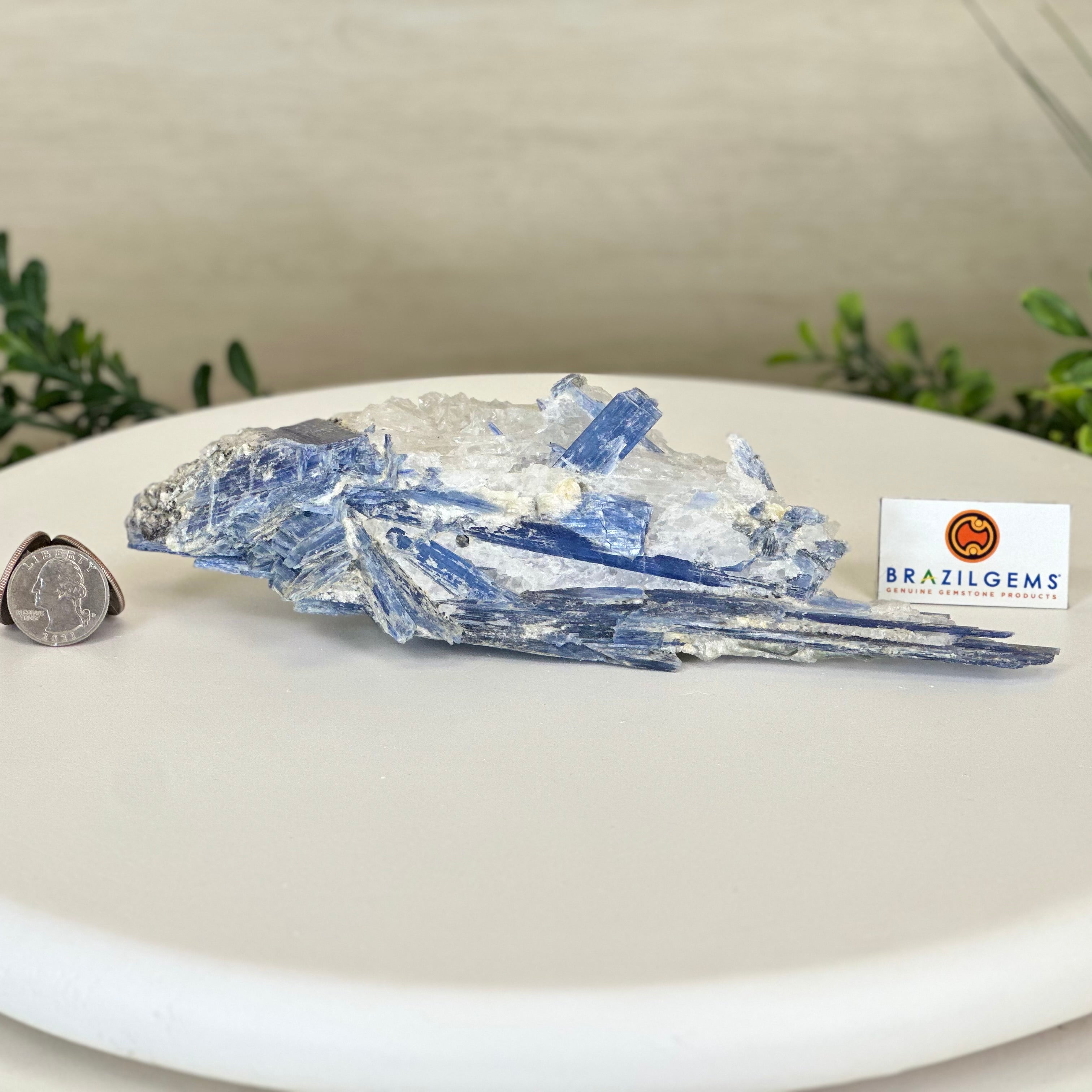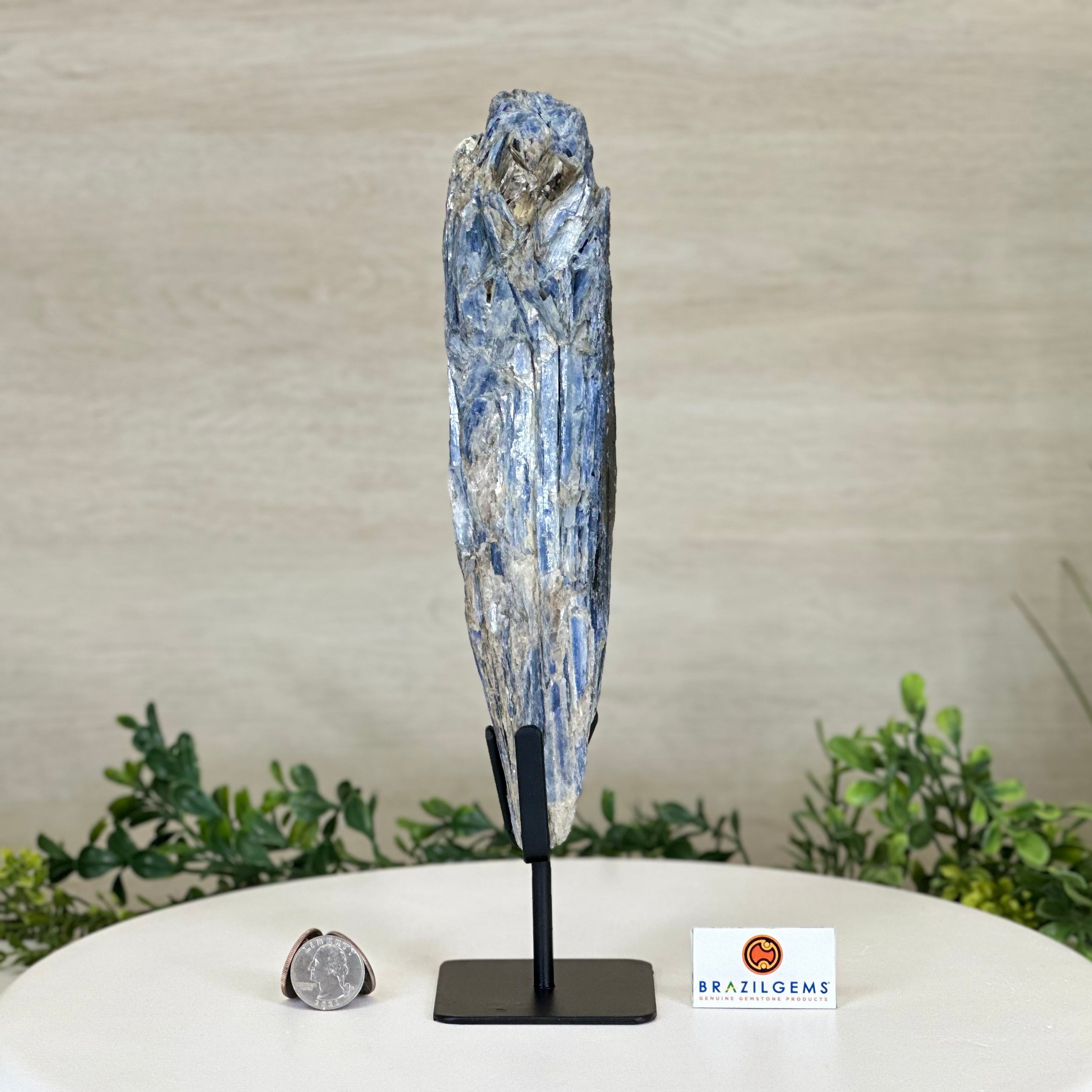 Brazil Gems offers quality Brazilian Kyanite clusters displayed on wood or metal bases. The bright blue colors of this brittle gemstone will accent the decor of your home or office.