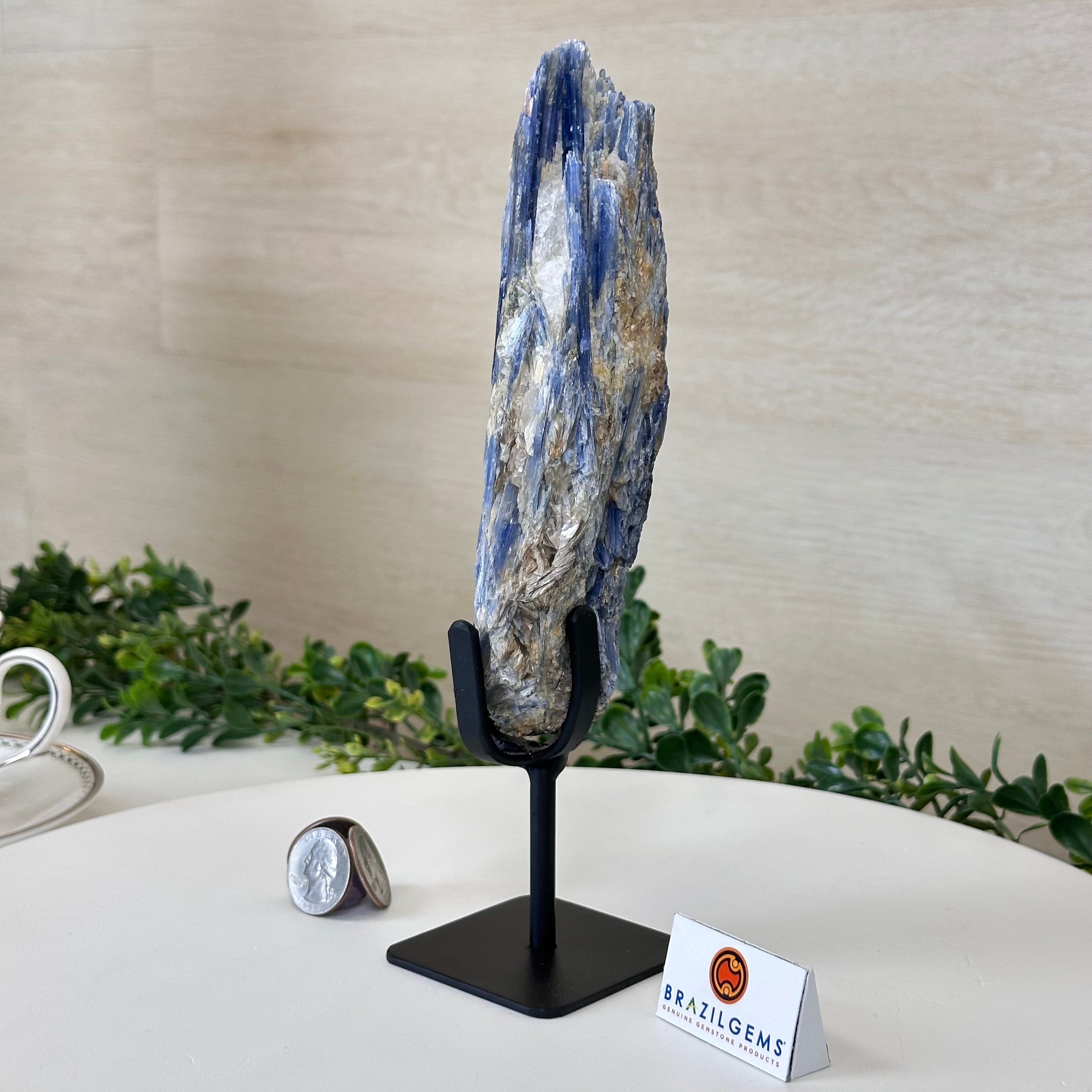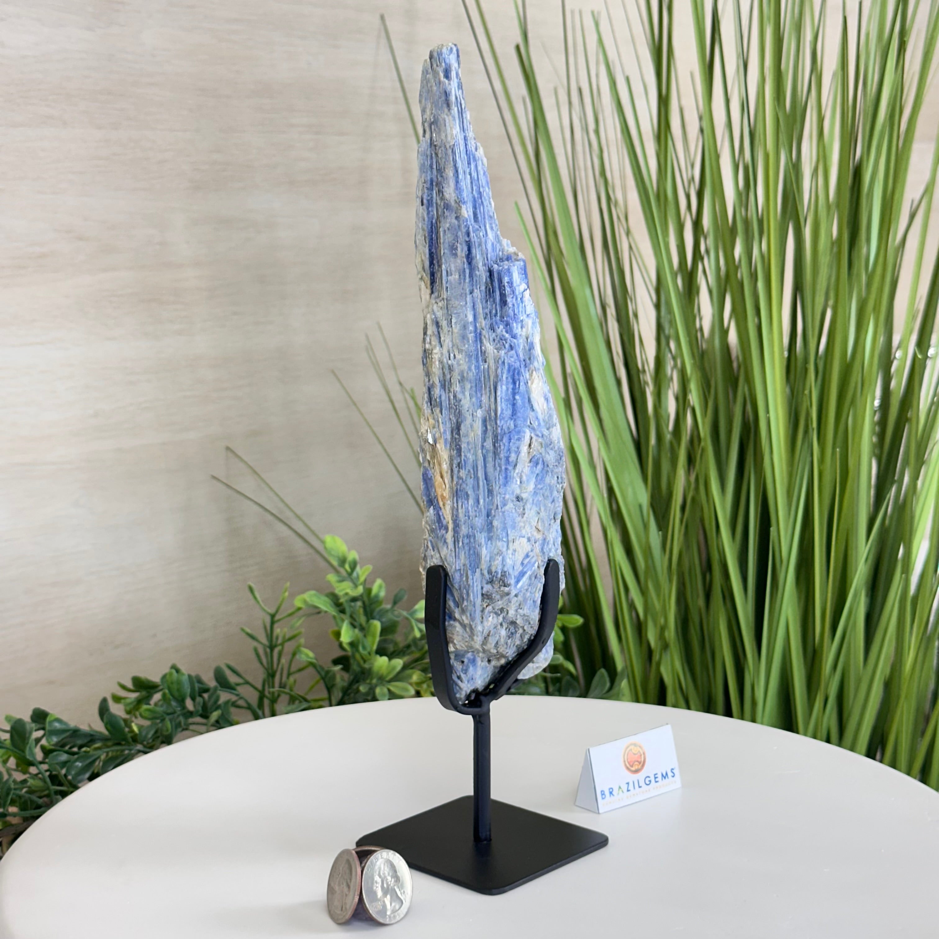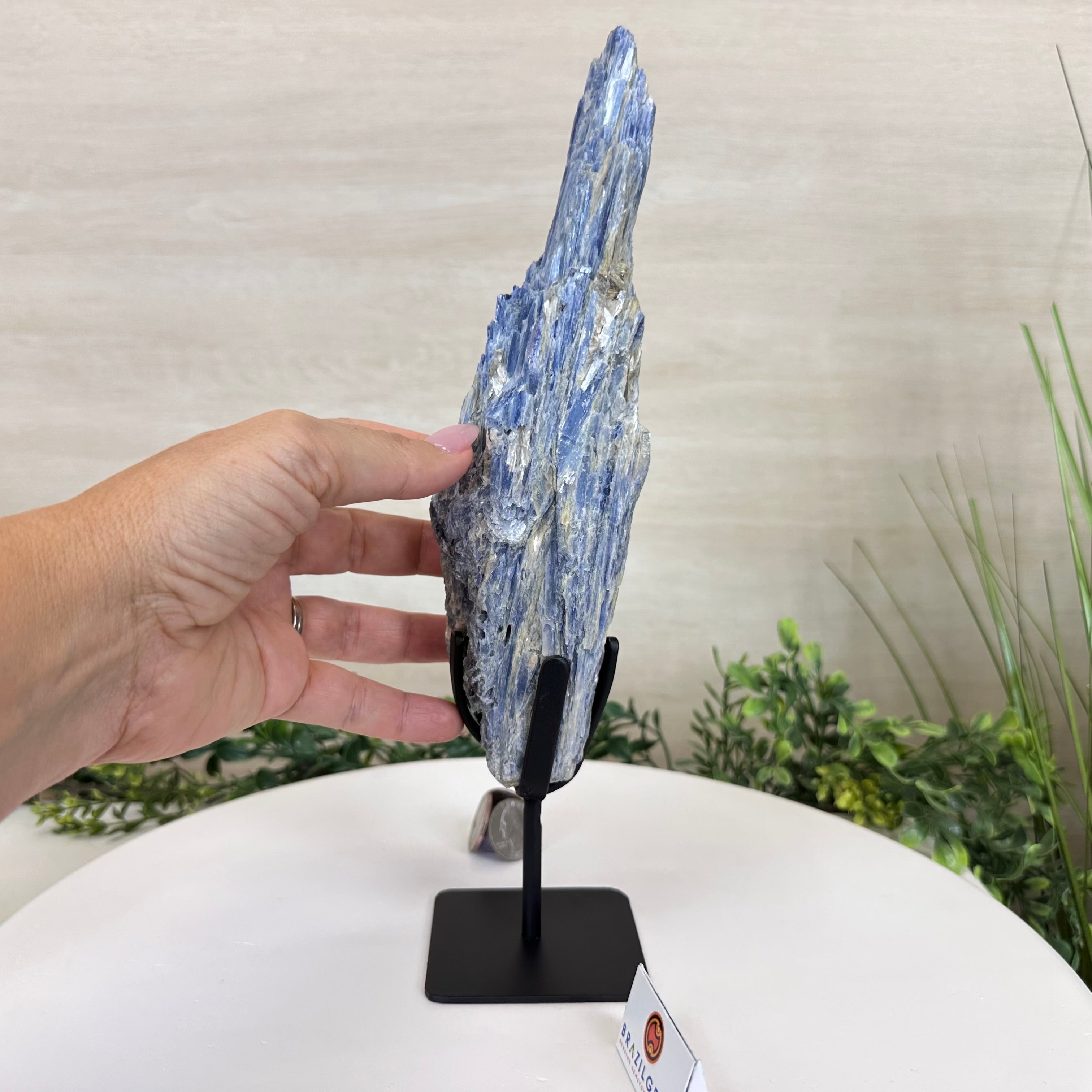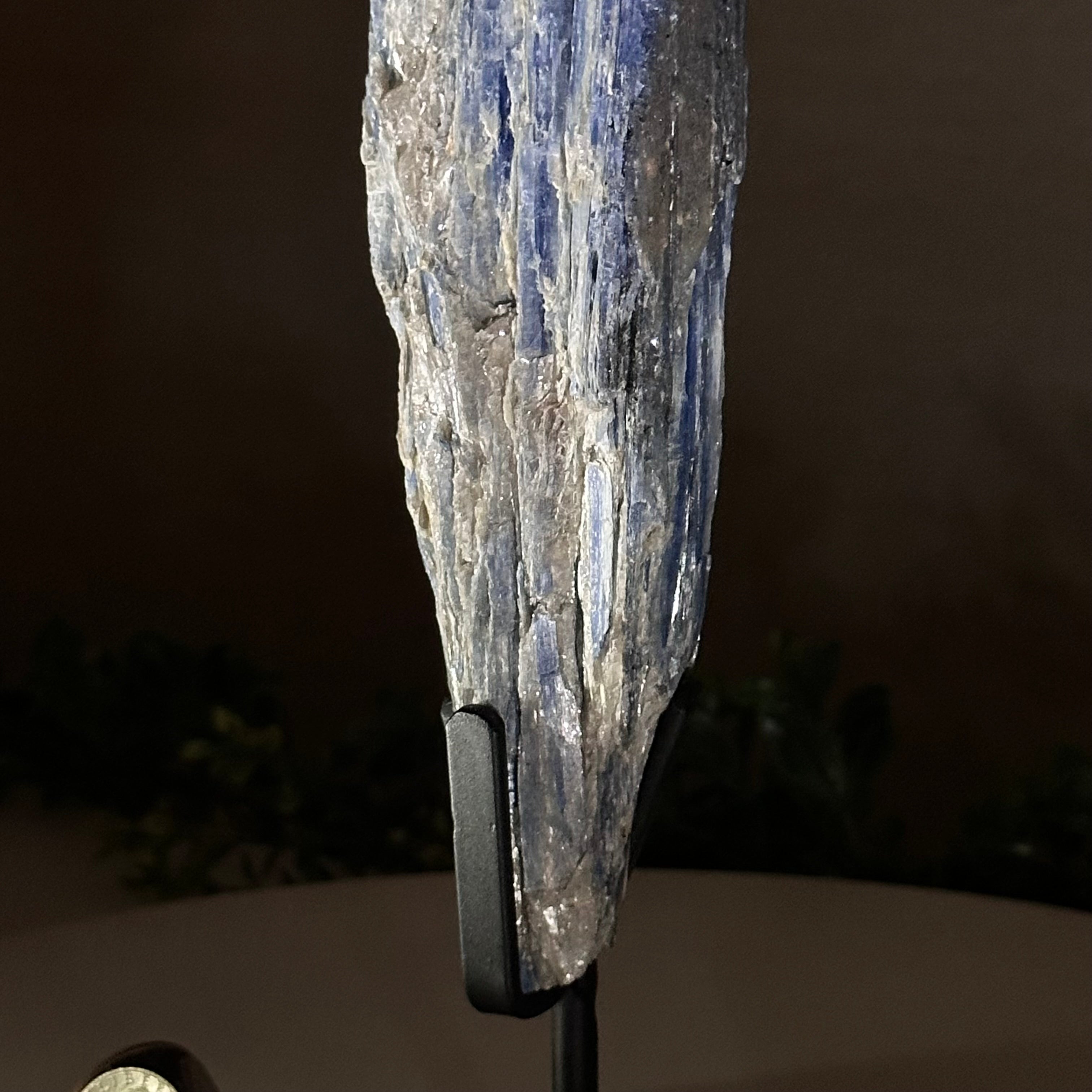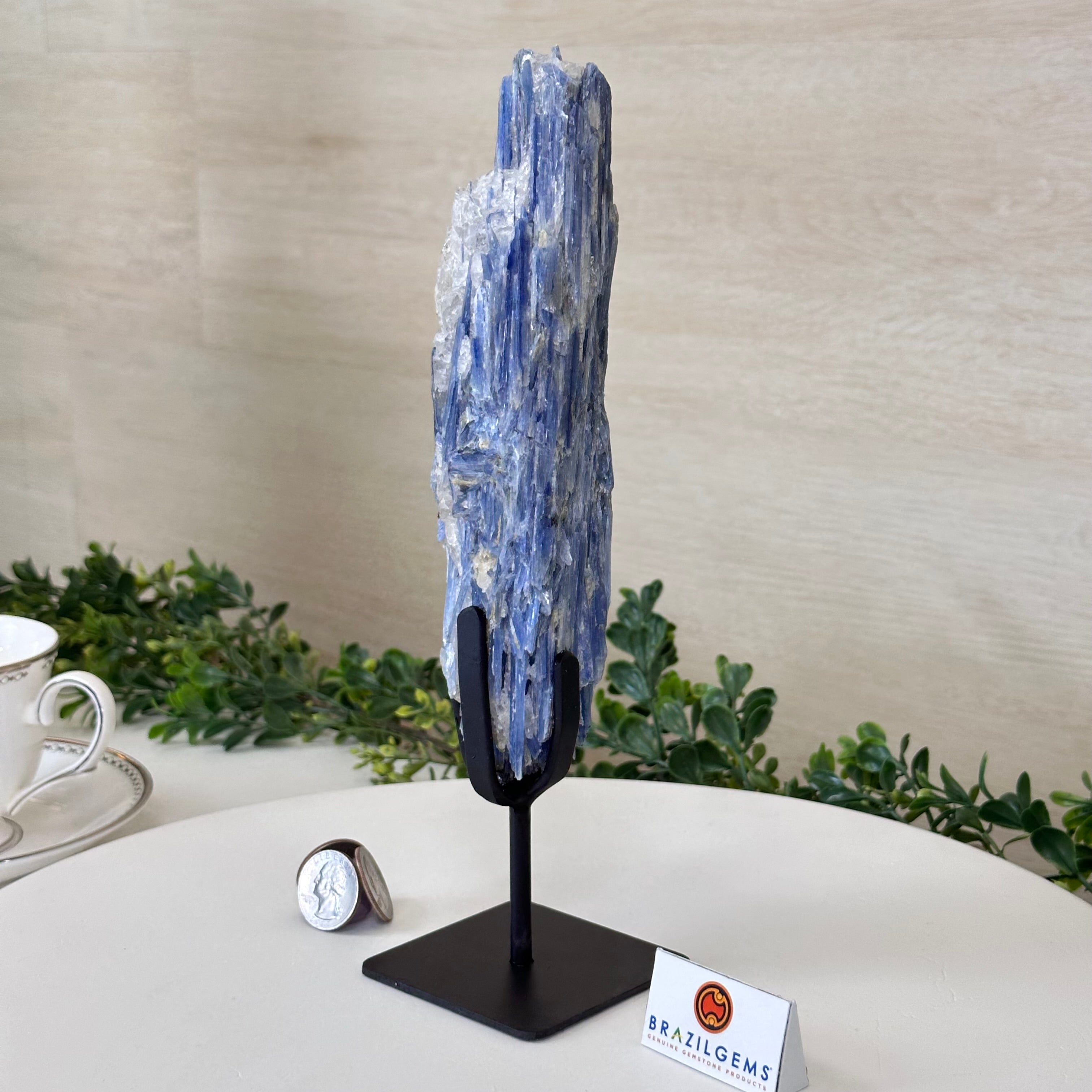 Brazil Gems offers quality Brazilian Kyanite clusters displayed on wood or metal bases. The bright blue colors of this brittle gemstone will accent the decor of your home or office.