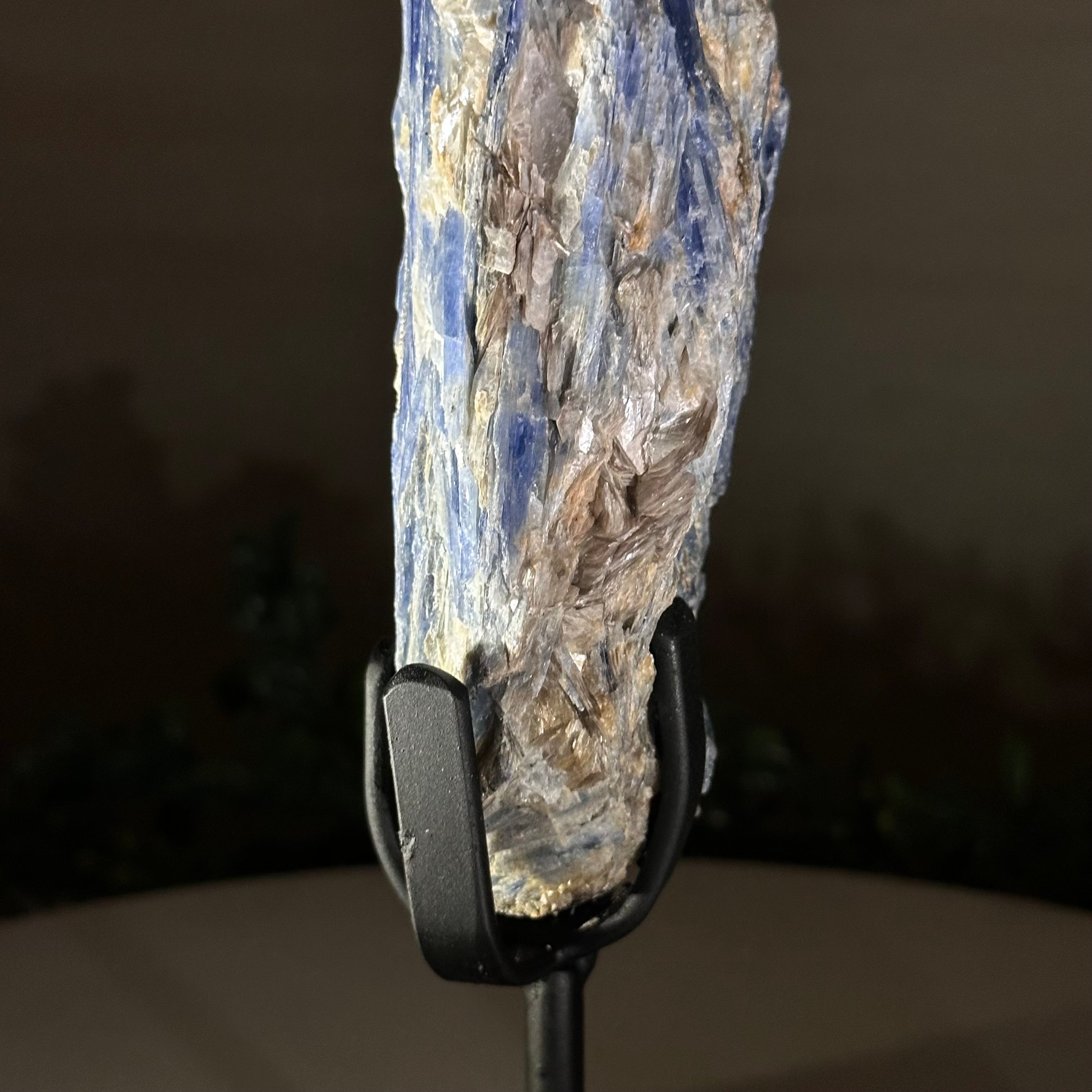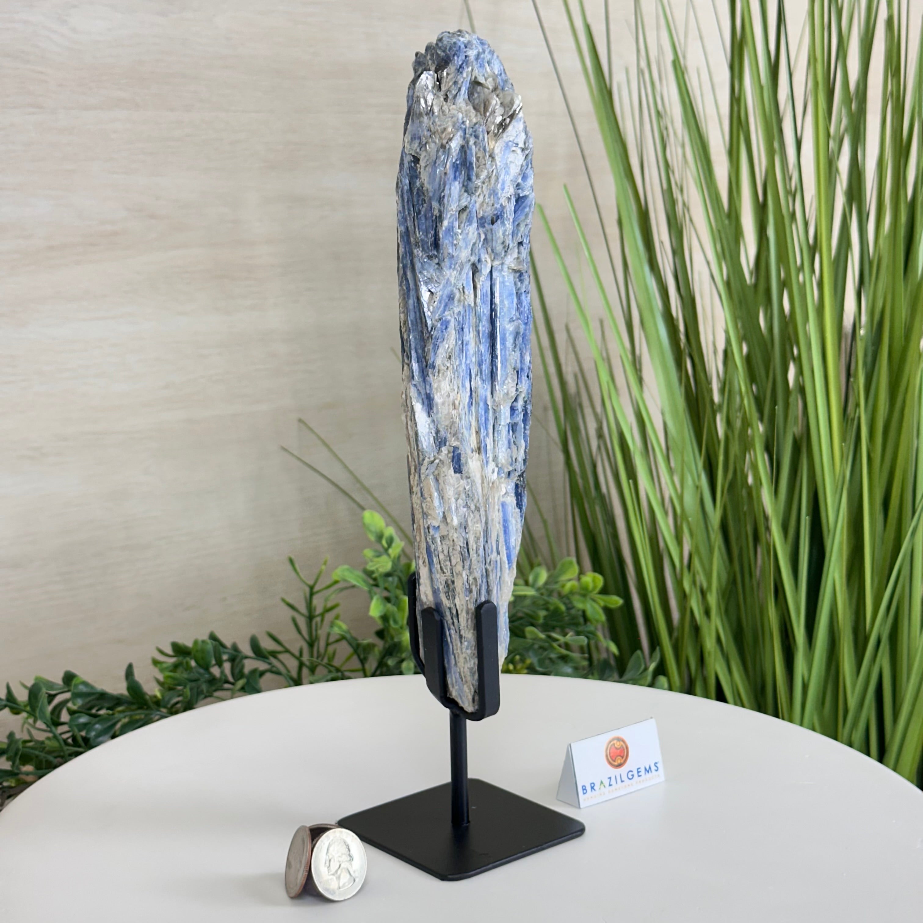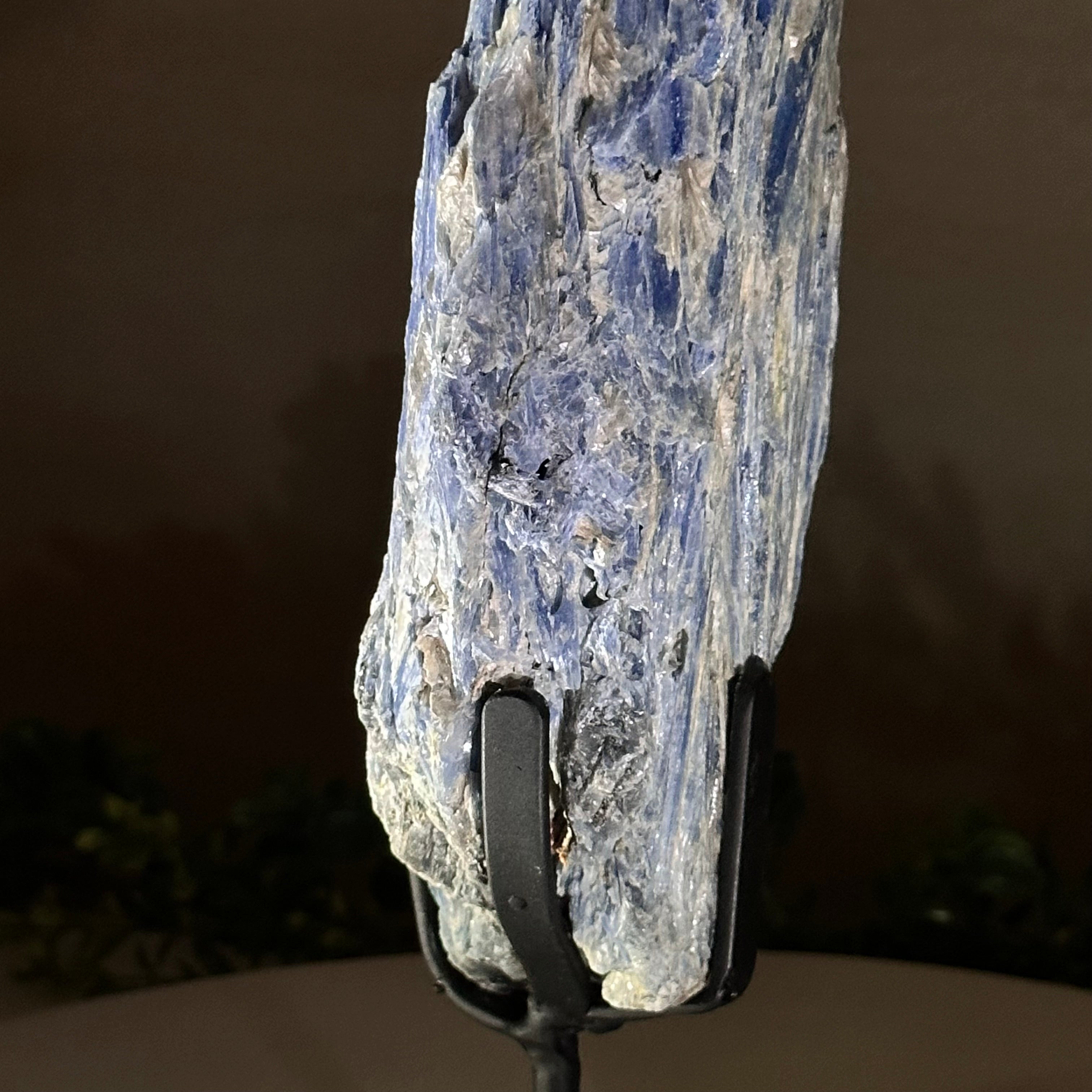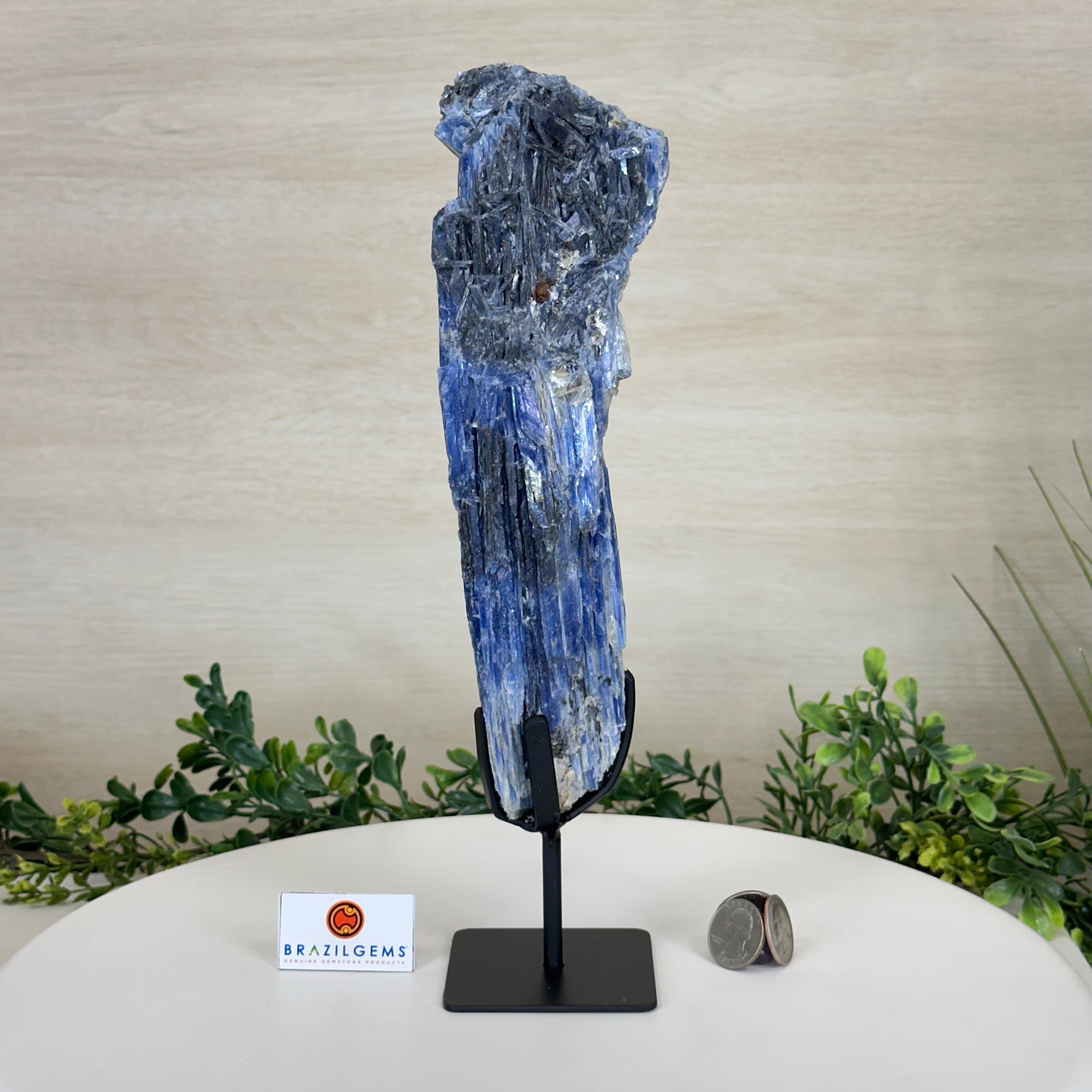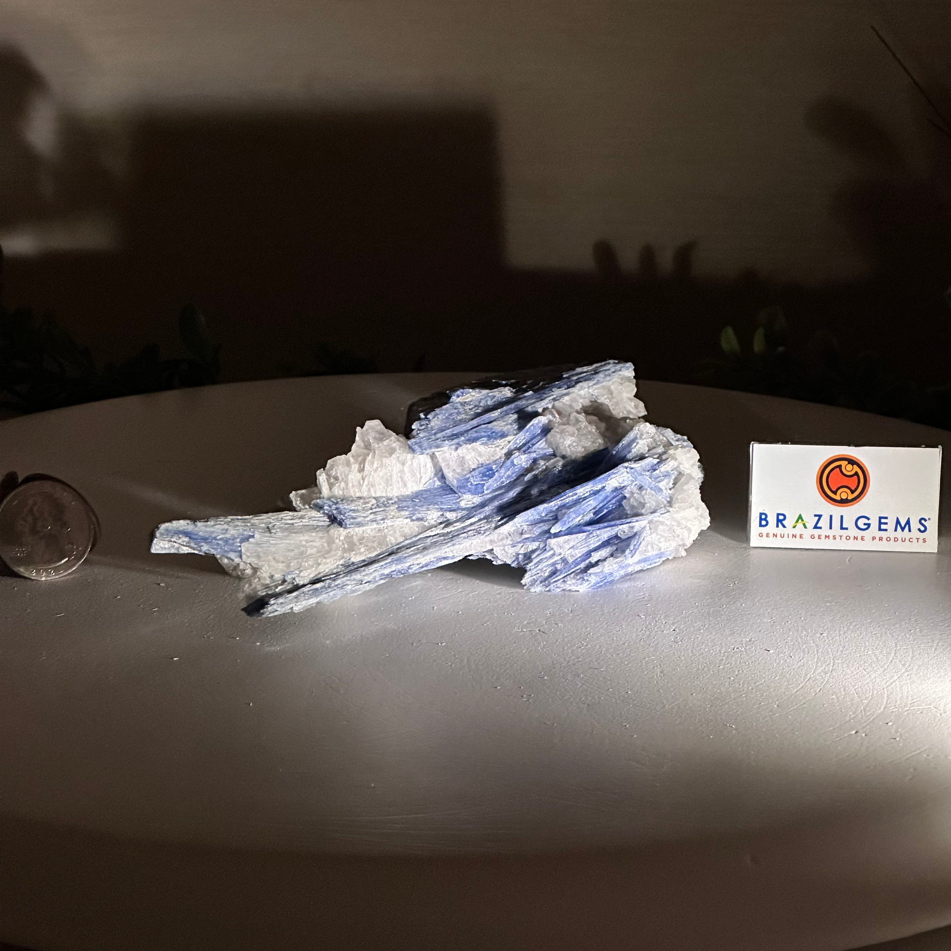 Brazil Gems offers quality Brazilian Kyanite clusters displayed on wood or metal bases. The bright blue colors of this brittle gemstone will accent the decor of your home or office.