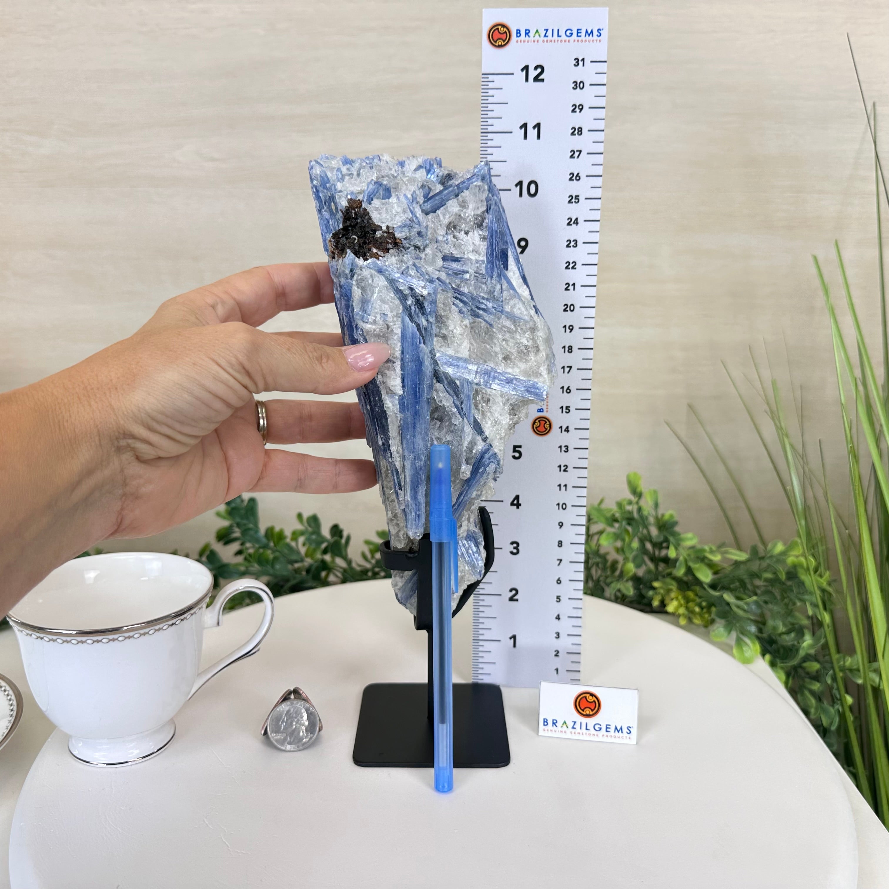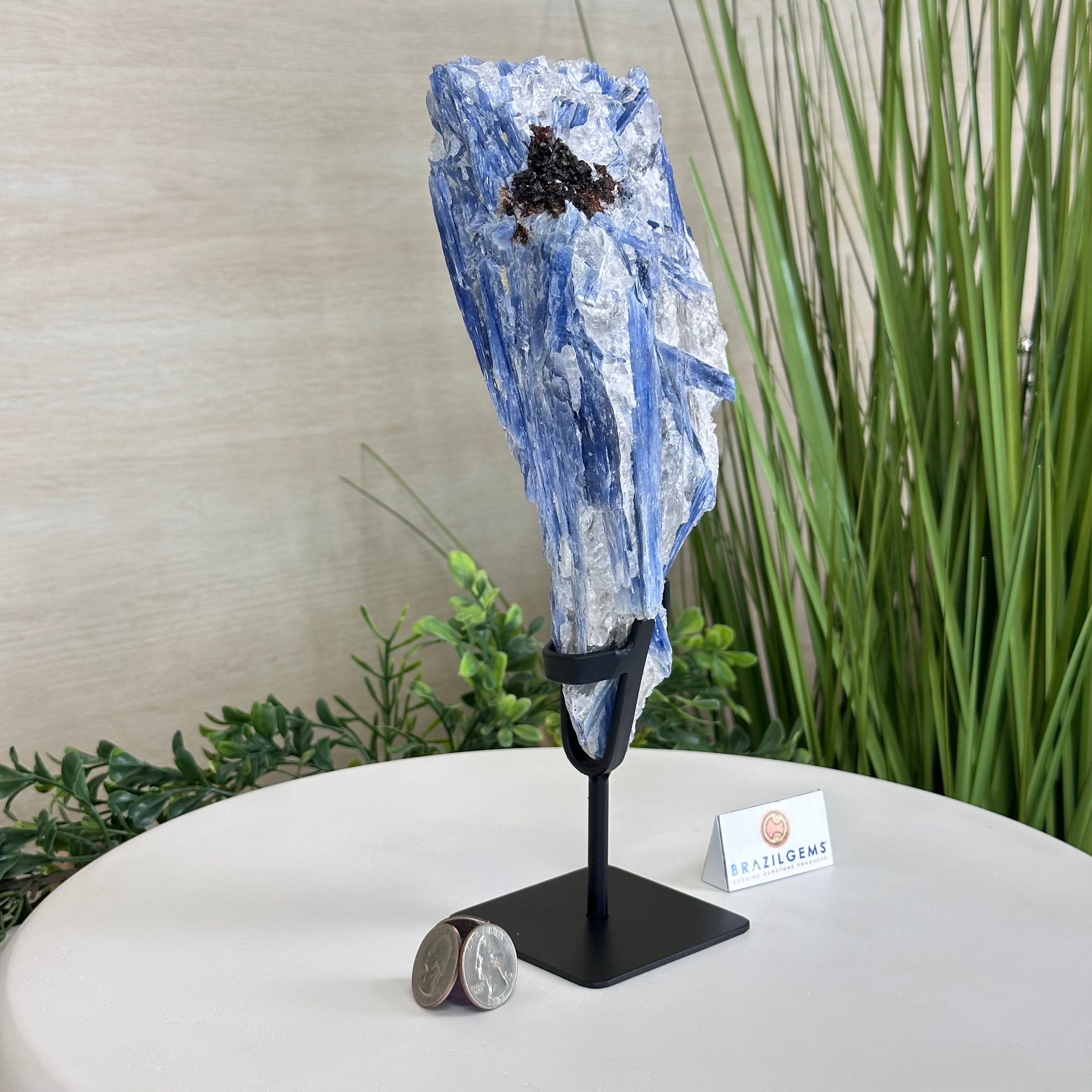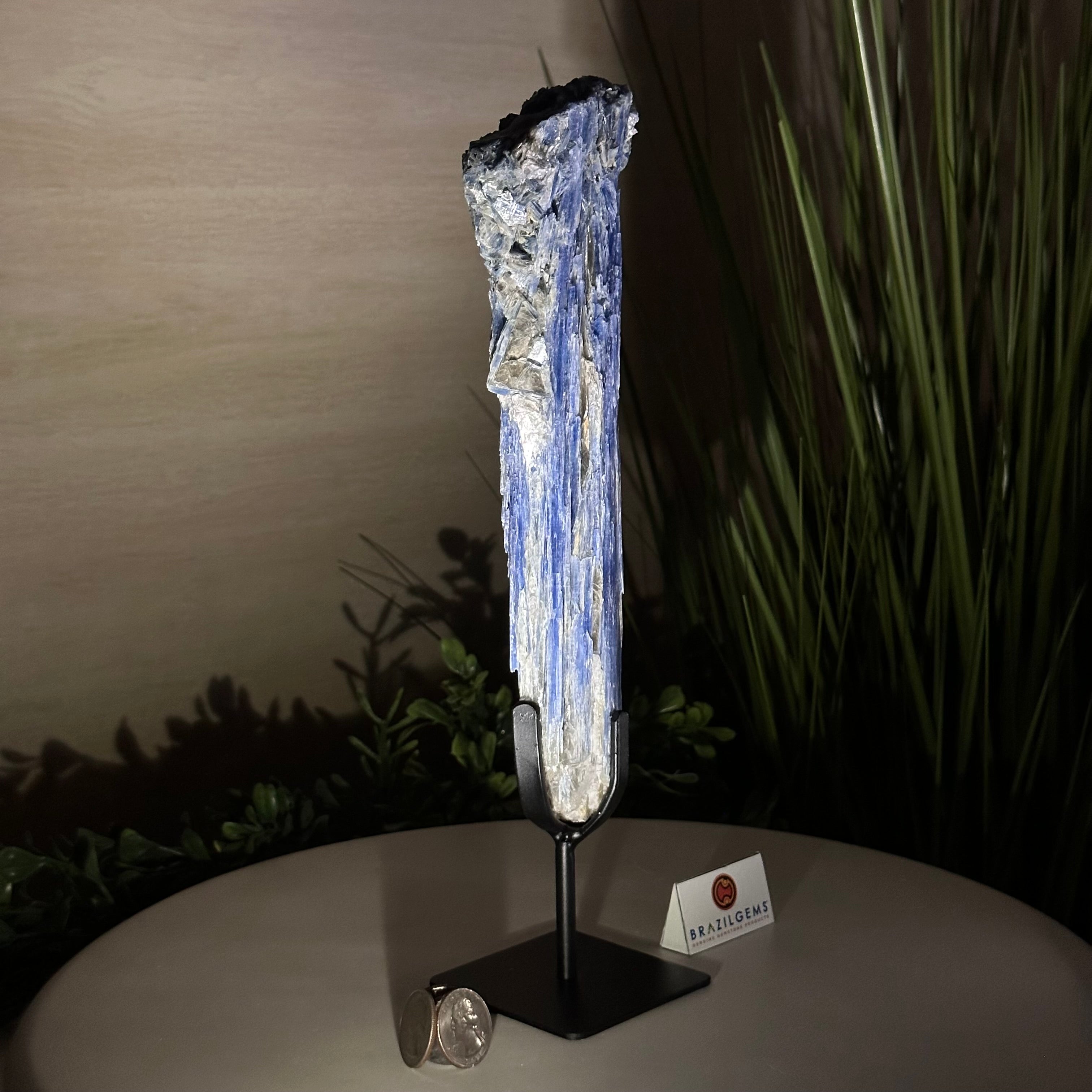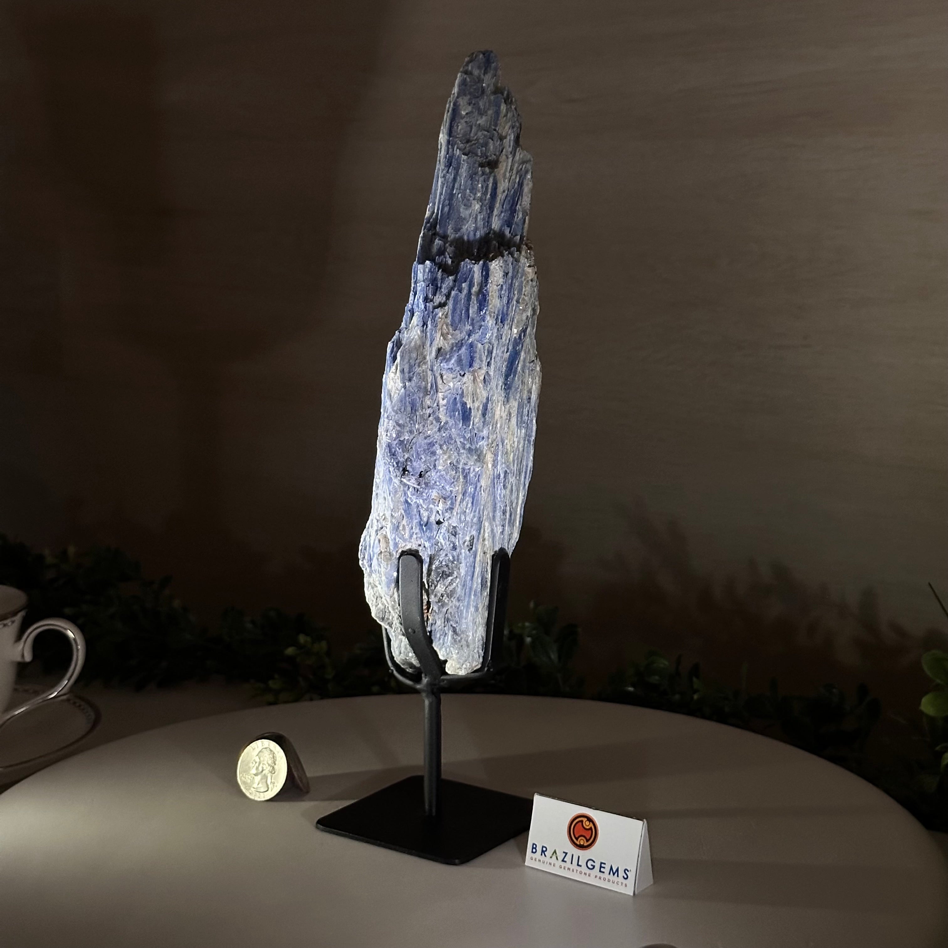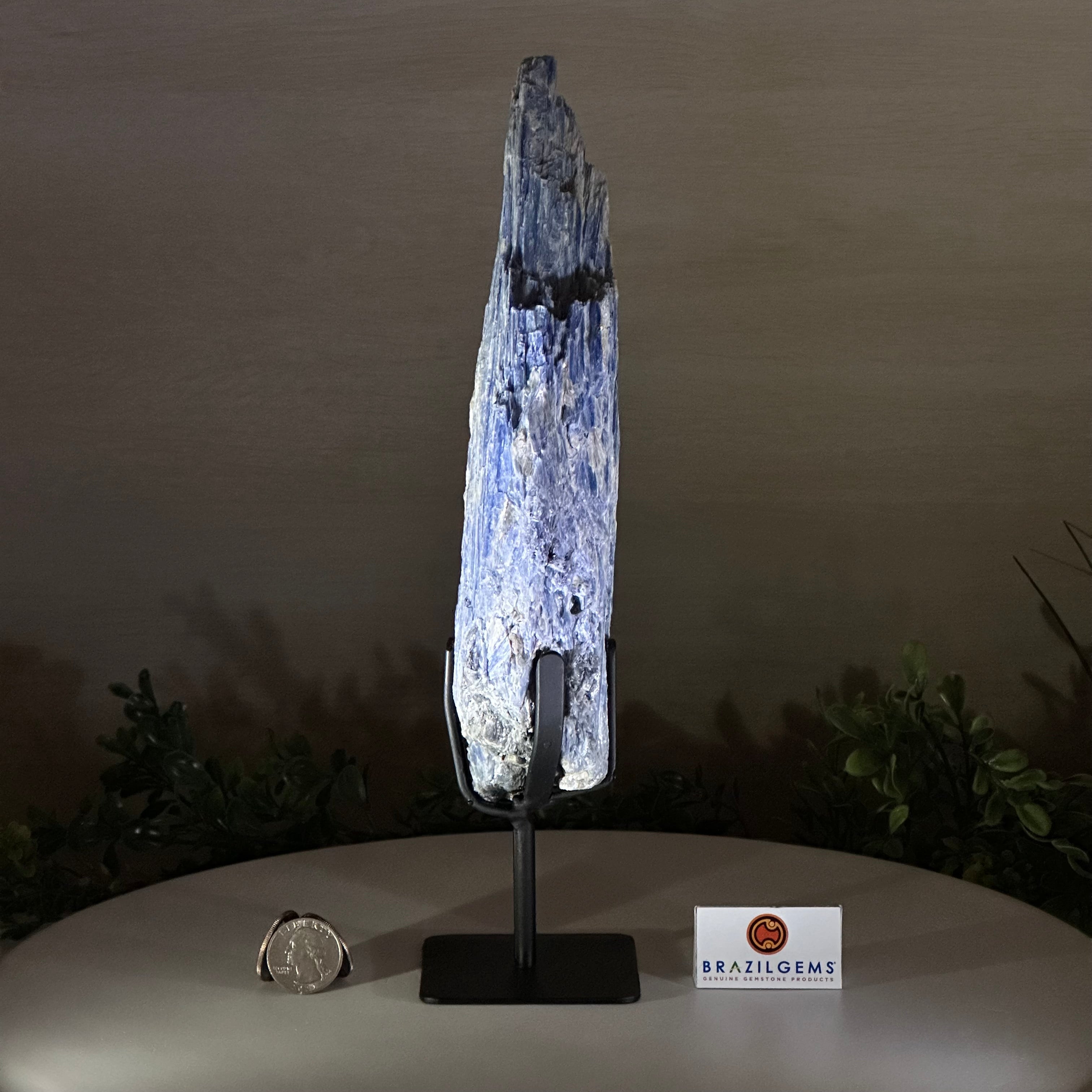 Brazil Gems offers quality Brazilian Kyanite clusters displayed on wood or metal bases. The bright blue colors of this brittle gemstone will accent the decor of your home or office.
