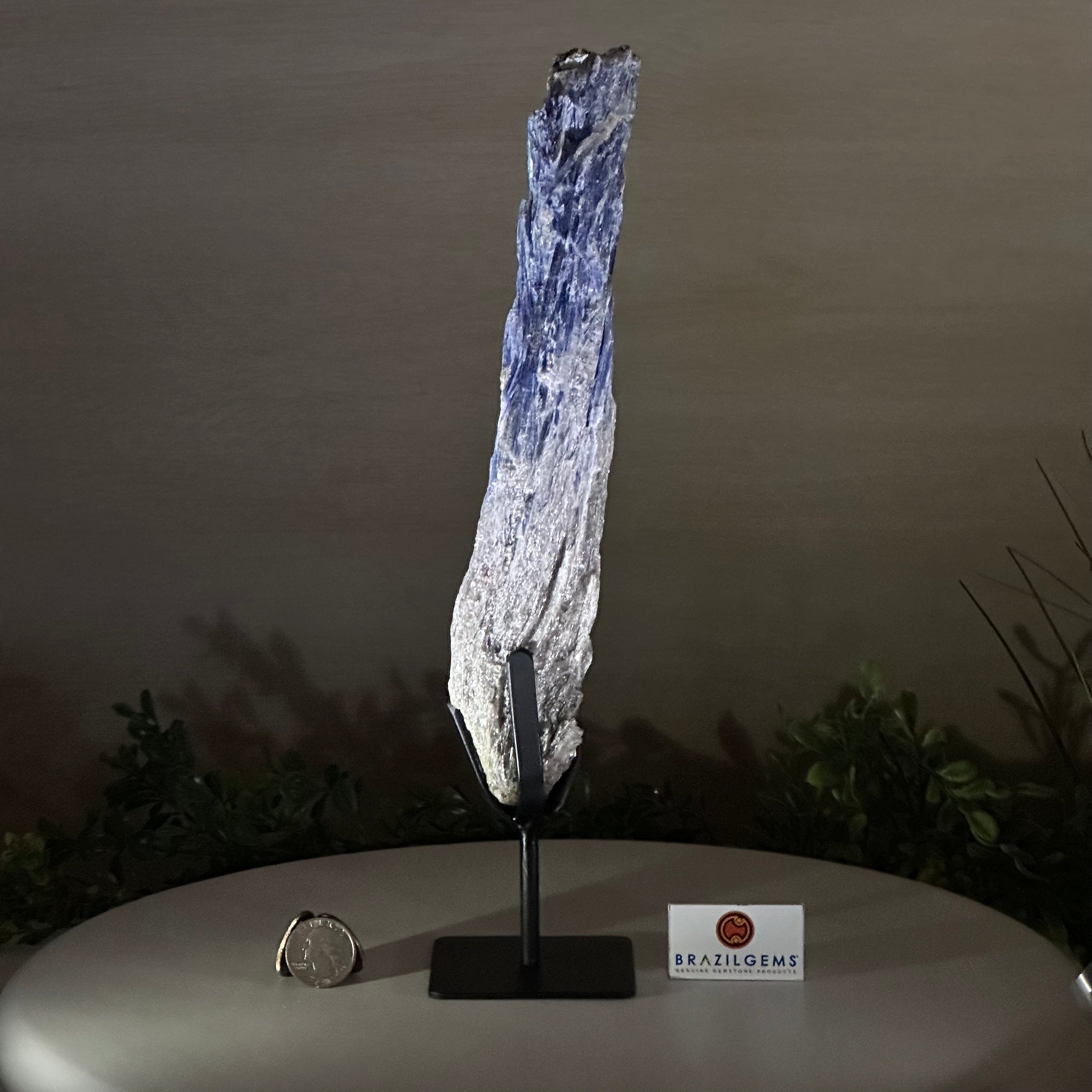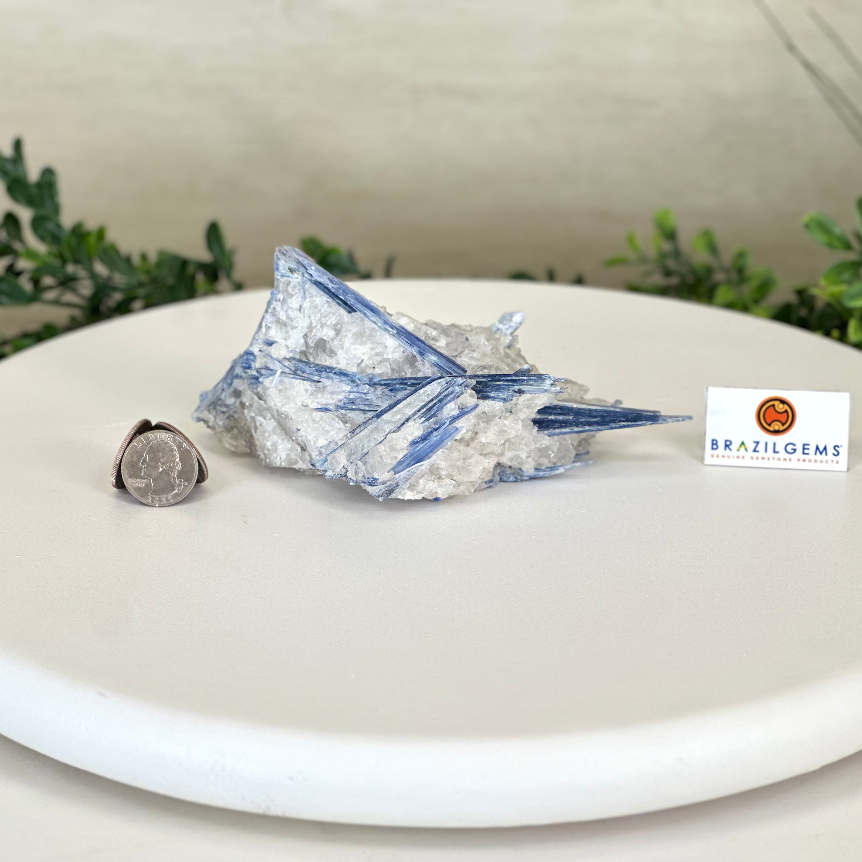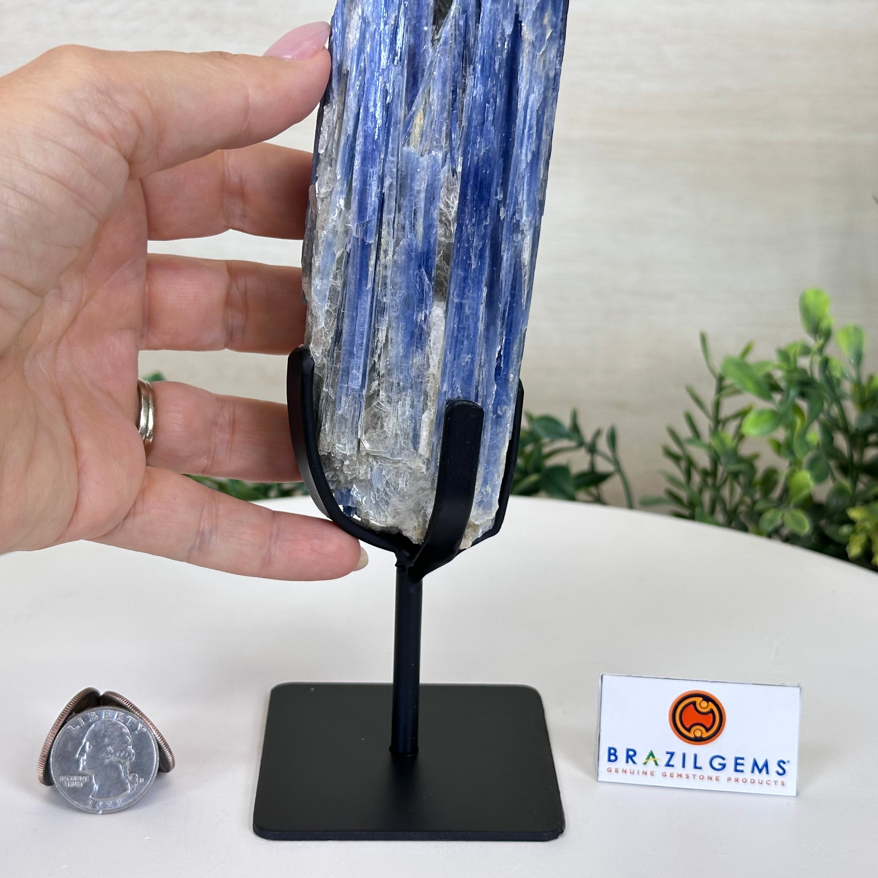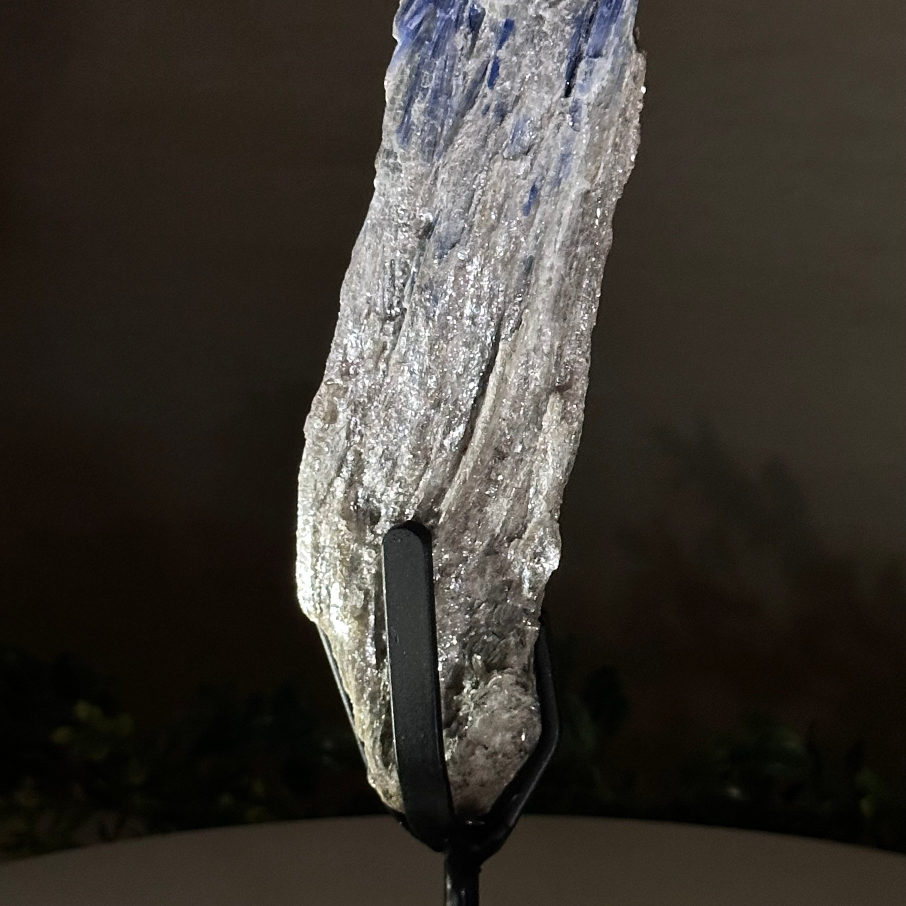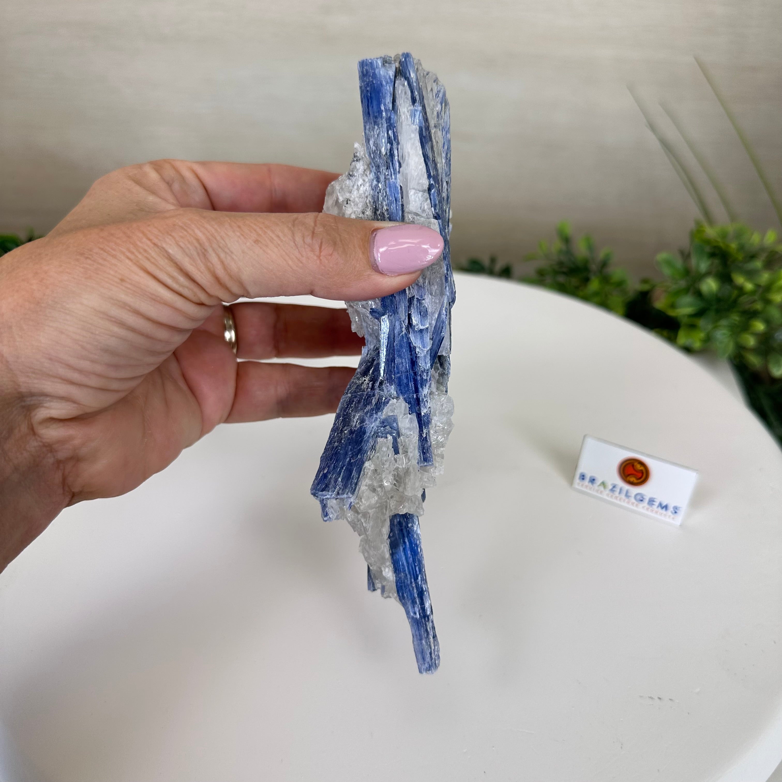 Brazil Gems offers quality Brazilian Kyanite clusters displayed on wood or metal bases. The bright blue colors of this brittle gemstone will accent the decor of your home or office.