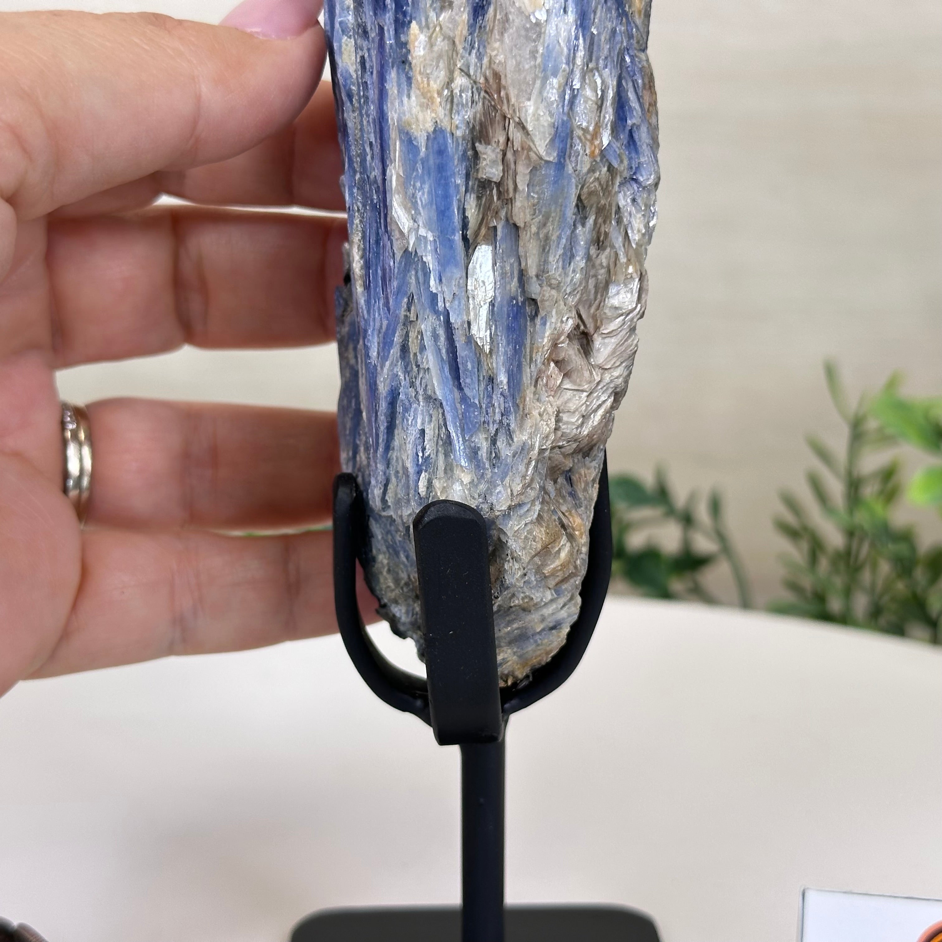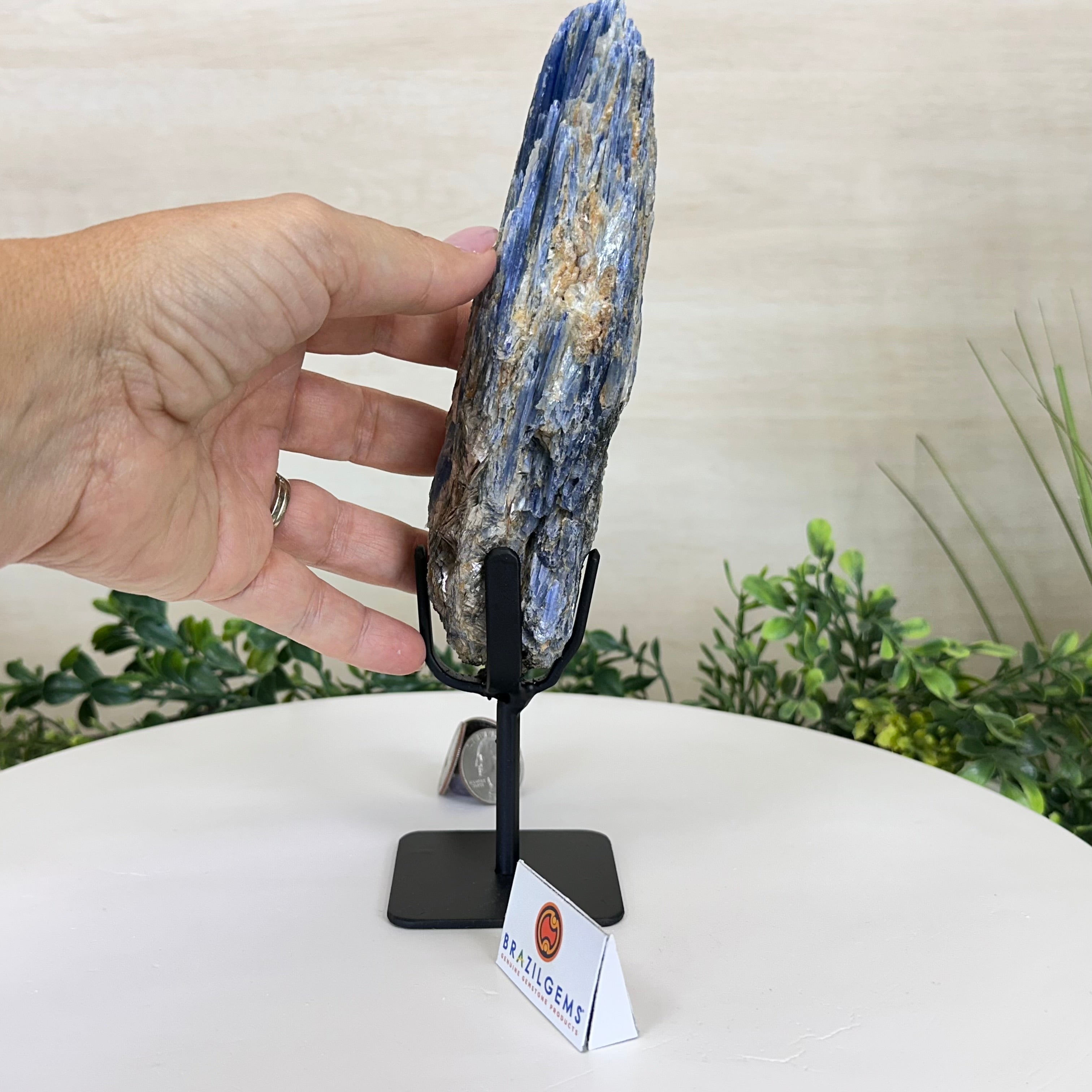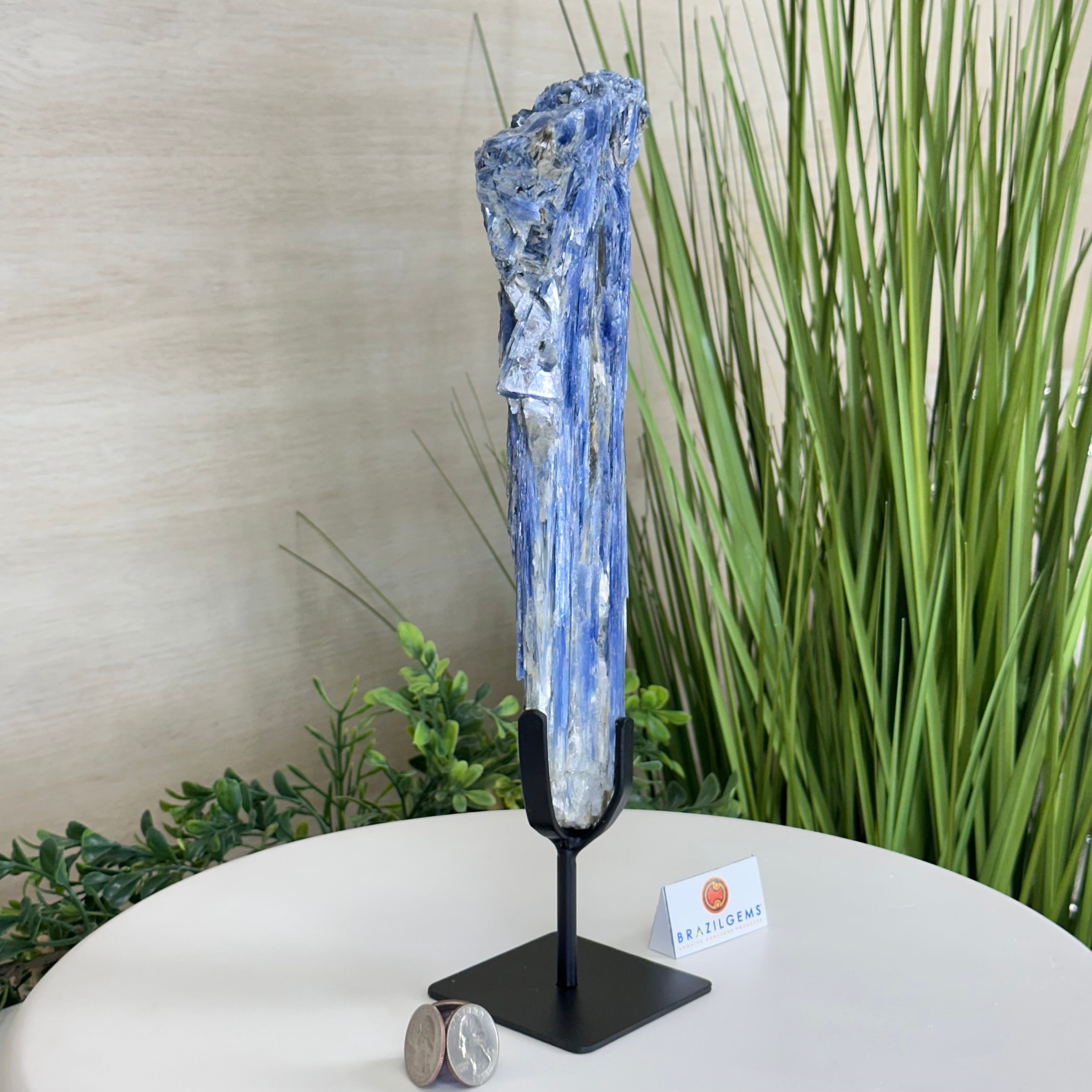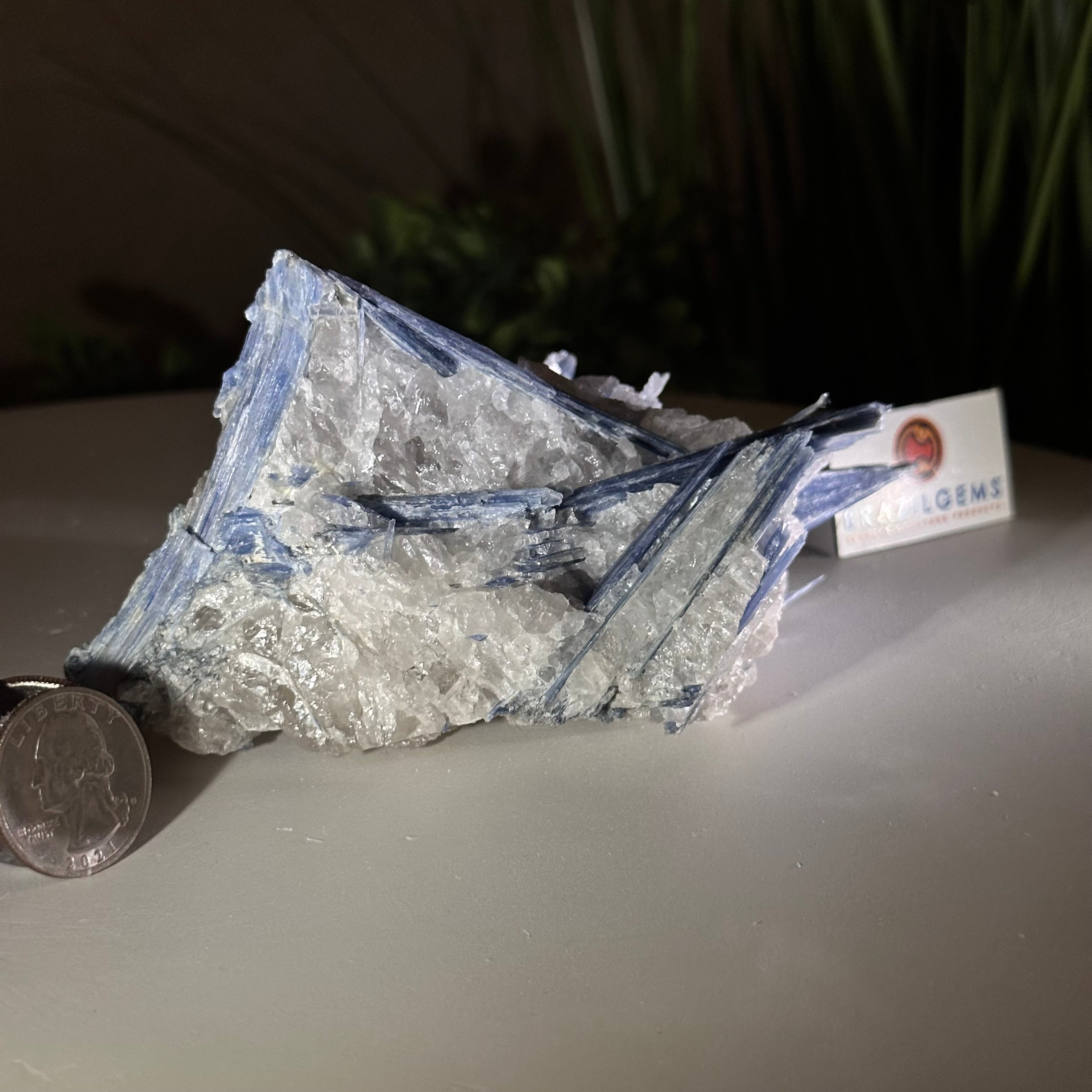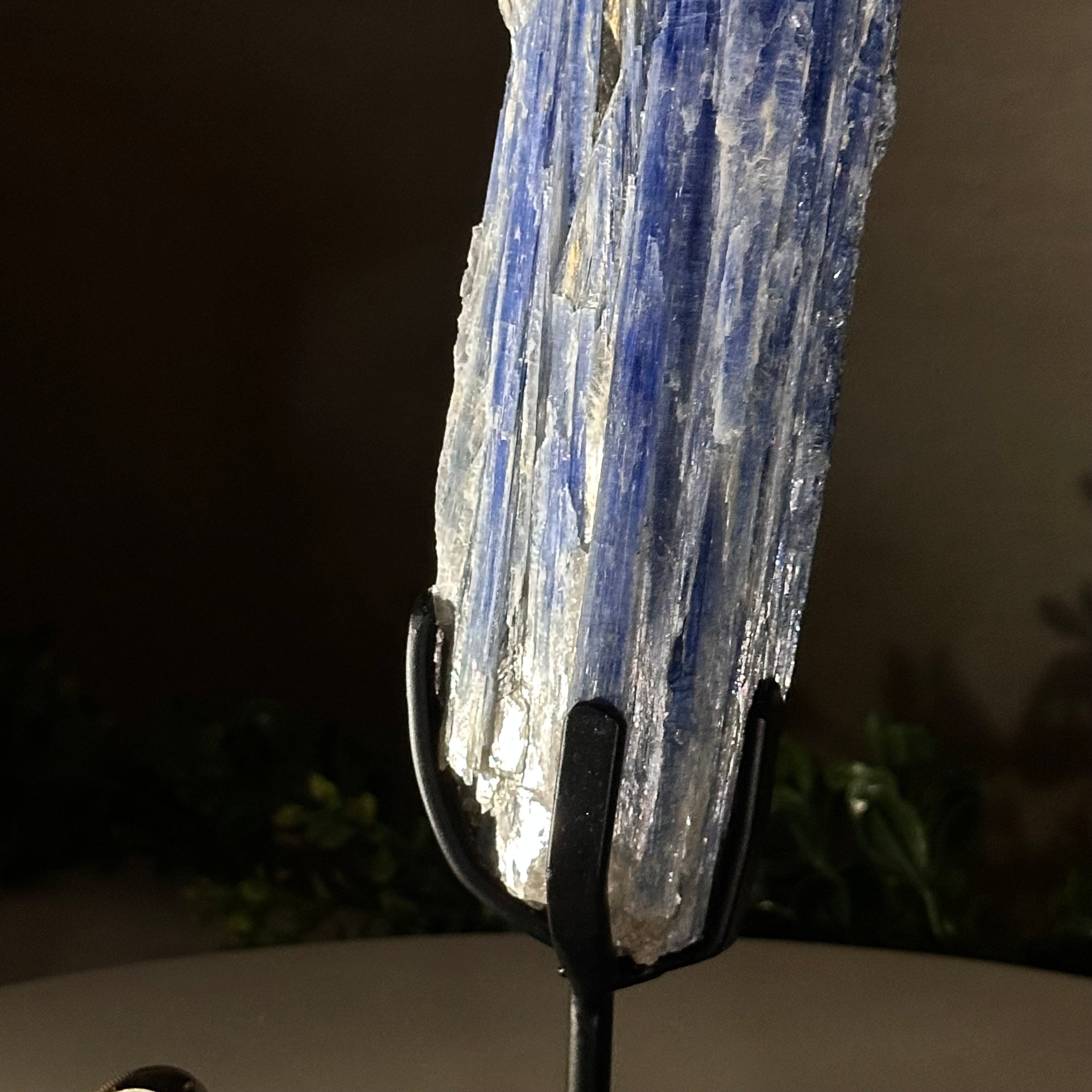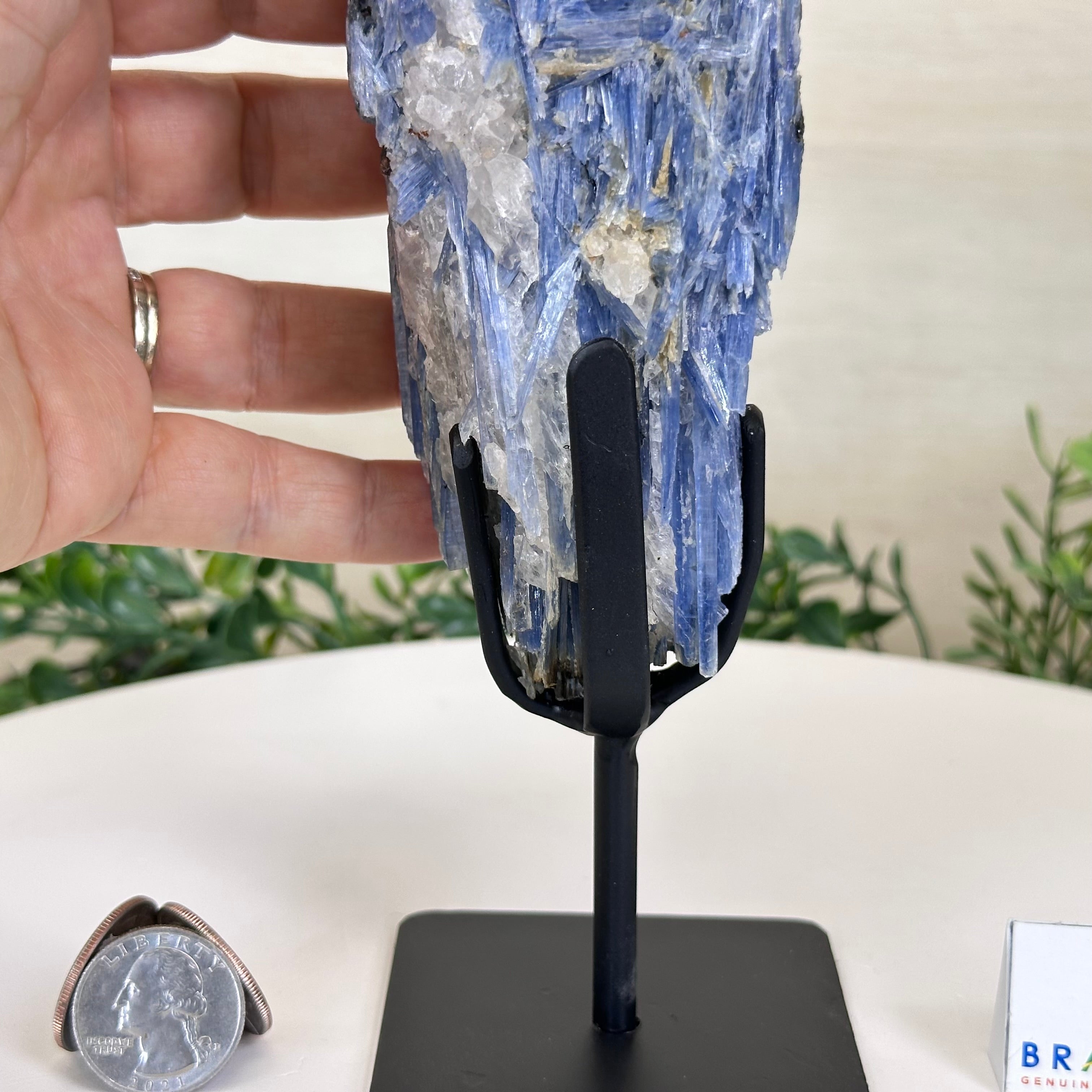 Brazil Gems offers quality Brazilian Kyanite clusters displayed on wood or metal bases. The bright blue colors of this brittle gemstone will accent the decor of your home or office.