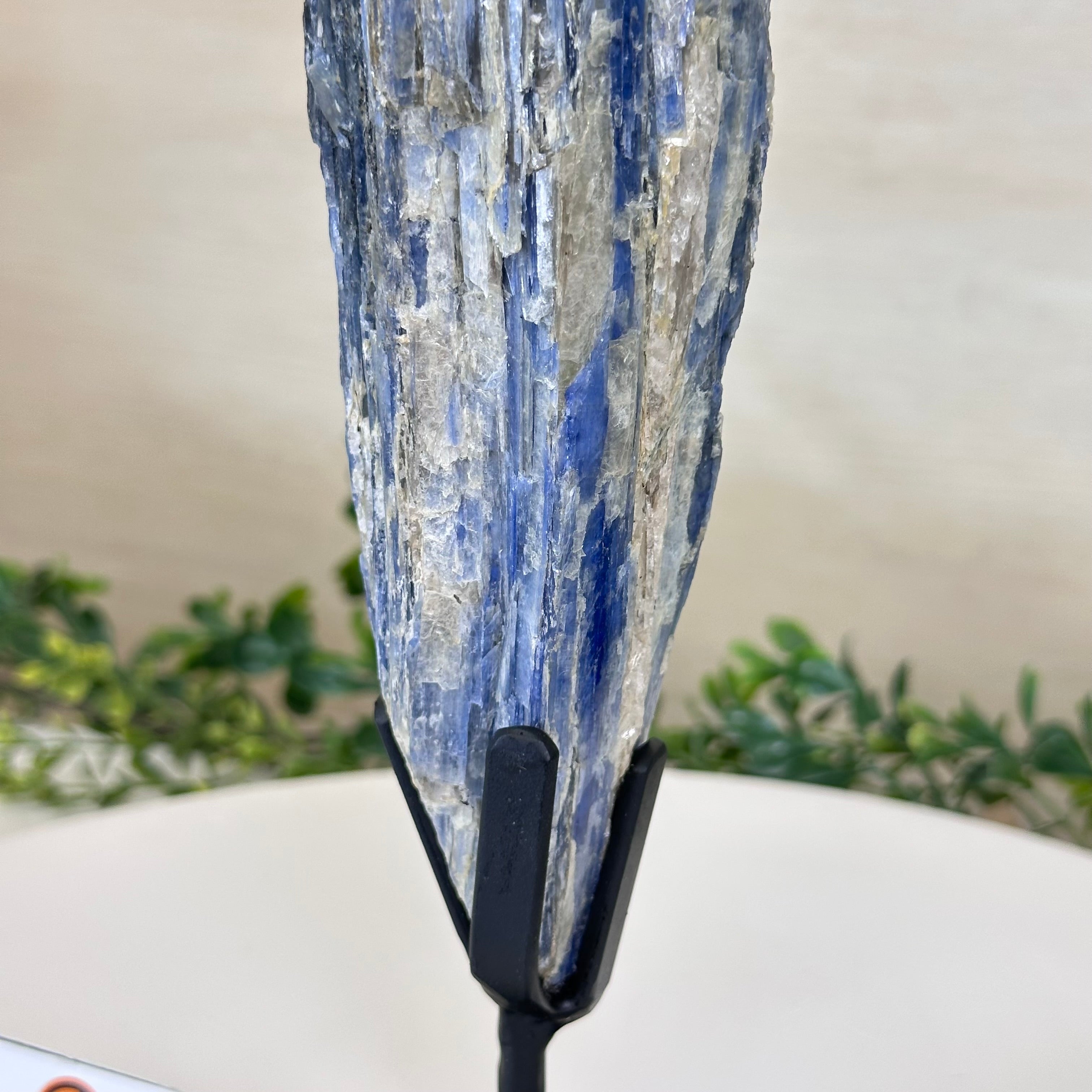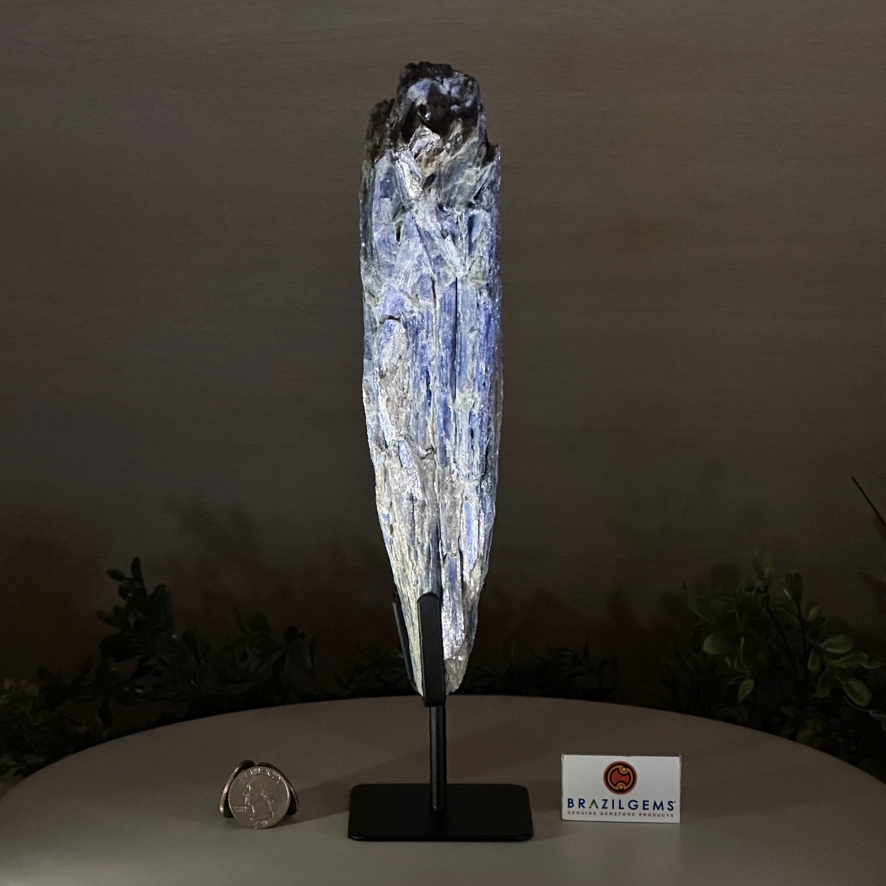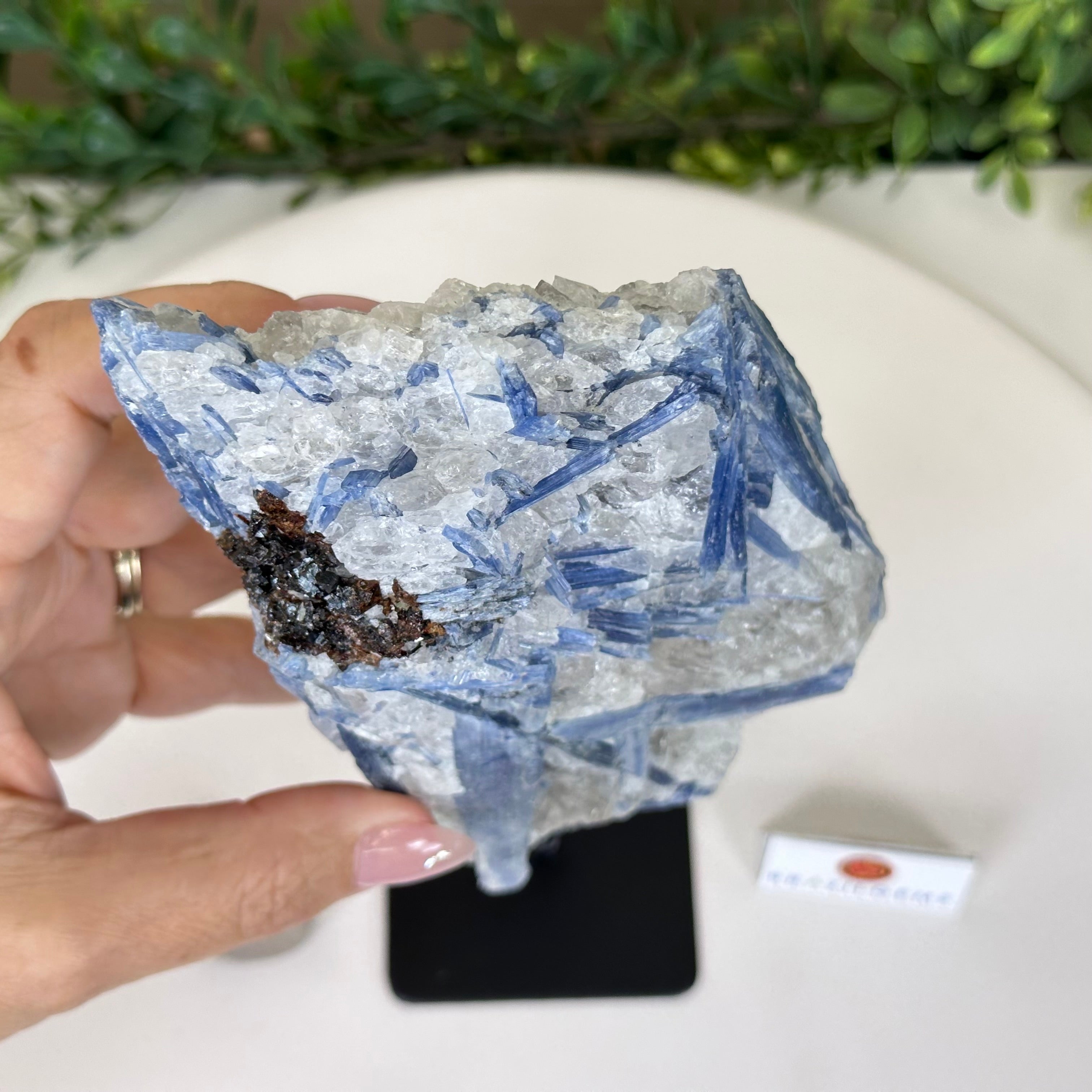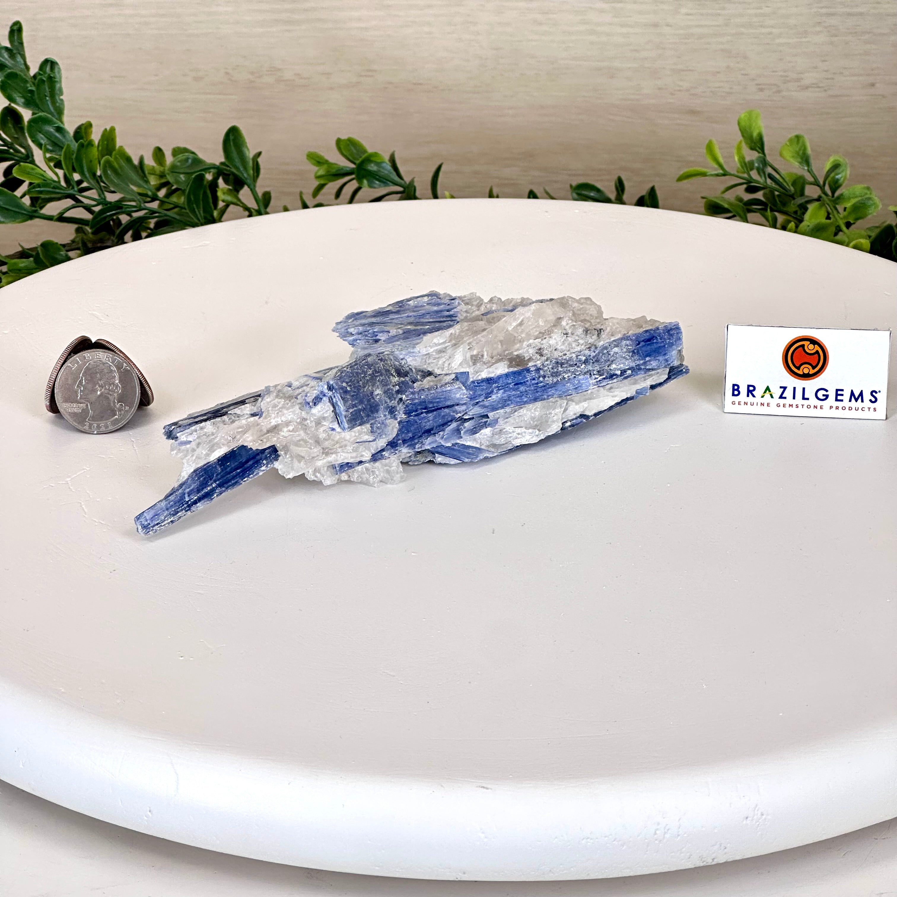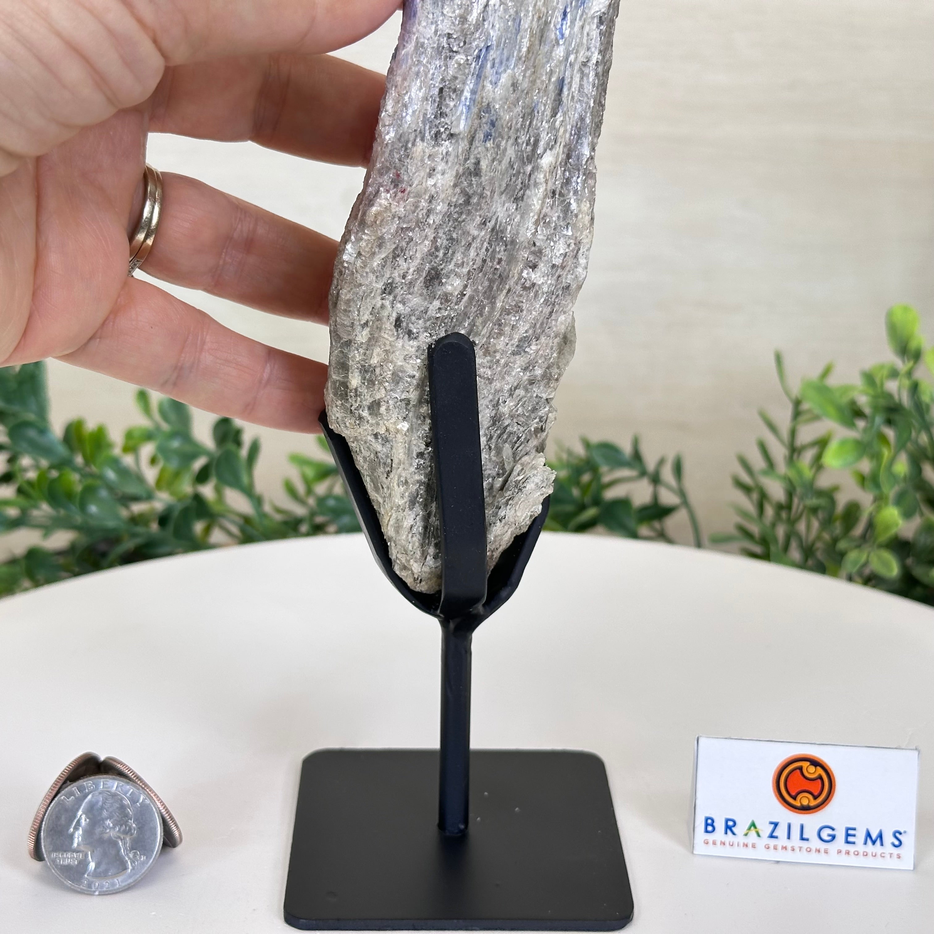 Brazil Gems offers quality Brazilian Kyanite clusters displayed on wood or metal bases. The bright blue colors of this brittle gemstone will accent the decor of your home or office.