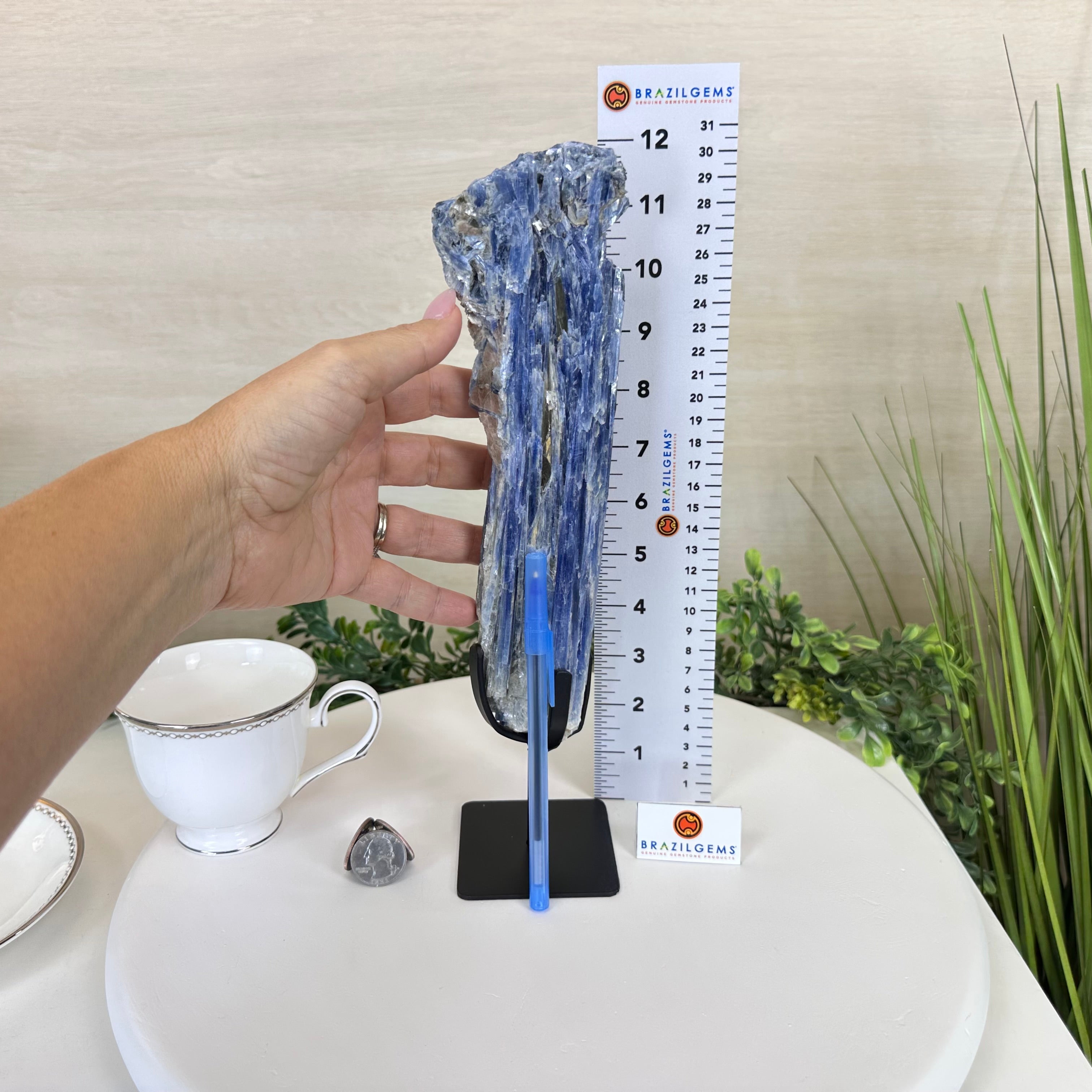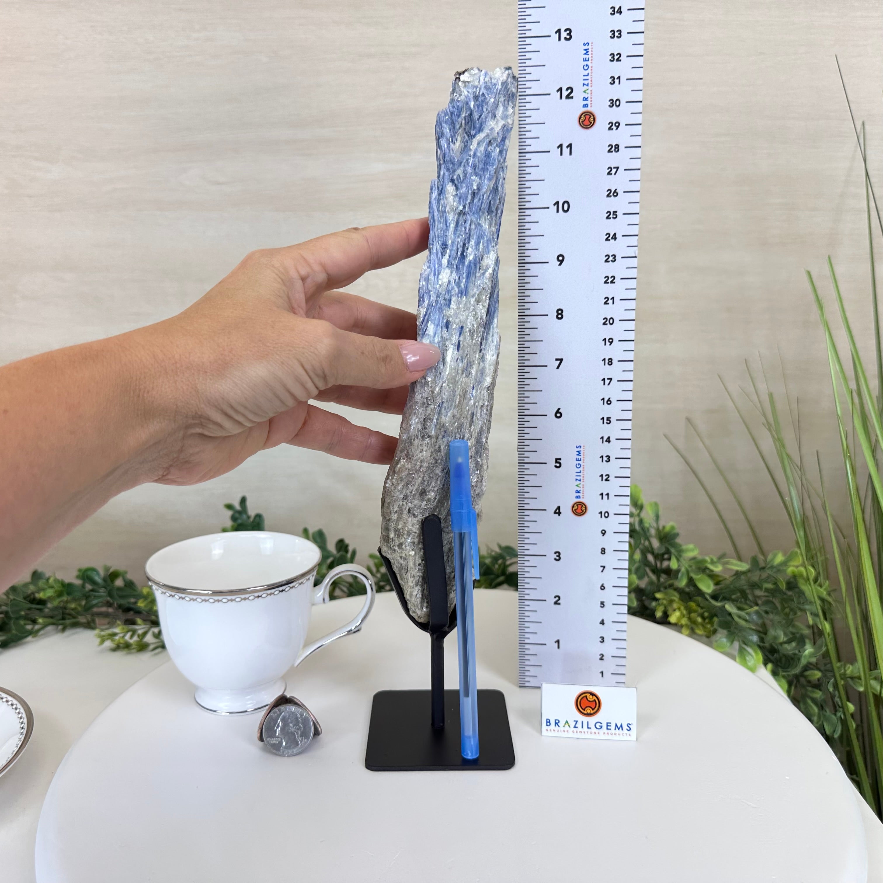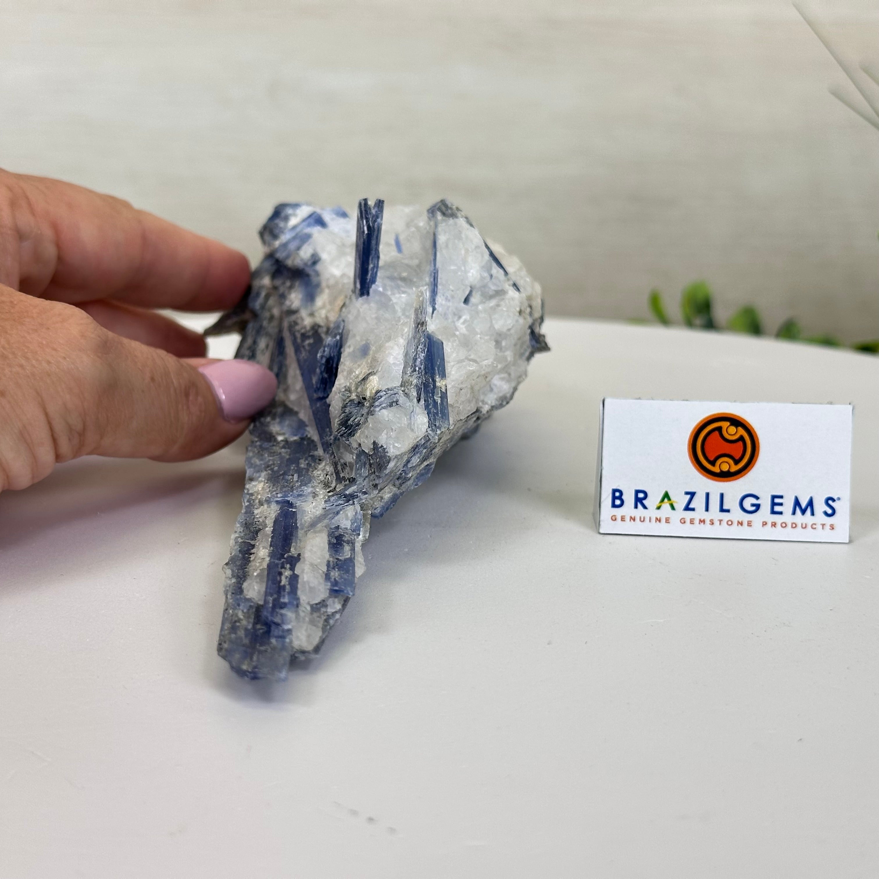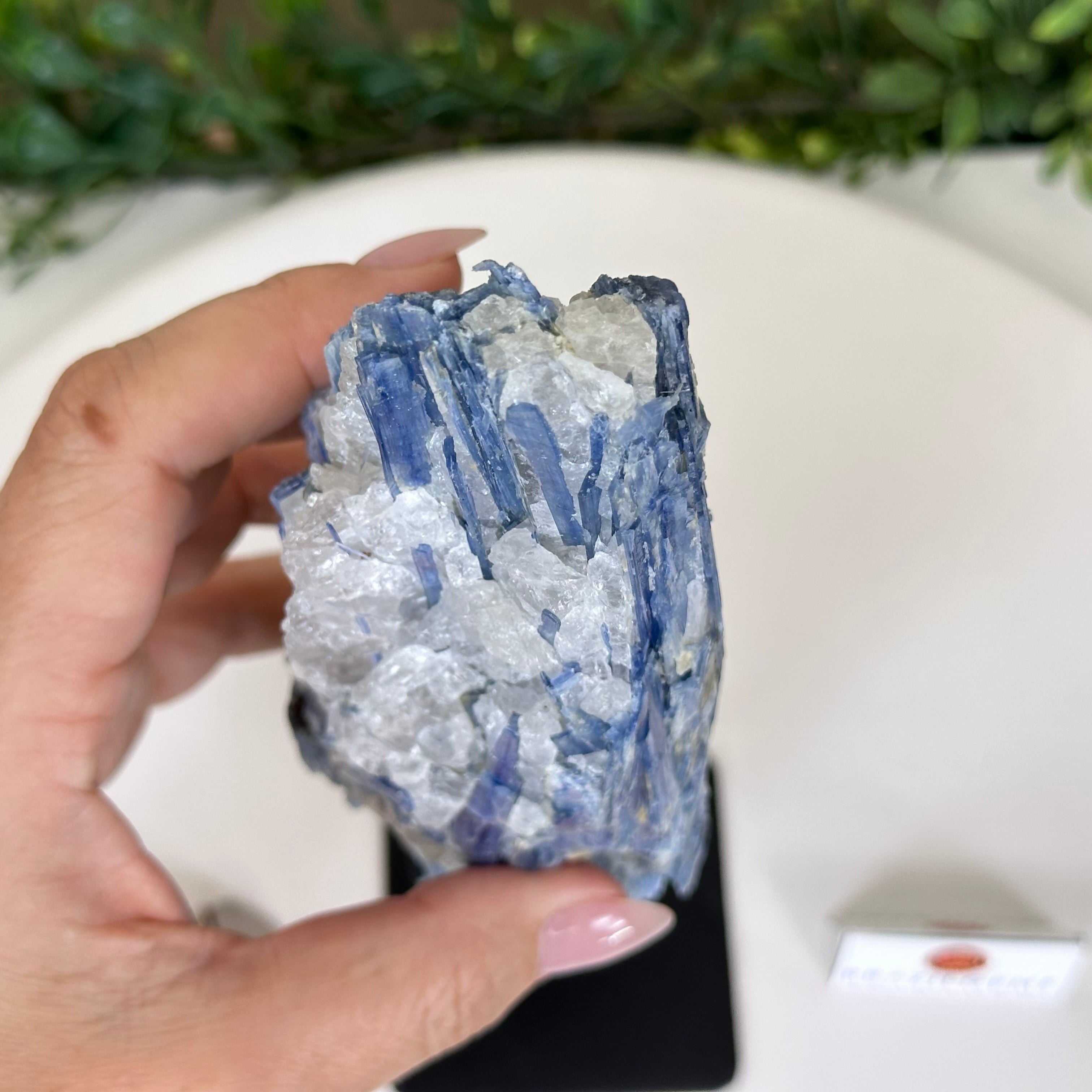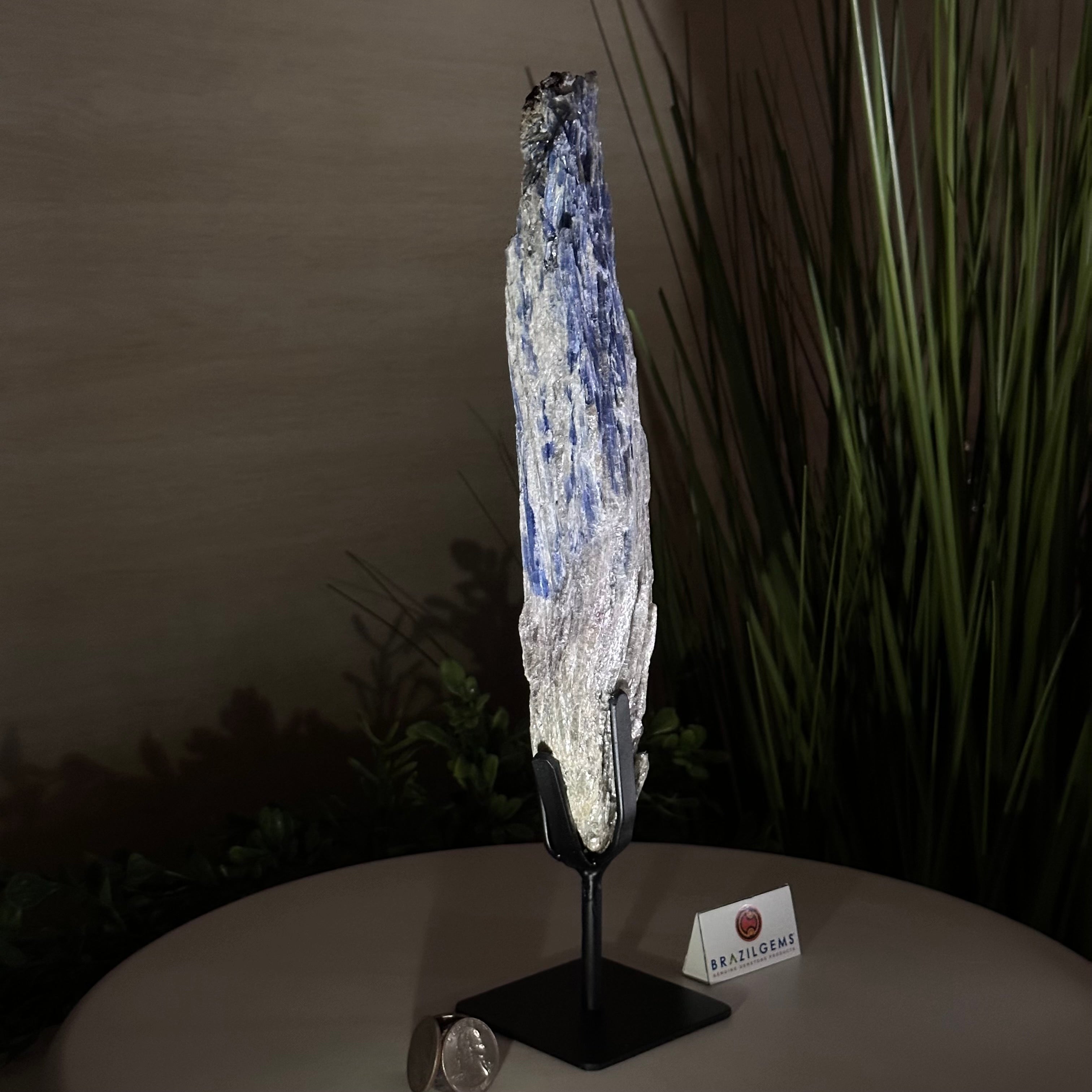 Brazil Gems offers quality Brazilian Kyanite clusters displayed on wood or metal bases. The bright blue colors of this brittle gemstone will accent the decor of your home or office.