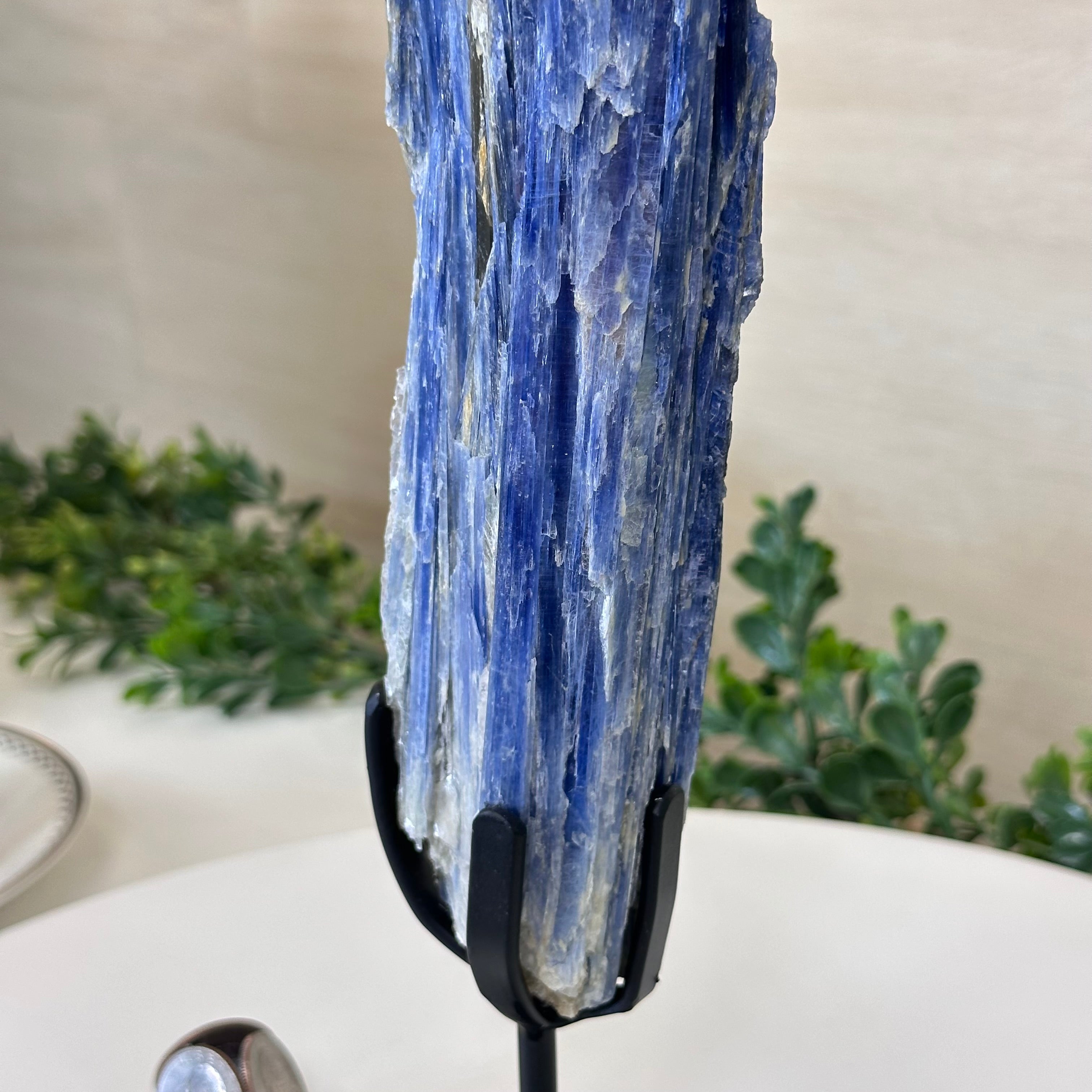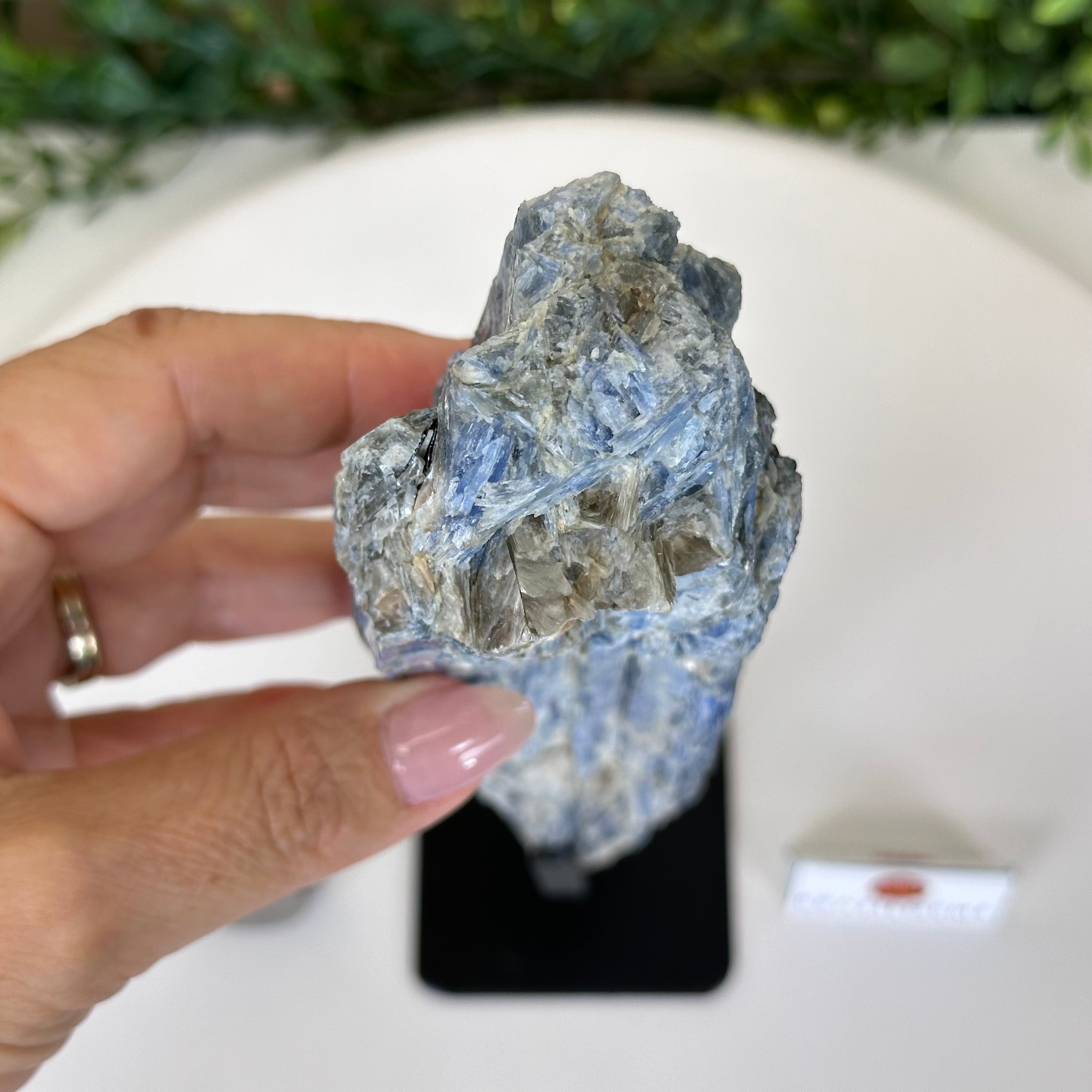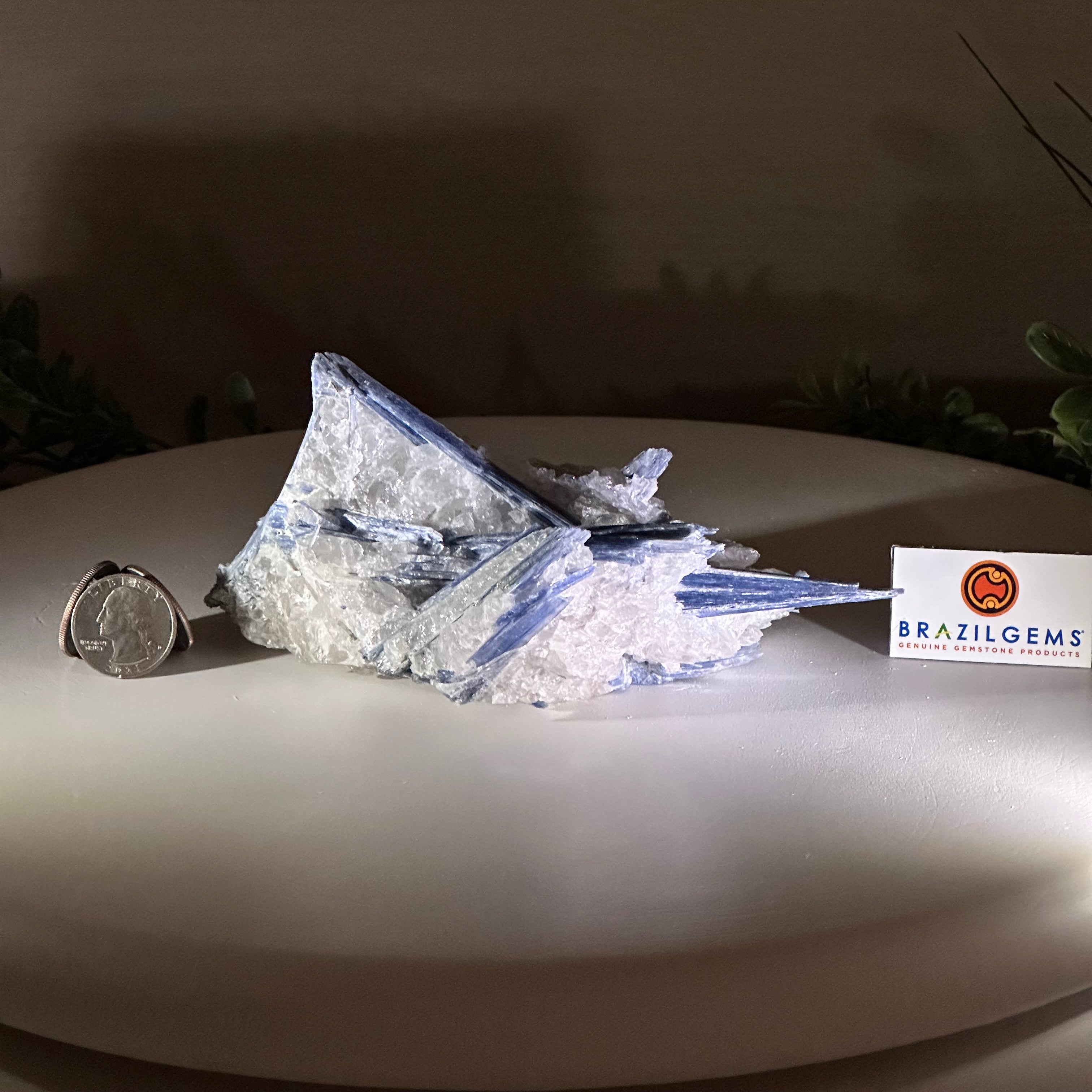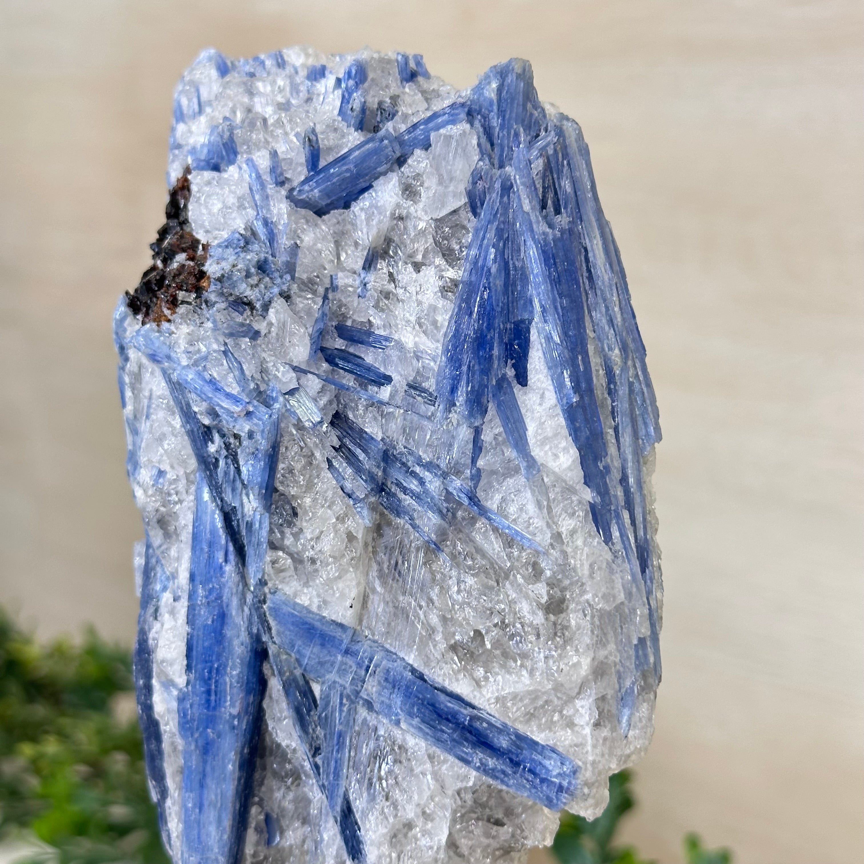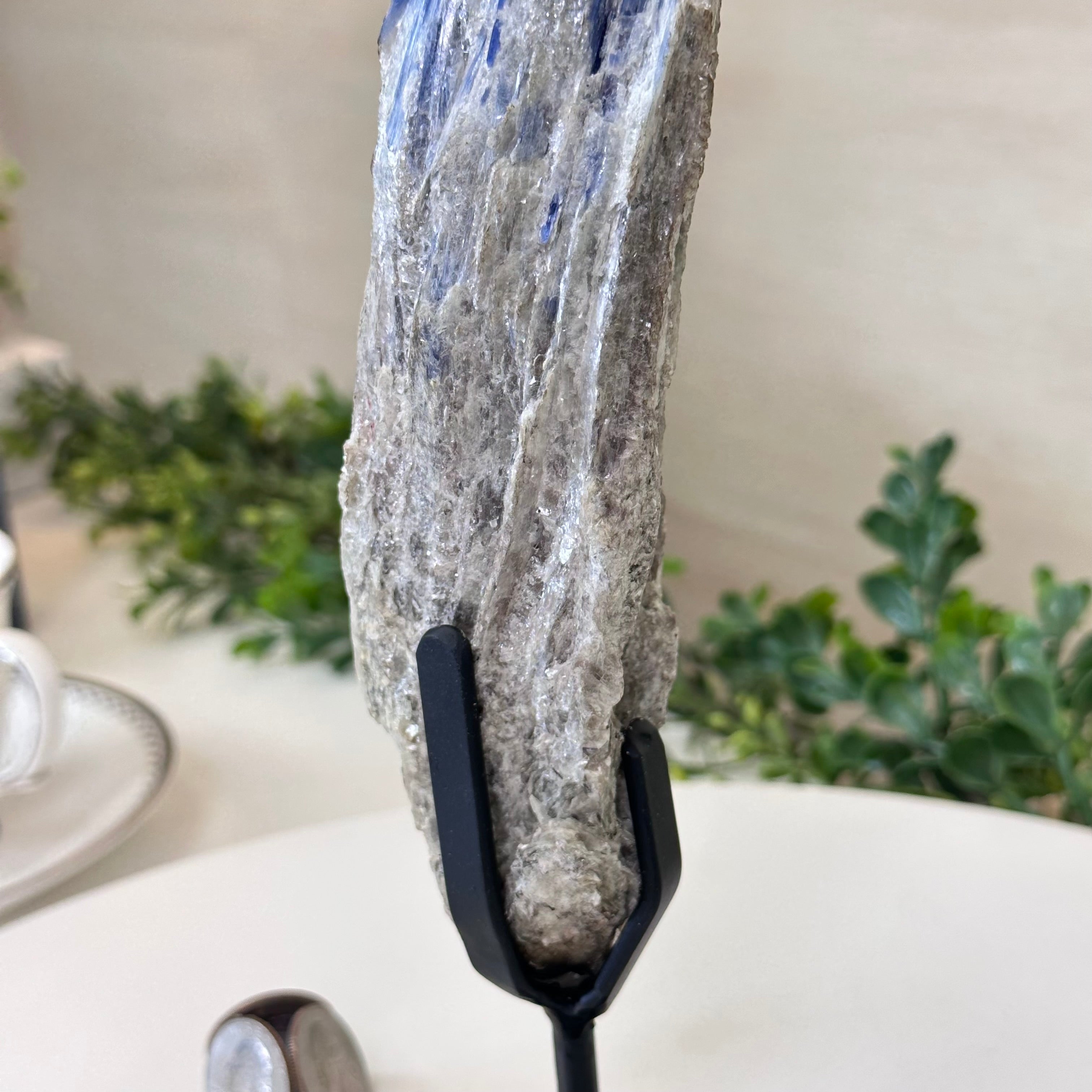 Brazil Gems offers quality Brazilian Kyanite clusters displayed on wood or metal bases. The bright blue colors of this brittle gemstone will accent the decor of your home or office.