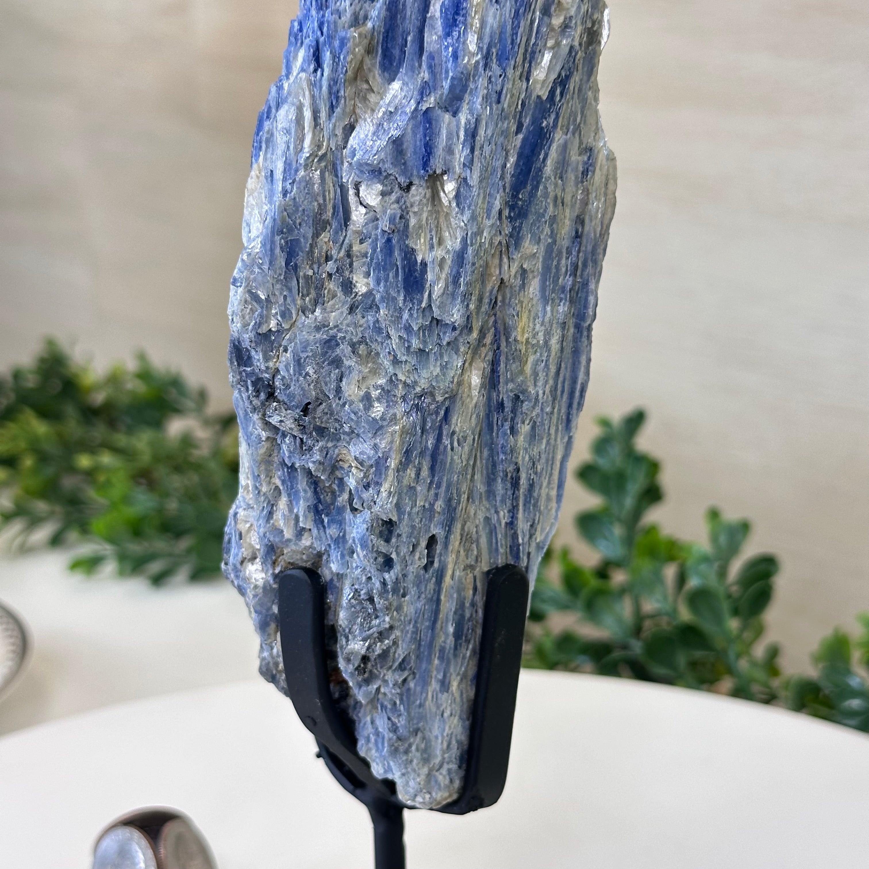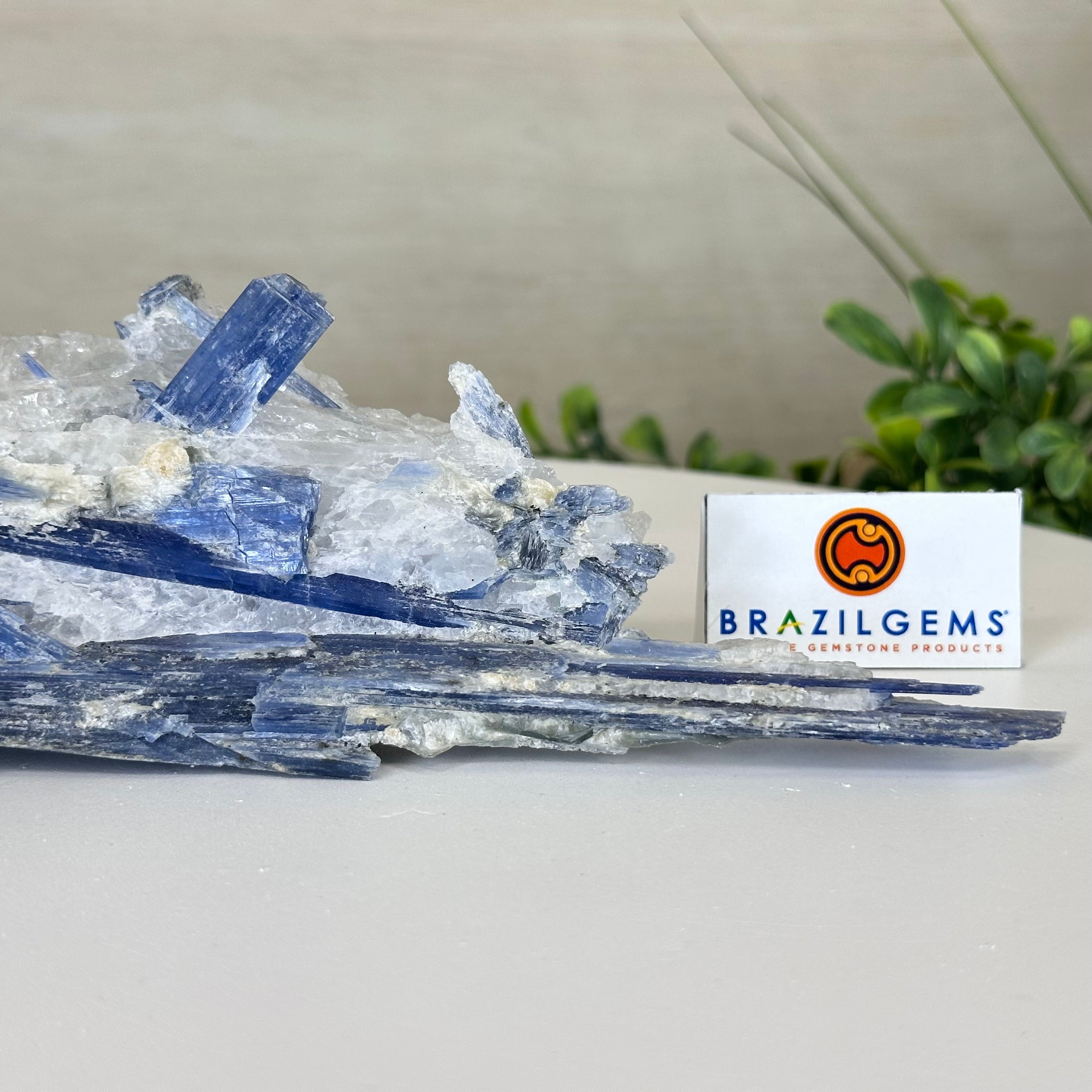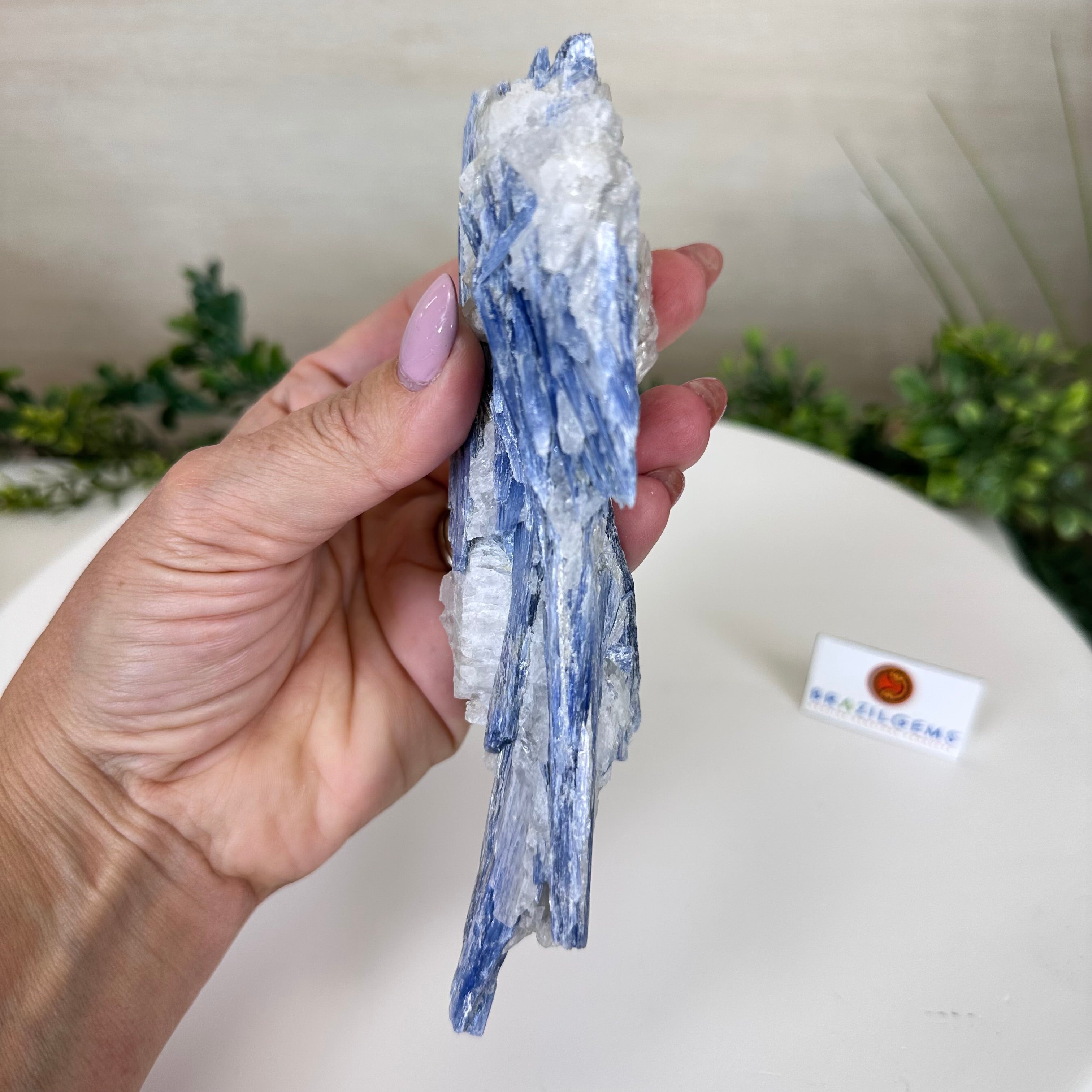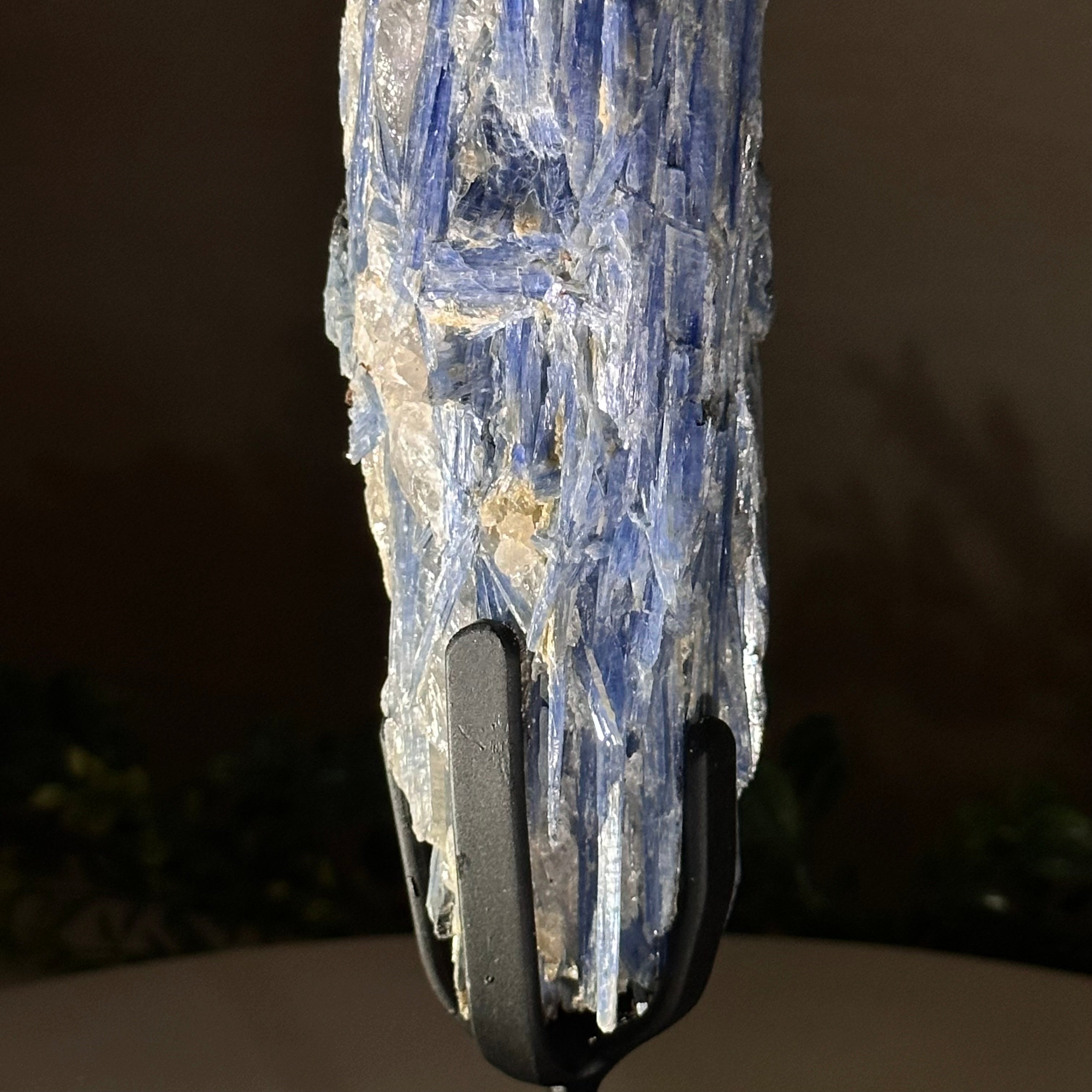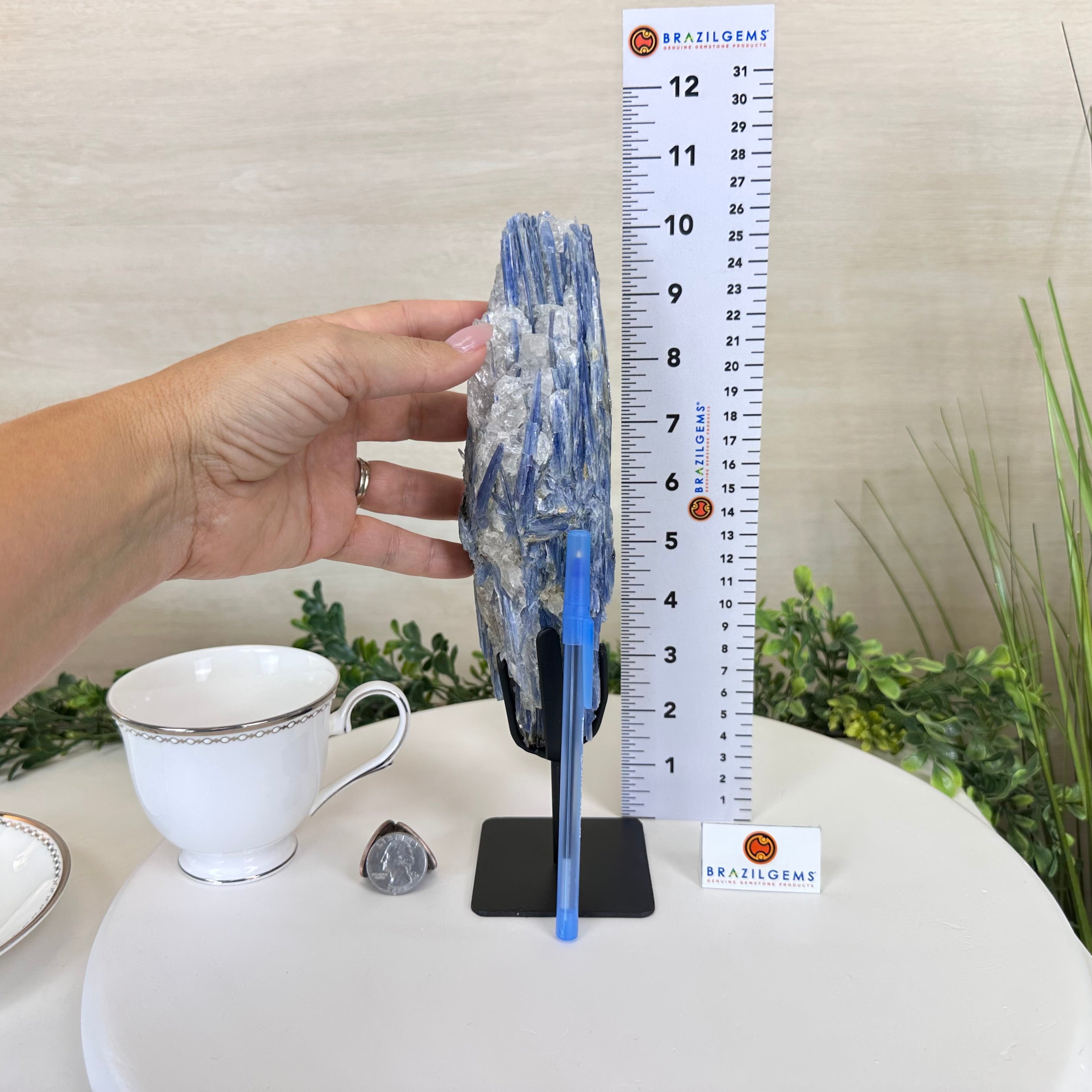 Brazil Gems offers quality Brazilian Kyanite clusters displayed on wood or metal bases. The bright blue colors of this brittle gemstone will accent the decor of your home or office.