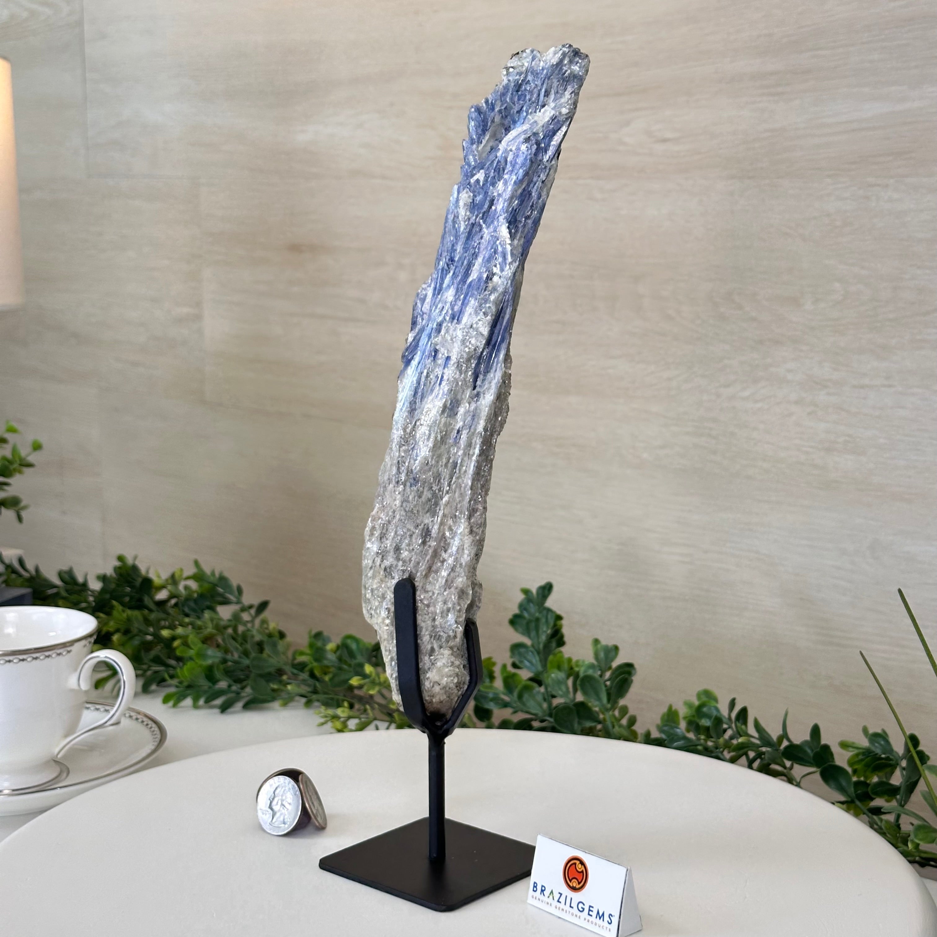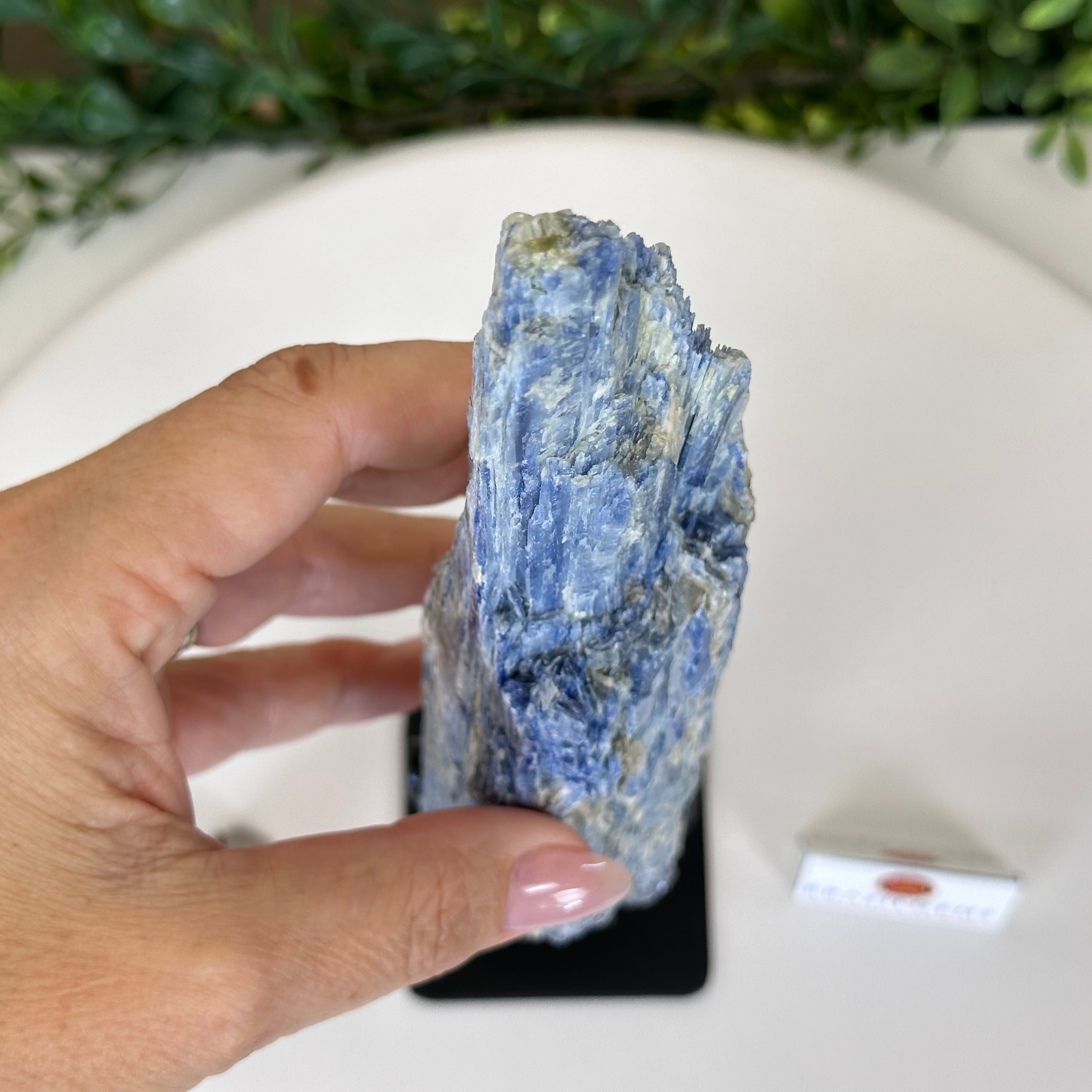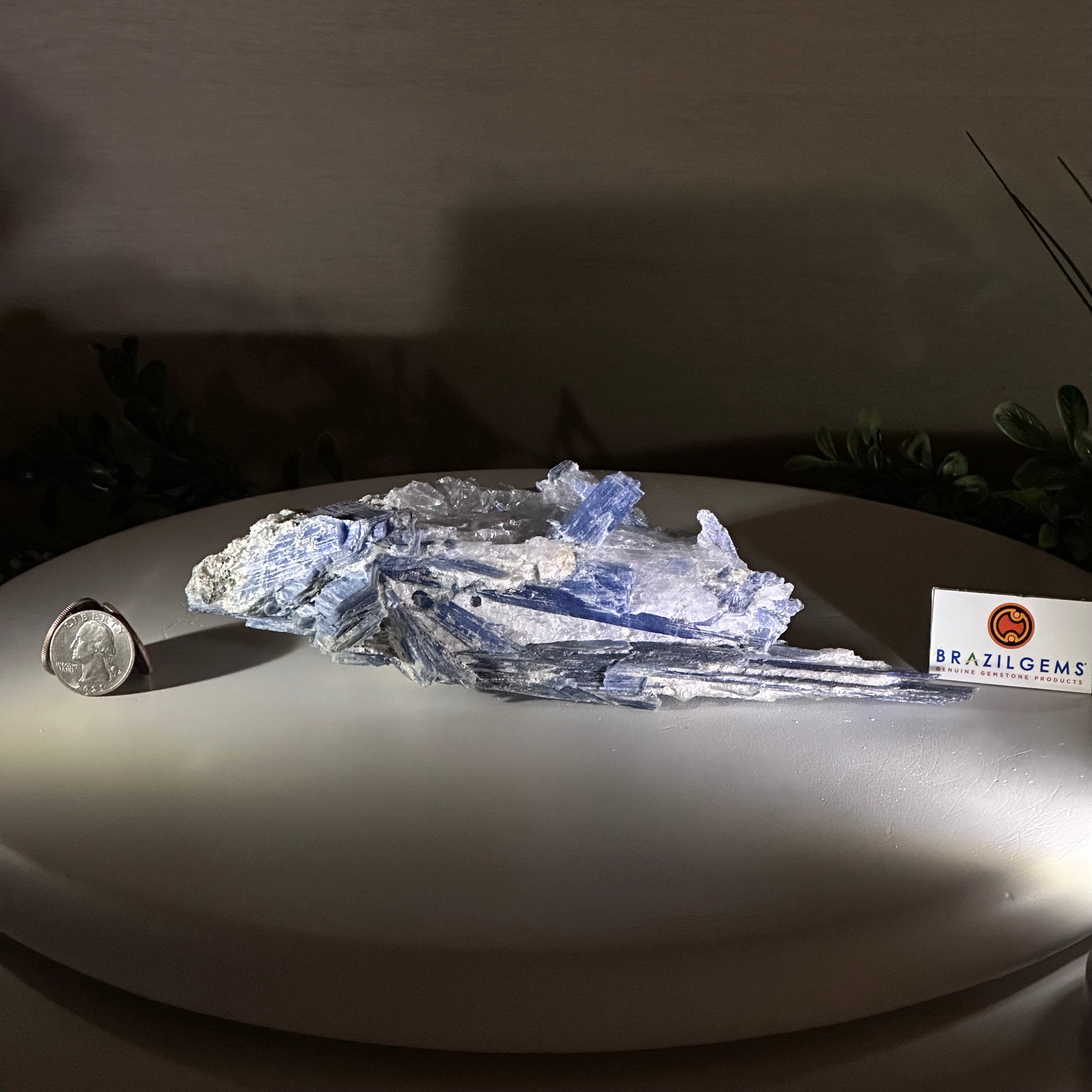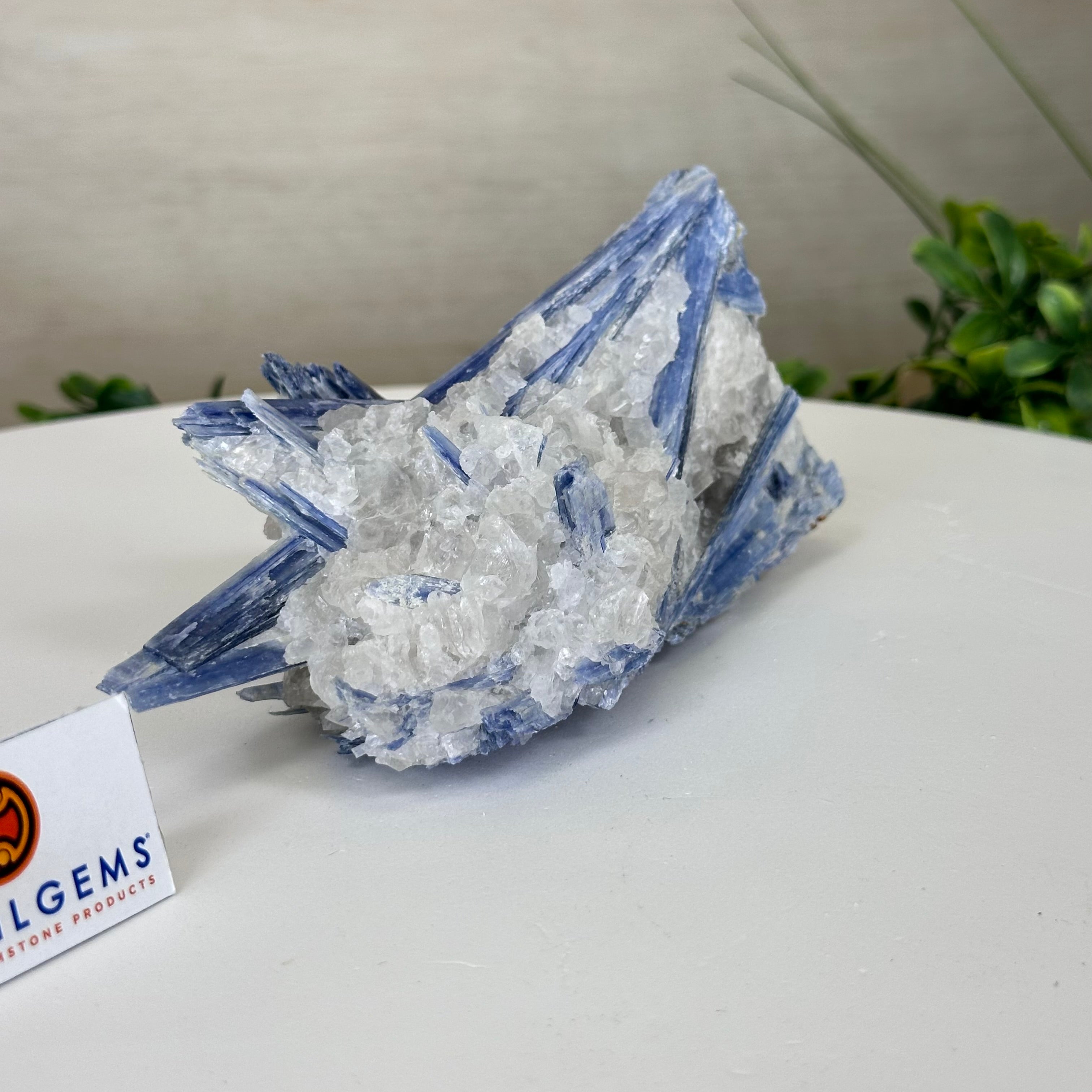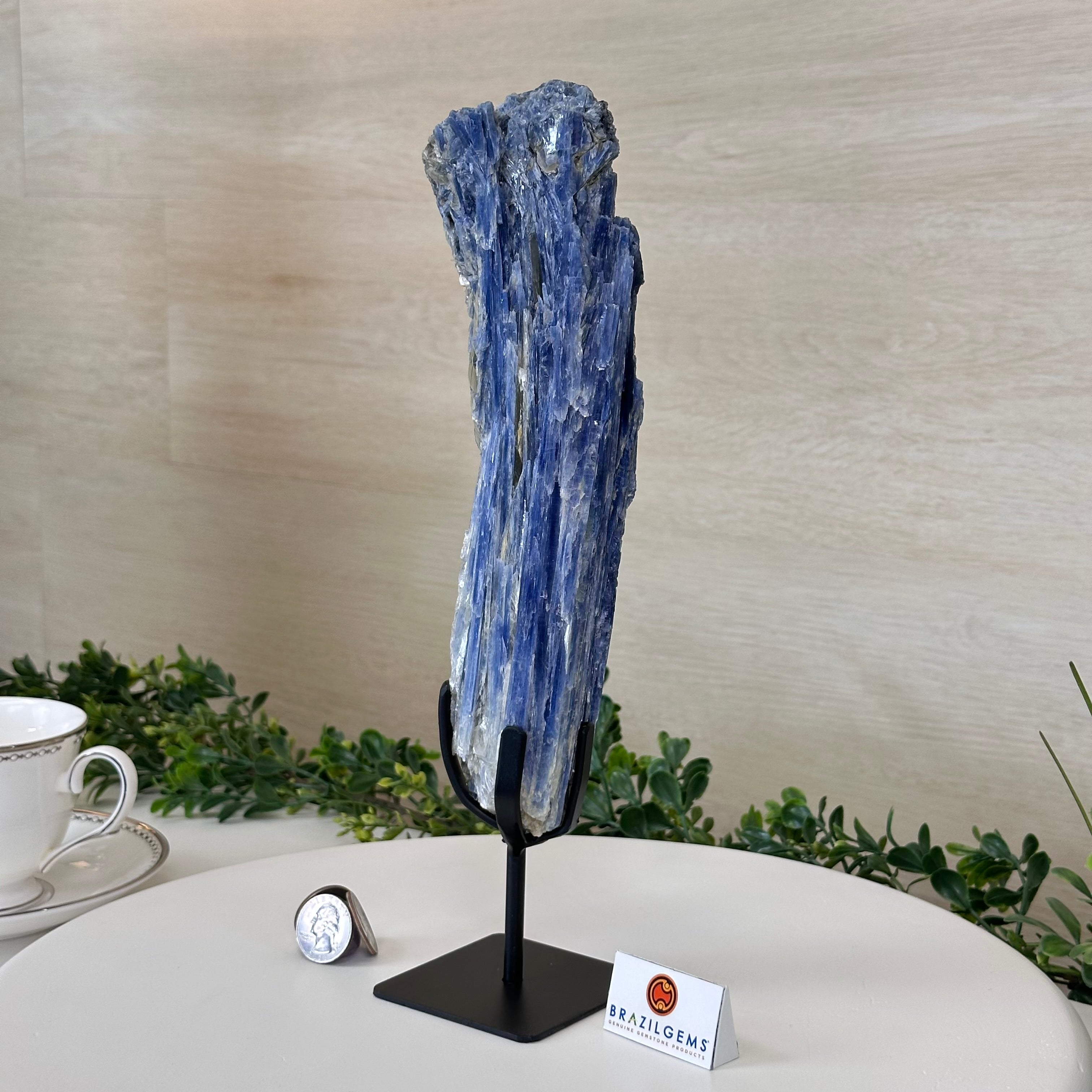 Brazil Gems offers quality Brazilian Kyanite clusters displayed on wood or metal bases. The bright blue colors of this brittle gemstone will accent the decor of your home or office.