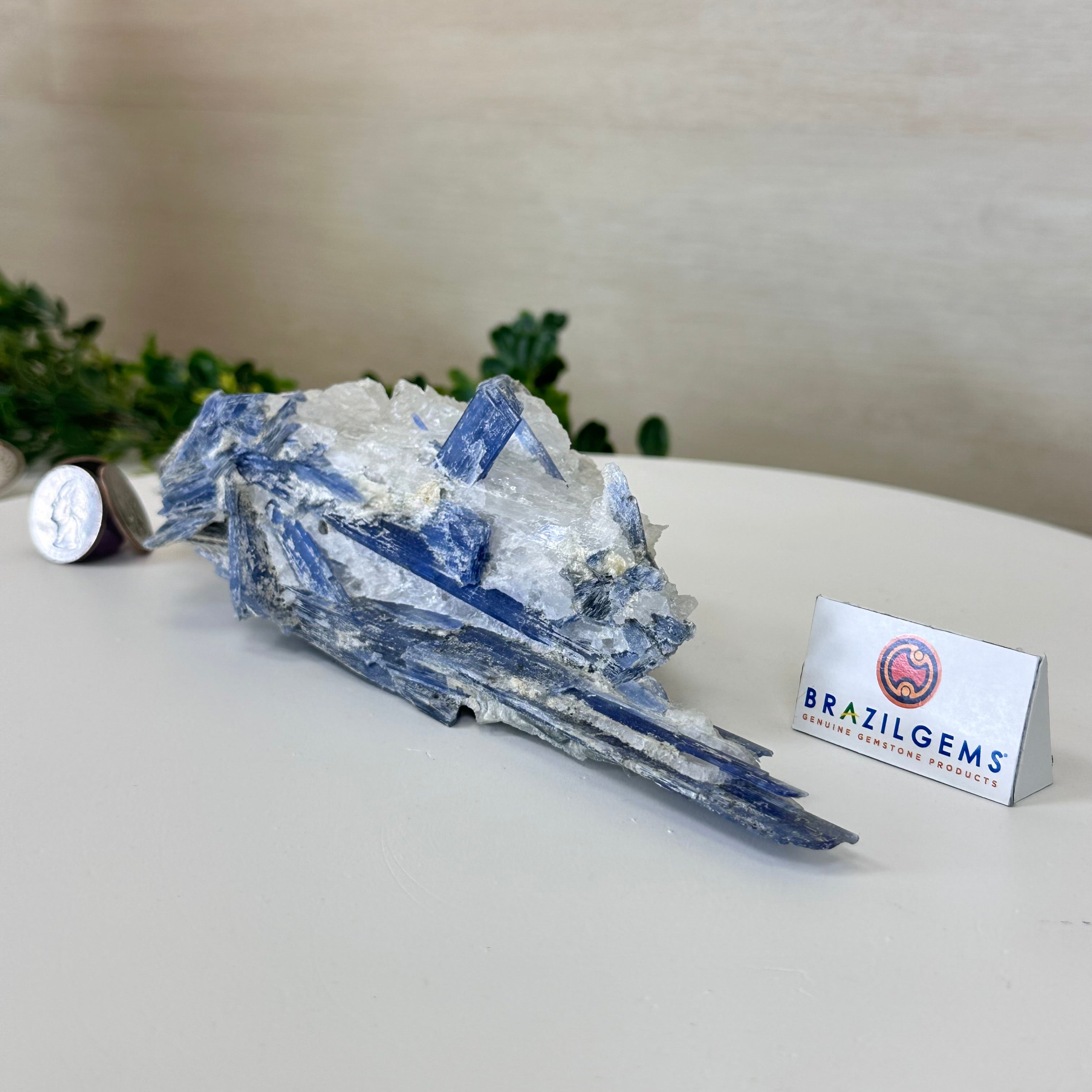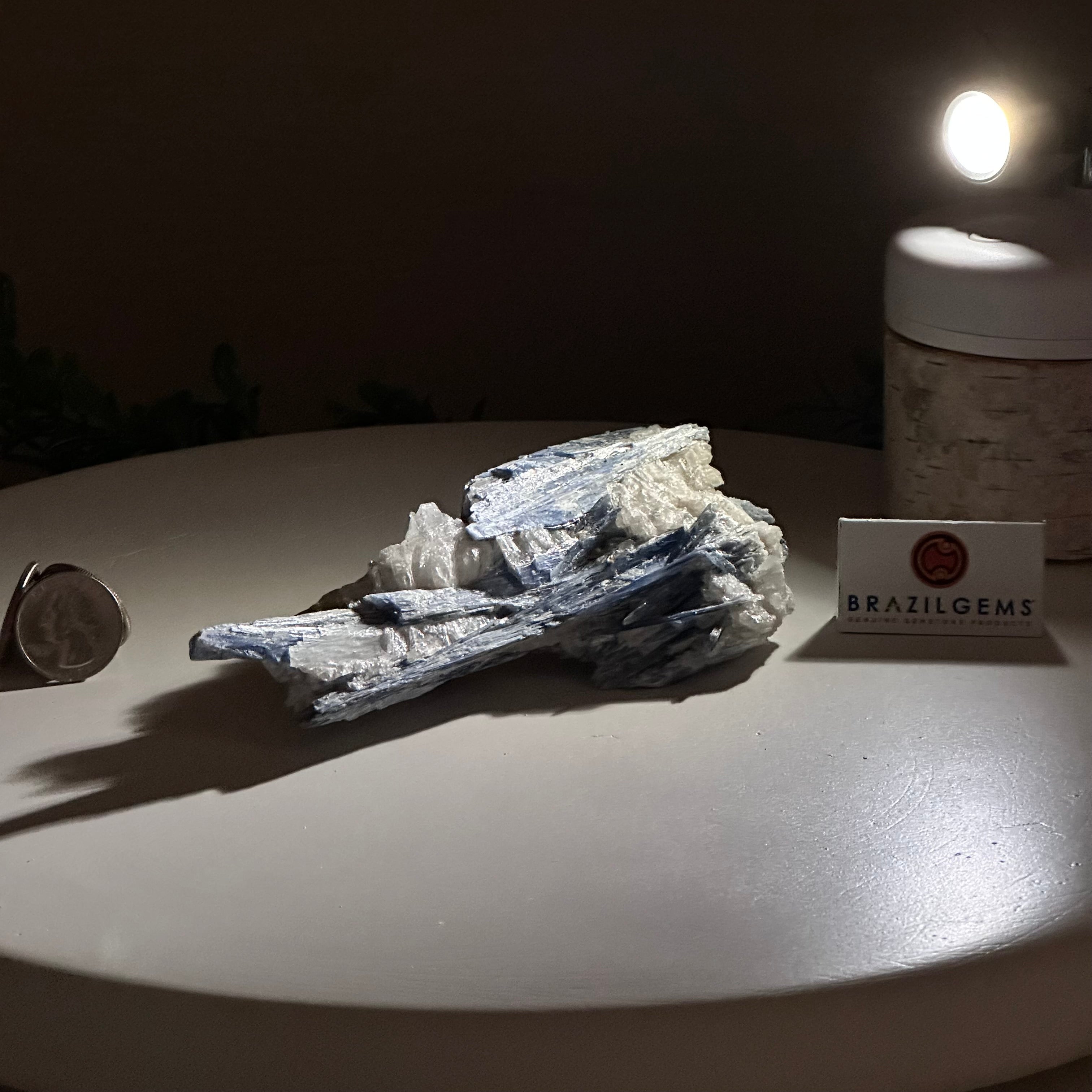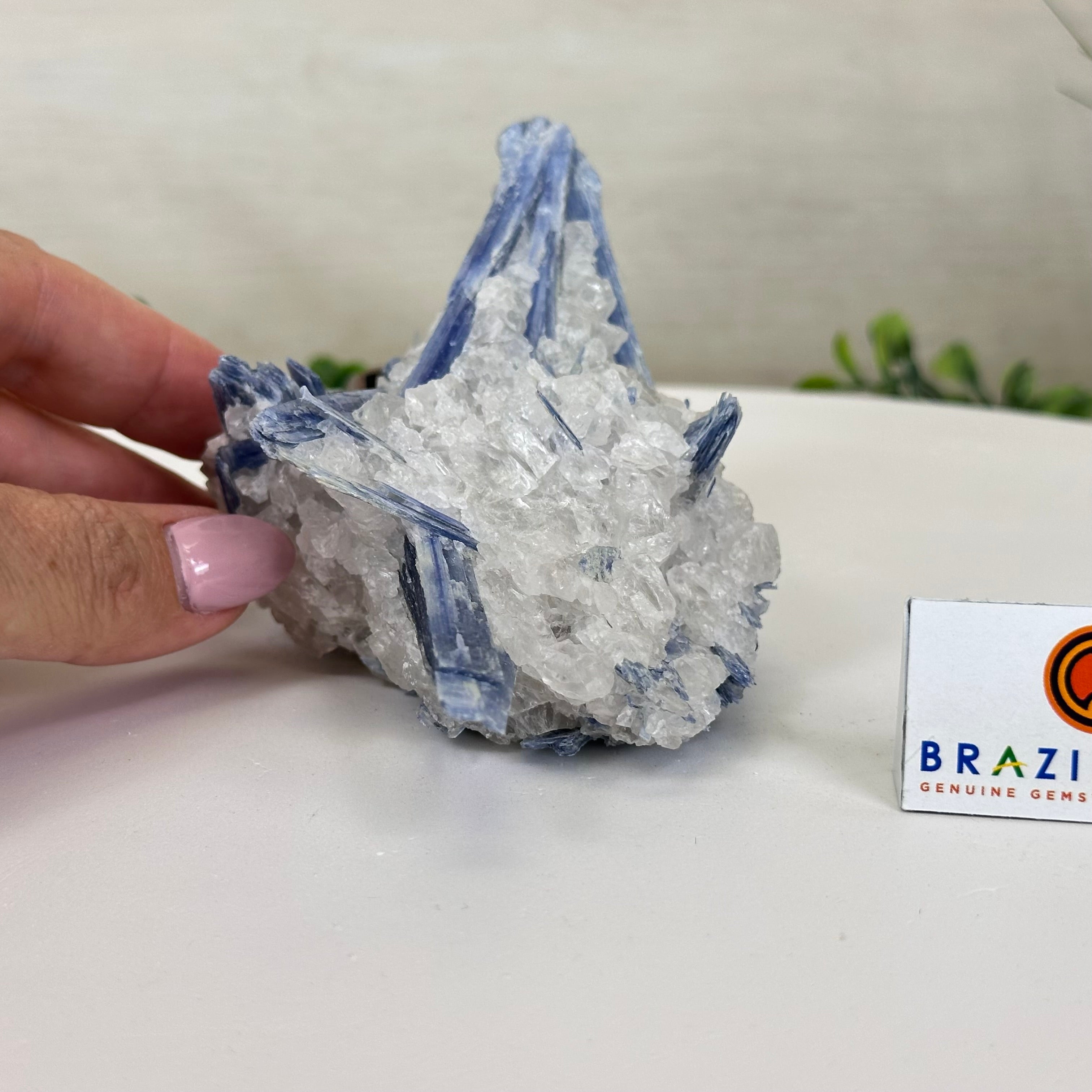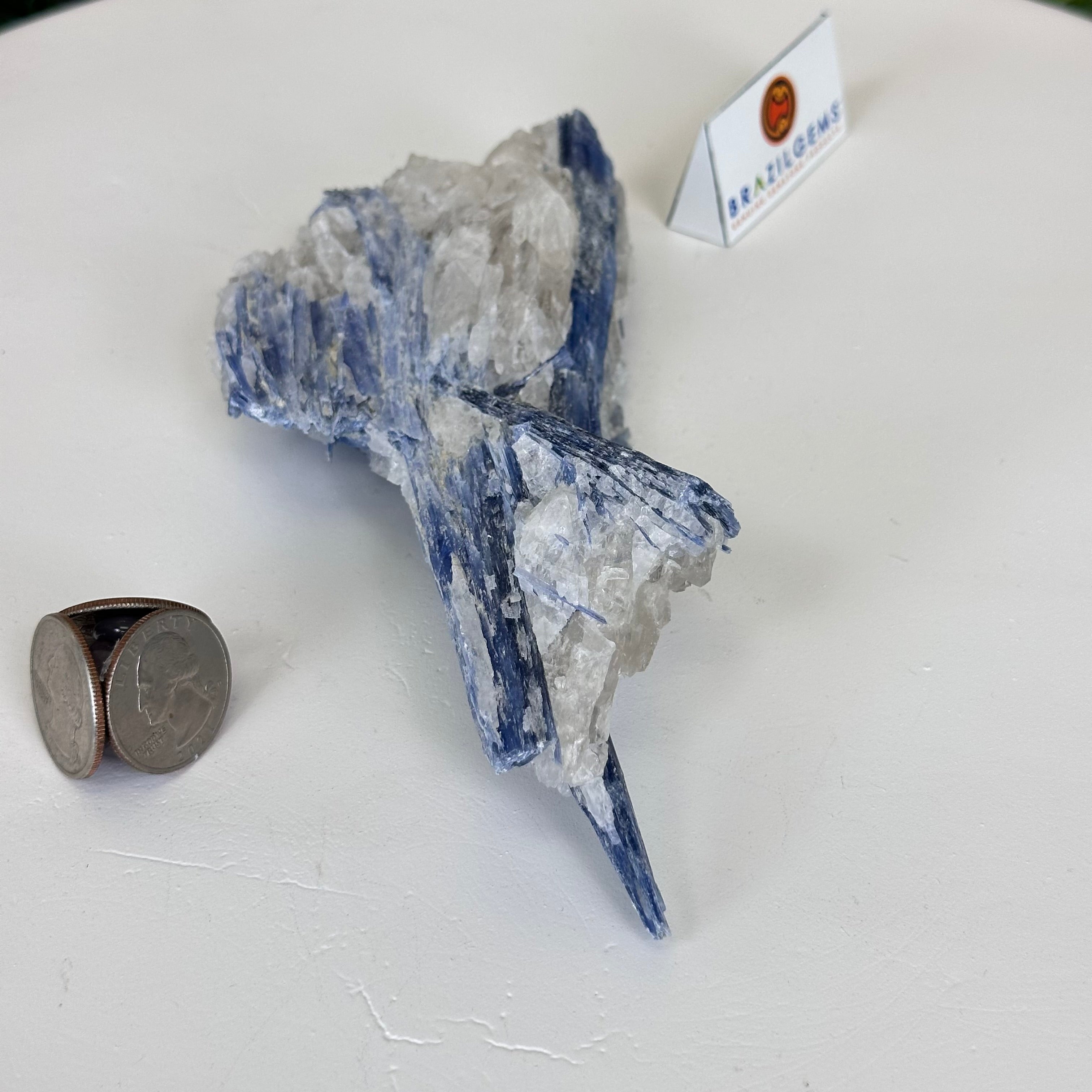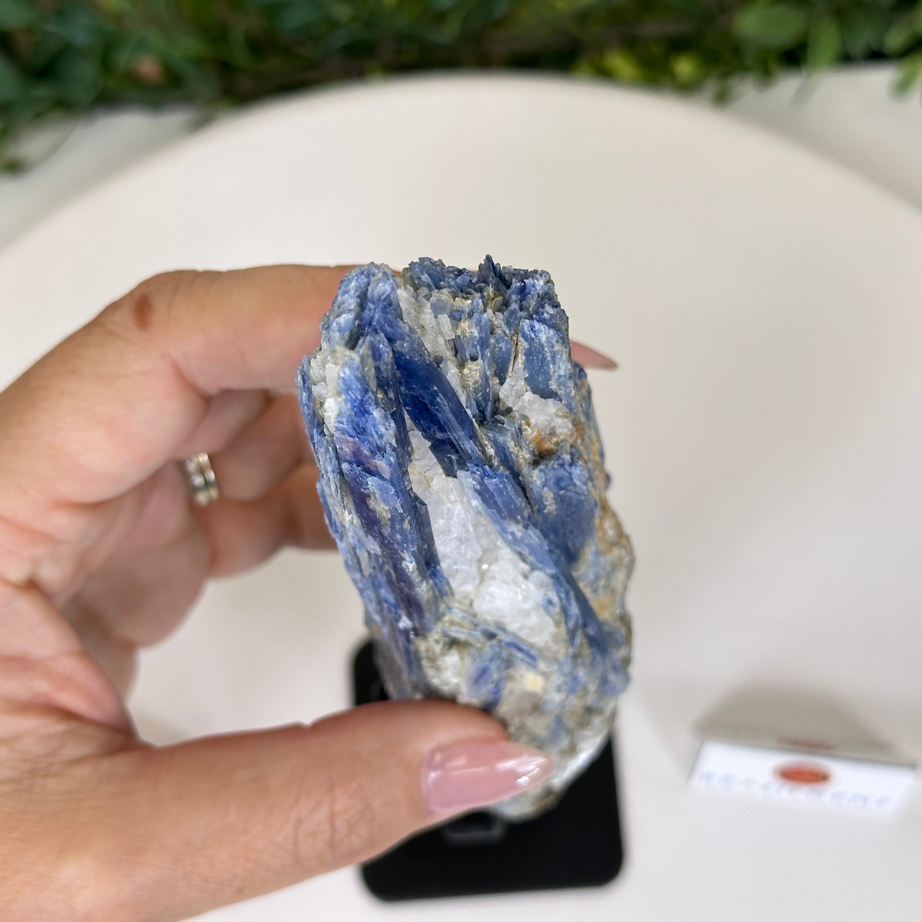 Brazil Gems offers quality Brazilian Kyanite clusters displayed on wood or metal bases. The bright blue colors of this brittle gemstone will accent the decor of your home or office.