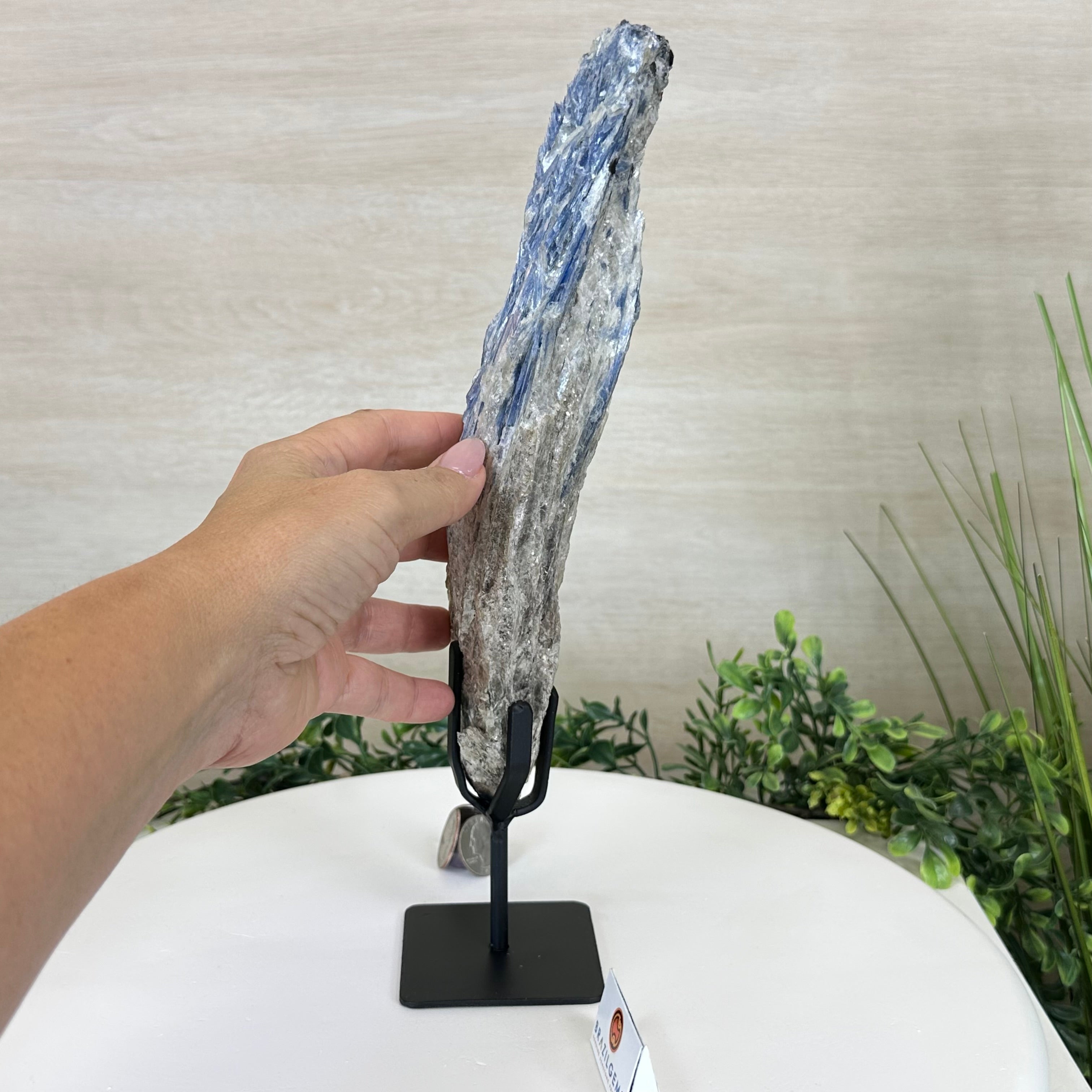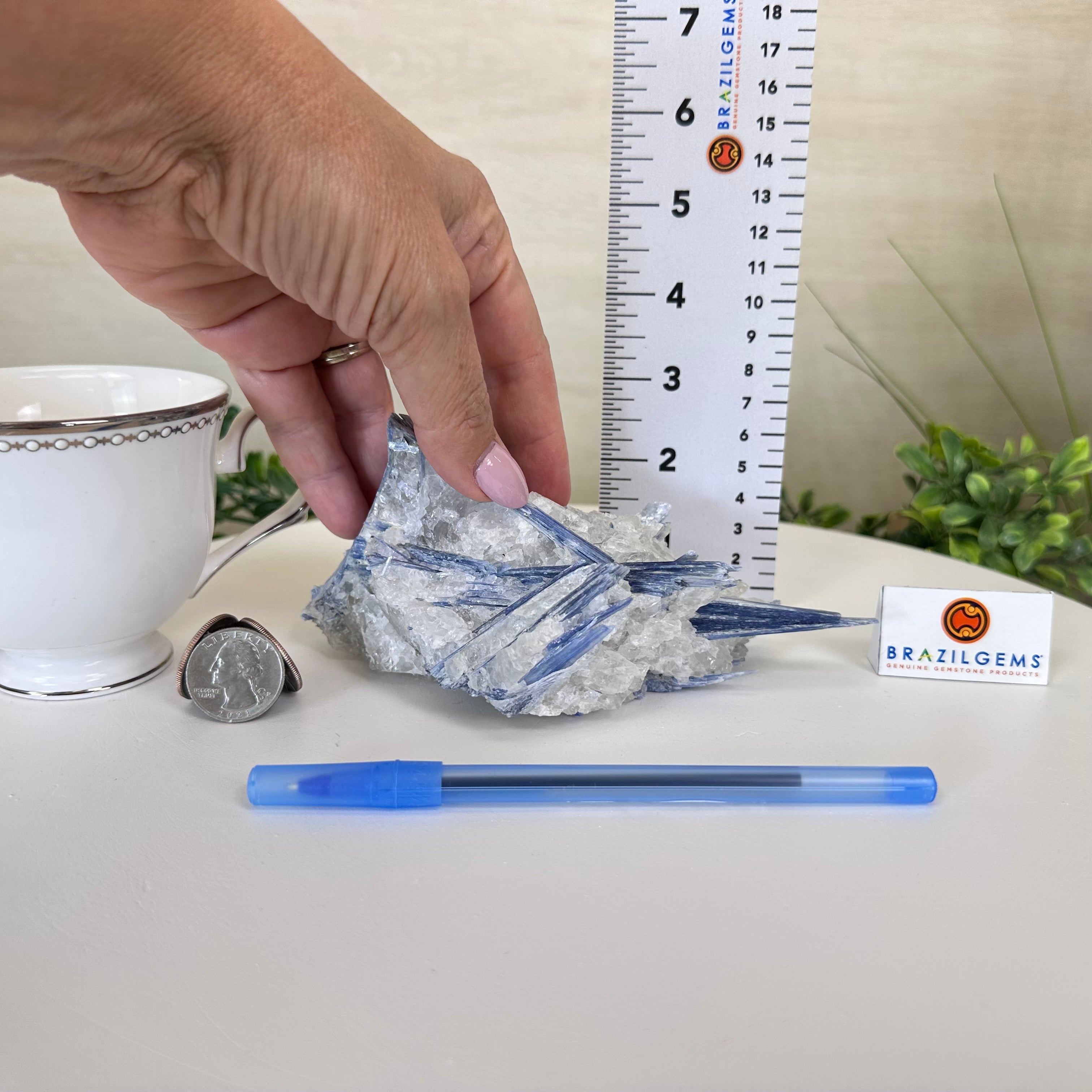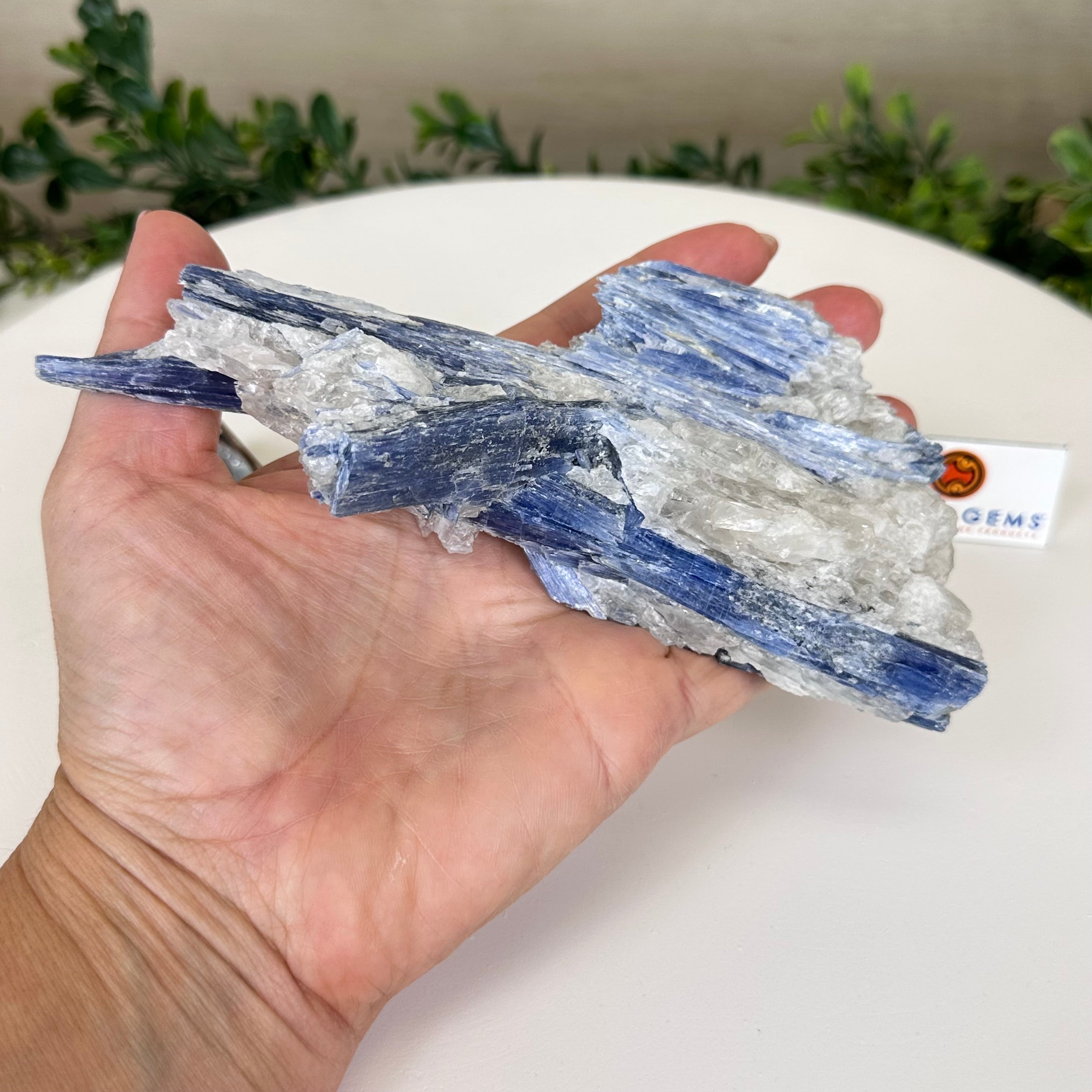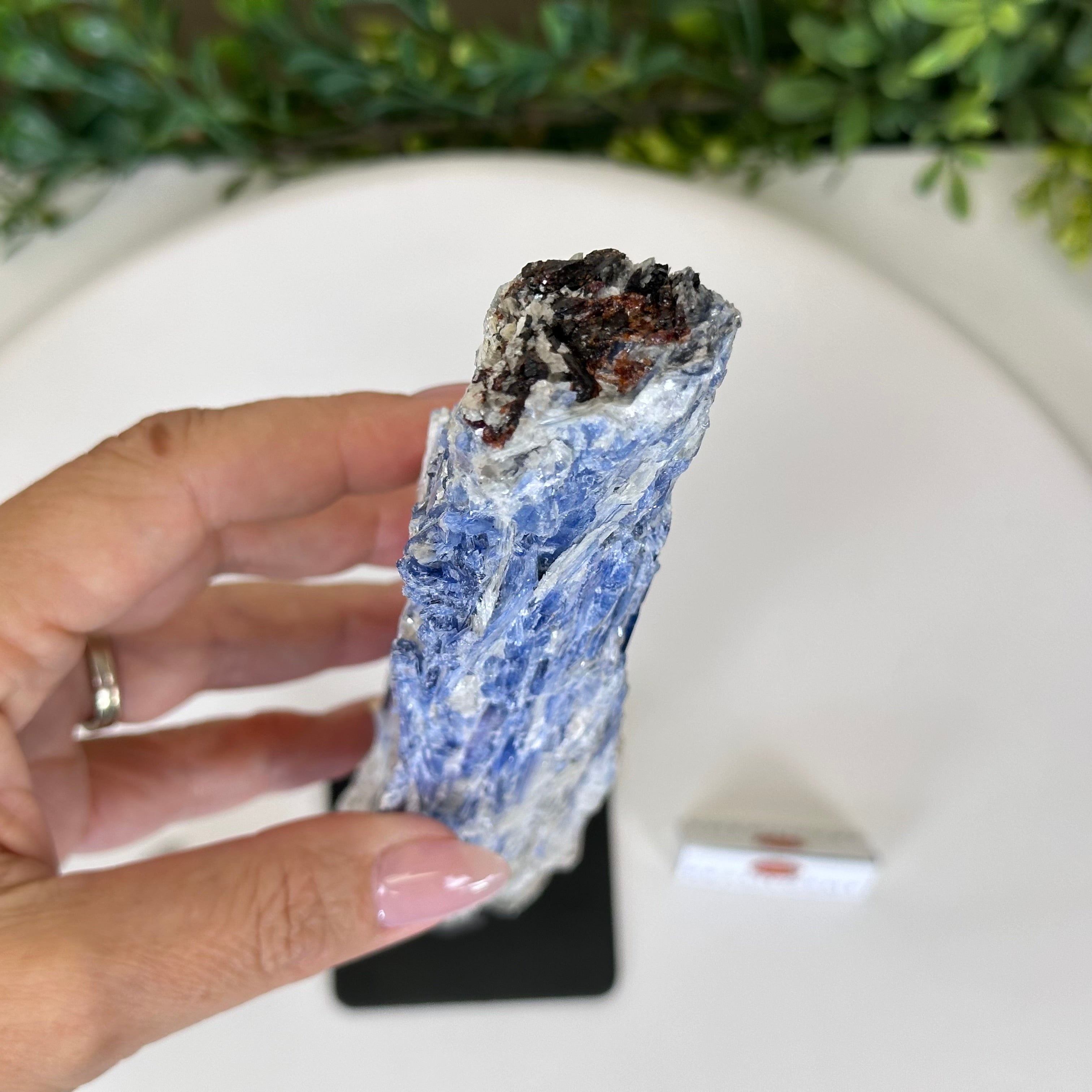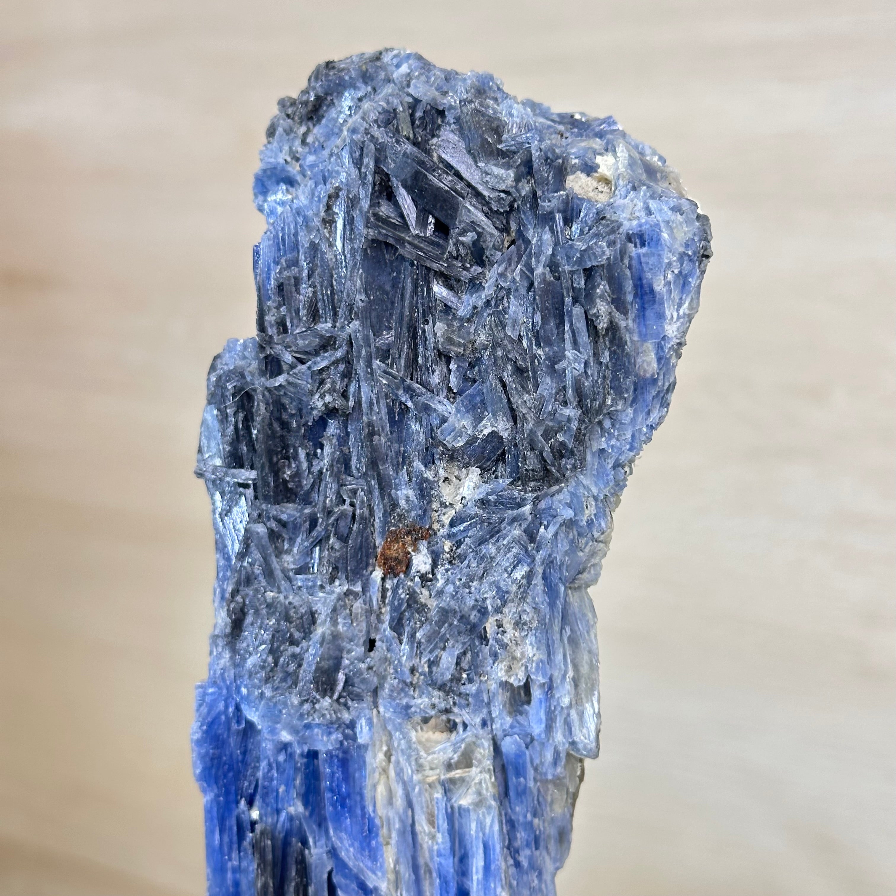 Brazil Gems offers quality Brazilian Kyanite clusters displayed on wood or metal bases. The bright blue colors of this brittle gemstone will accent the decor of your home or office.