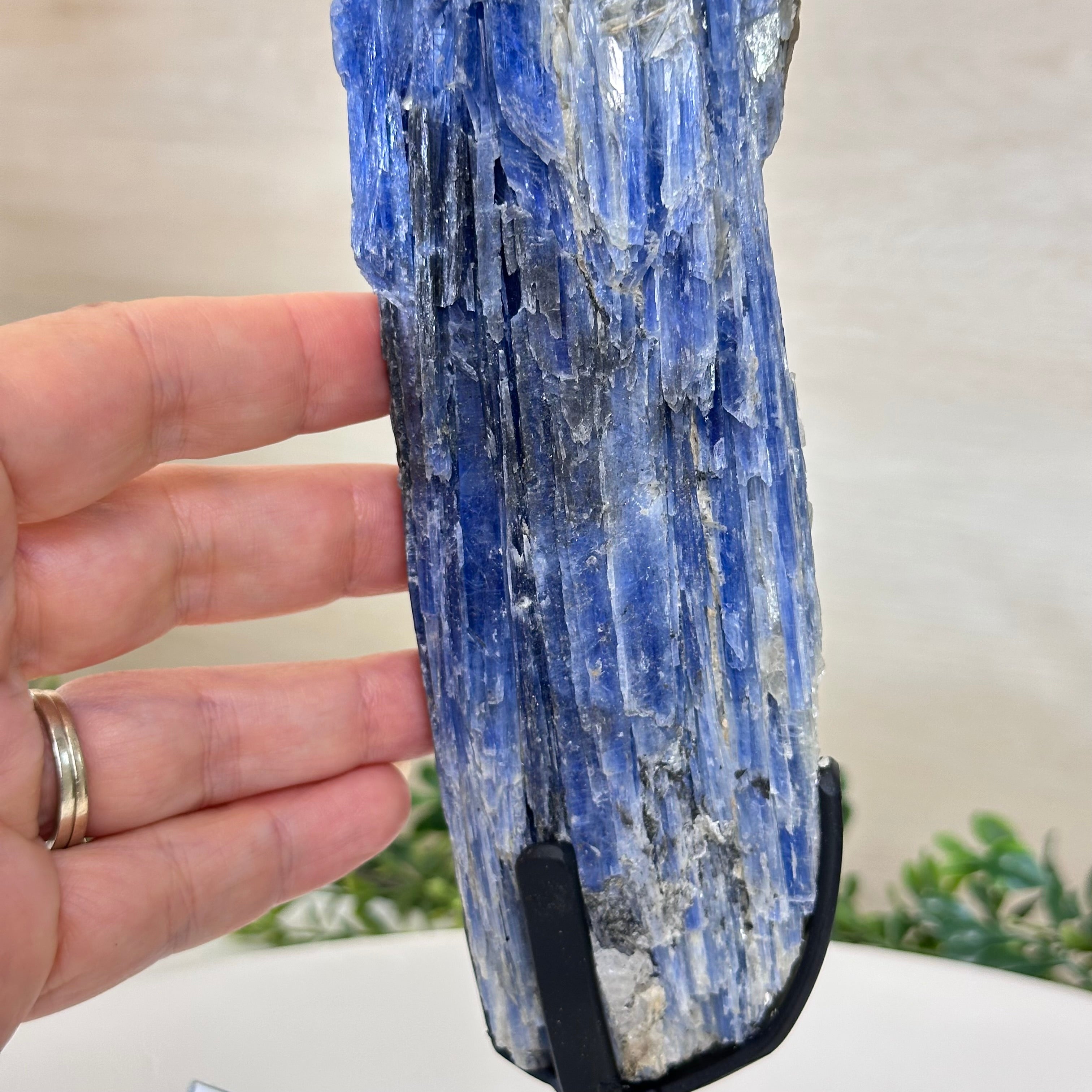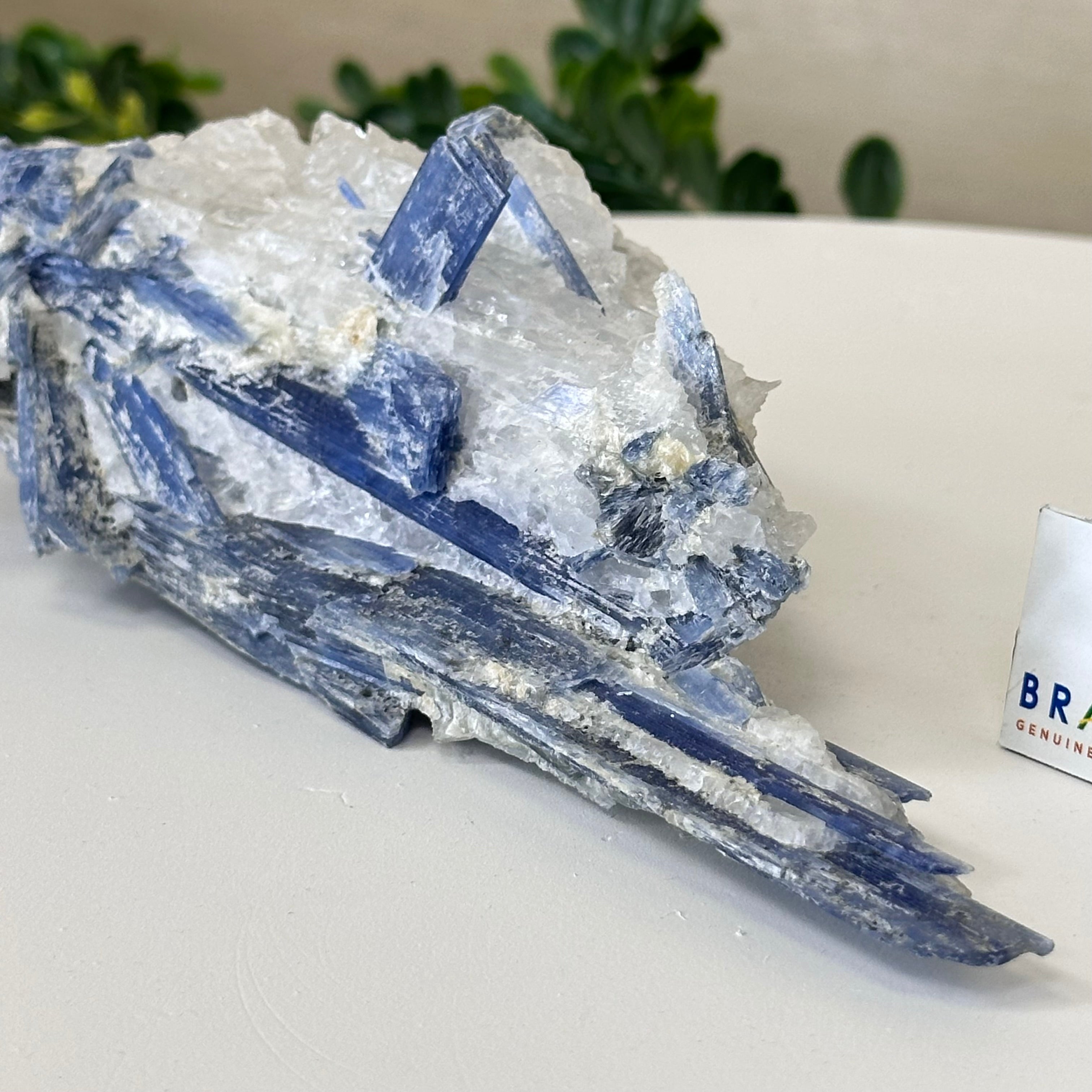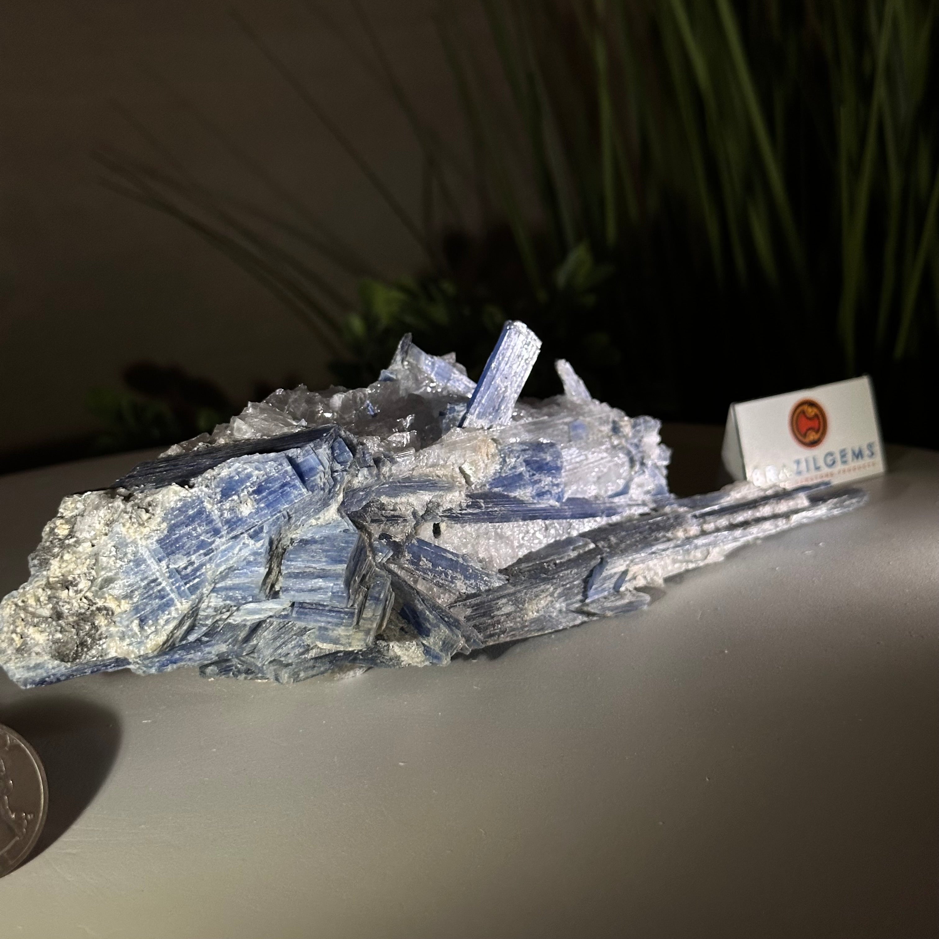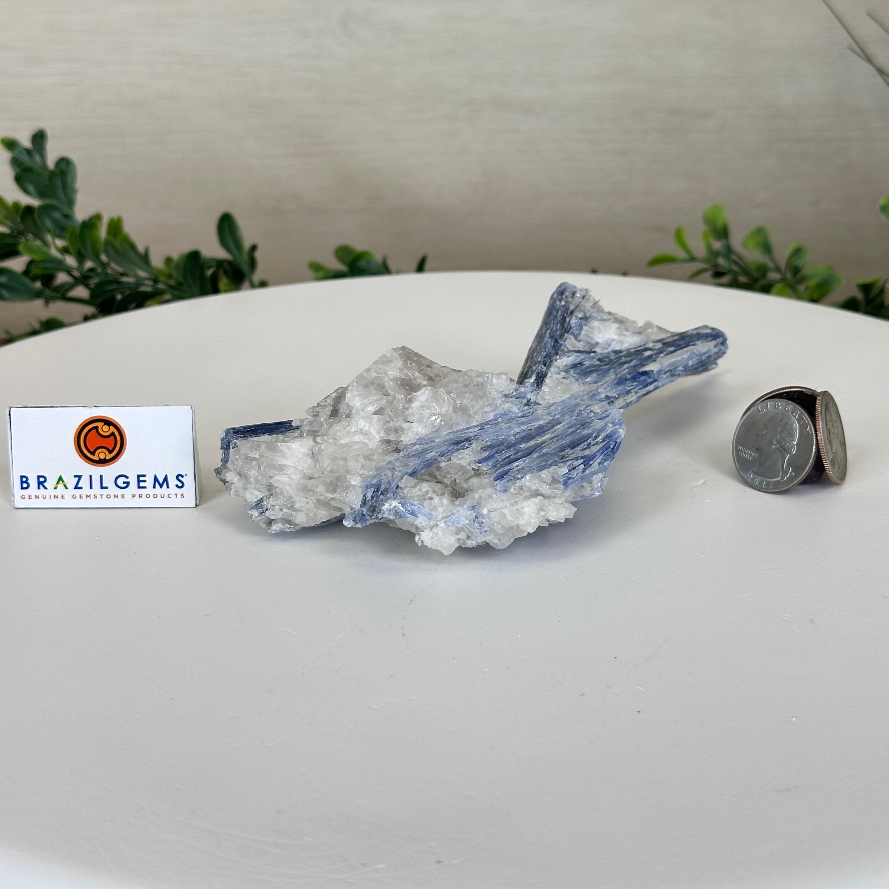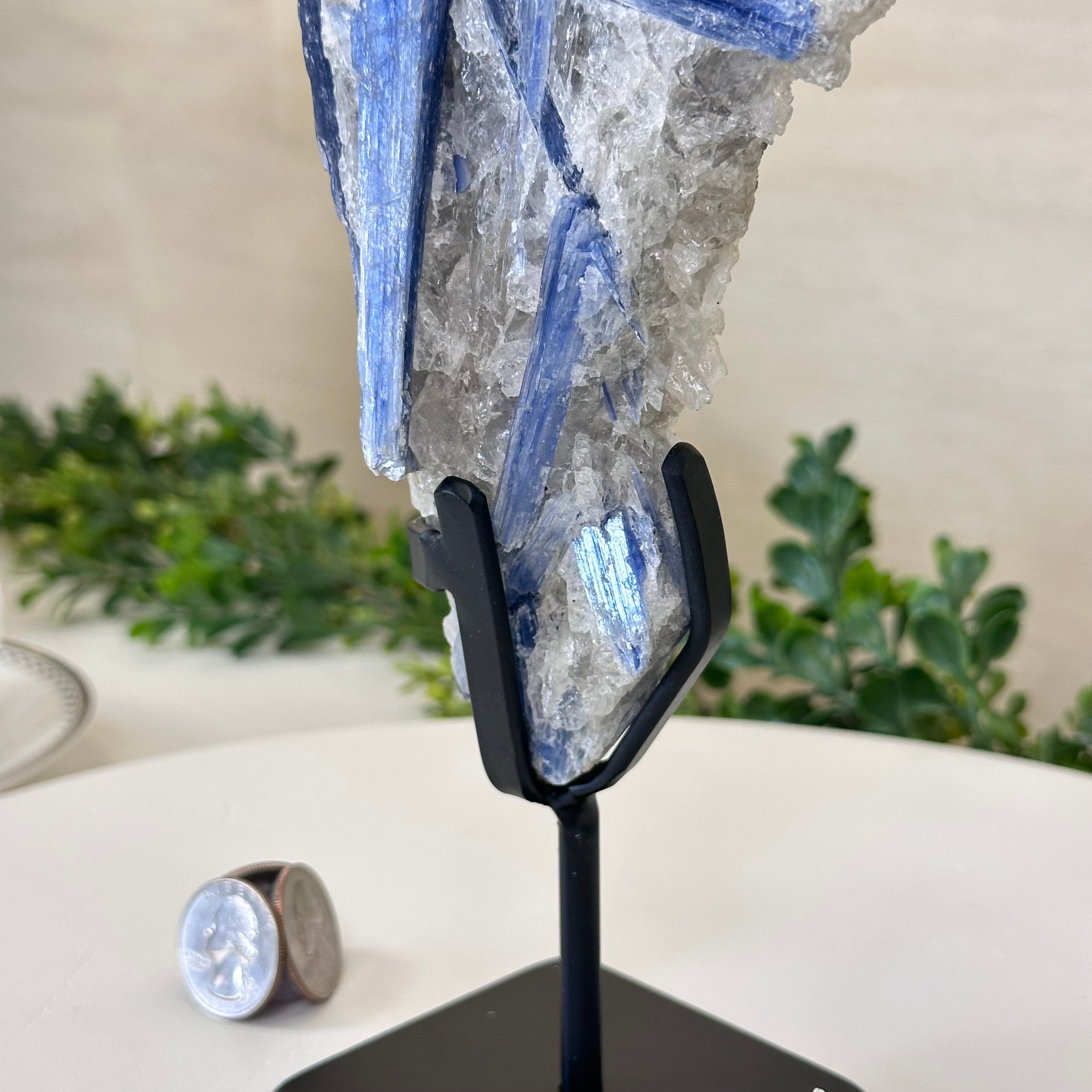 Brazil Gems offers quality Brazilian Kyanite clusters displayed on wood or metal bases. The bright blue colors of this brittle gemstone will accent the decor of your home or office.