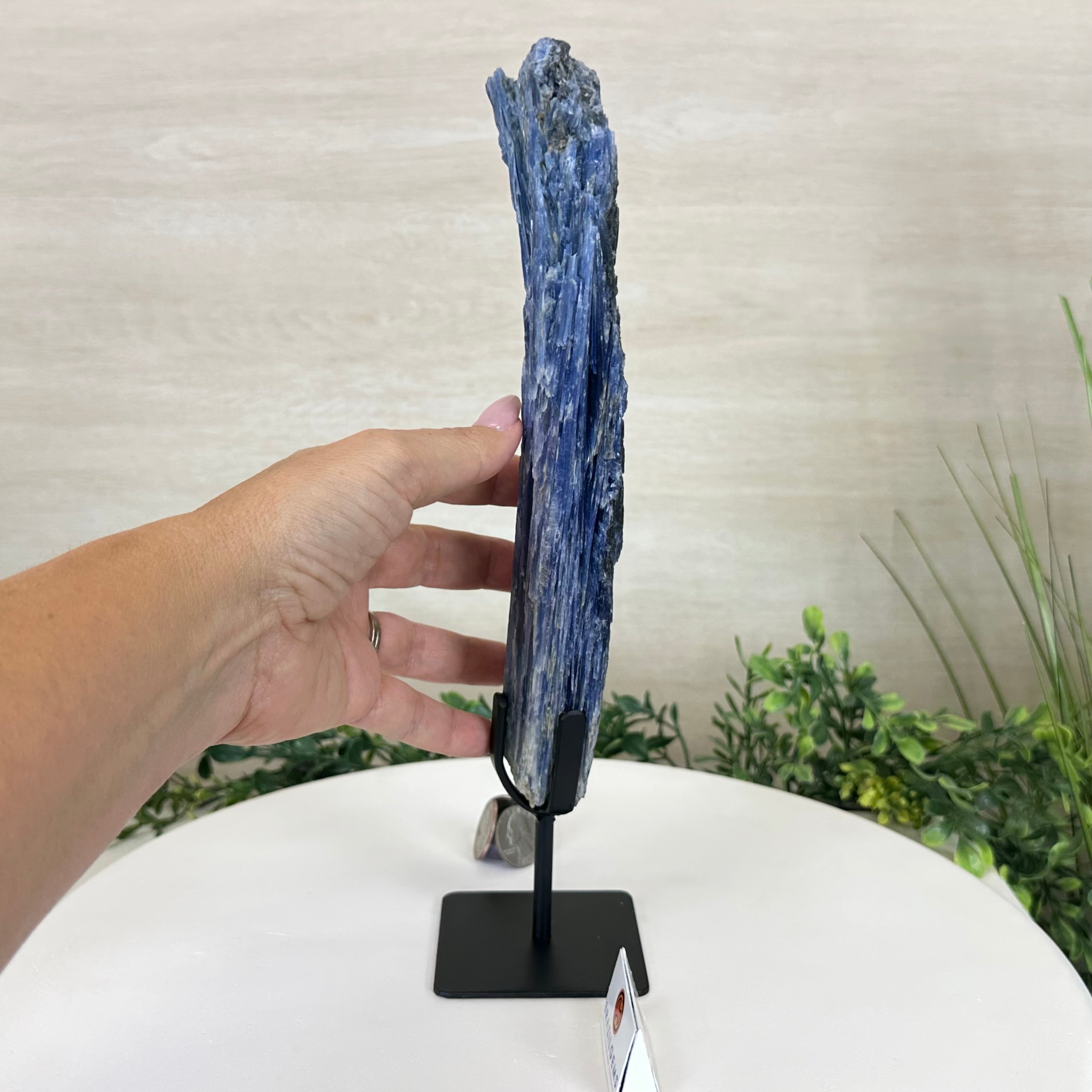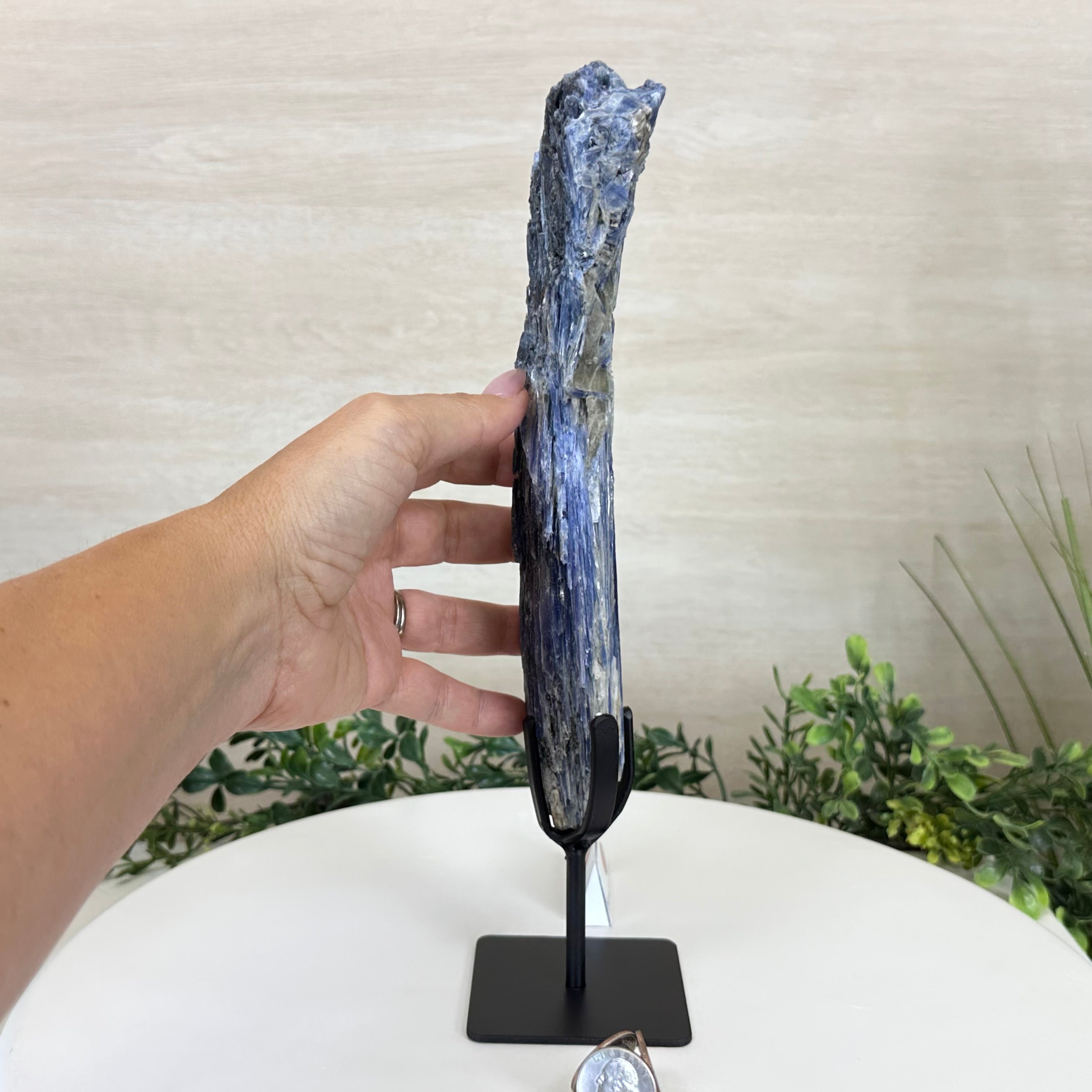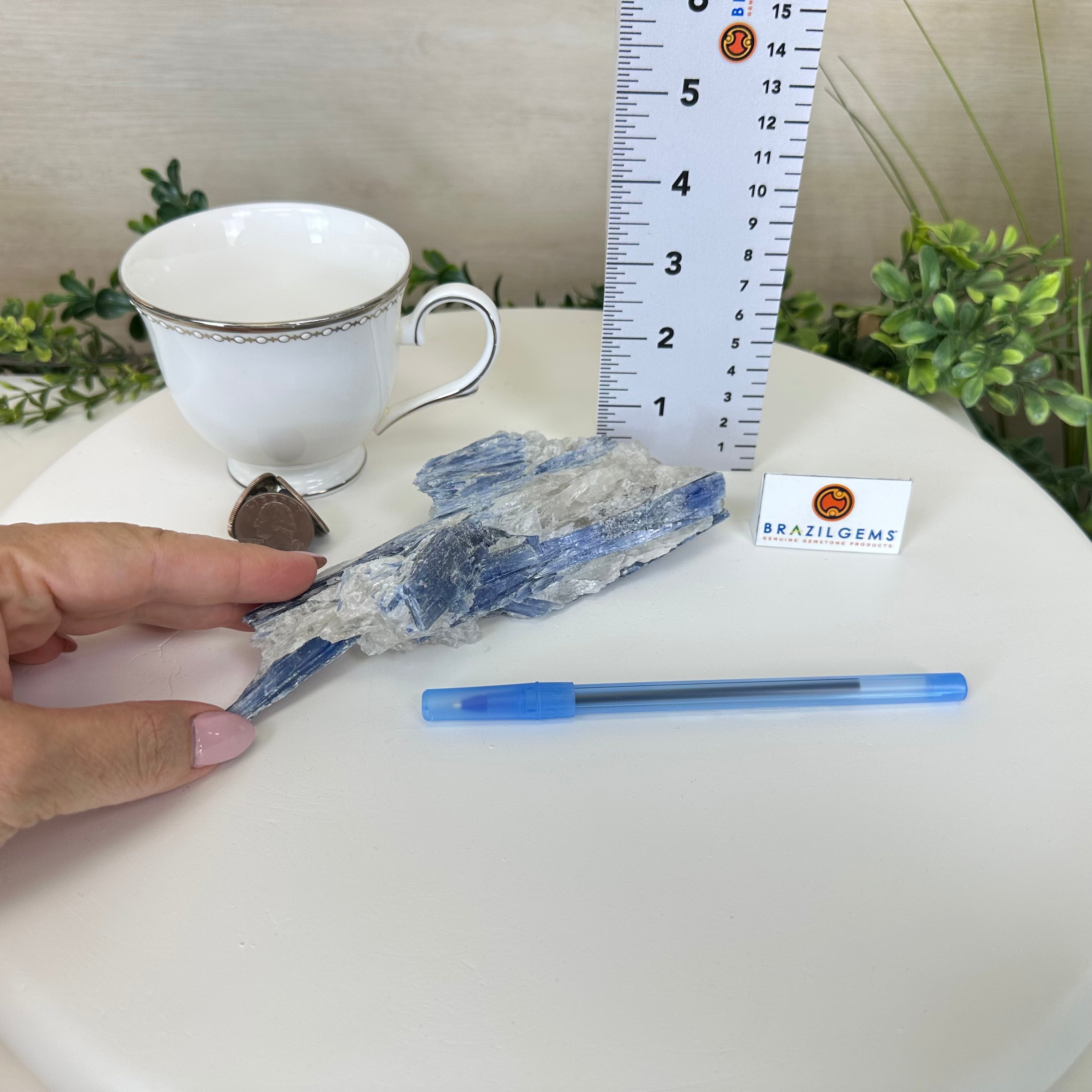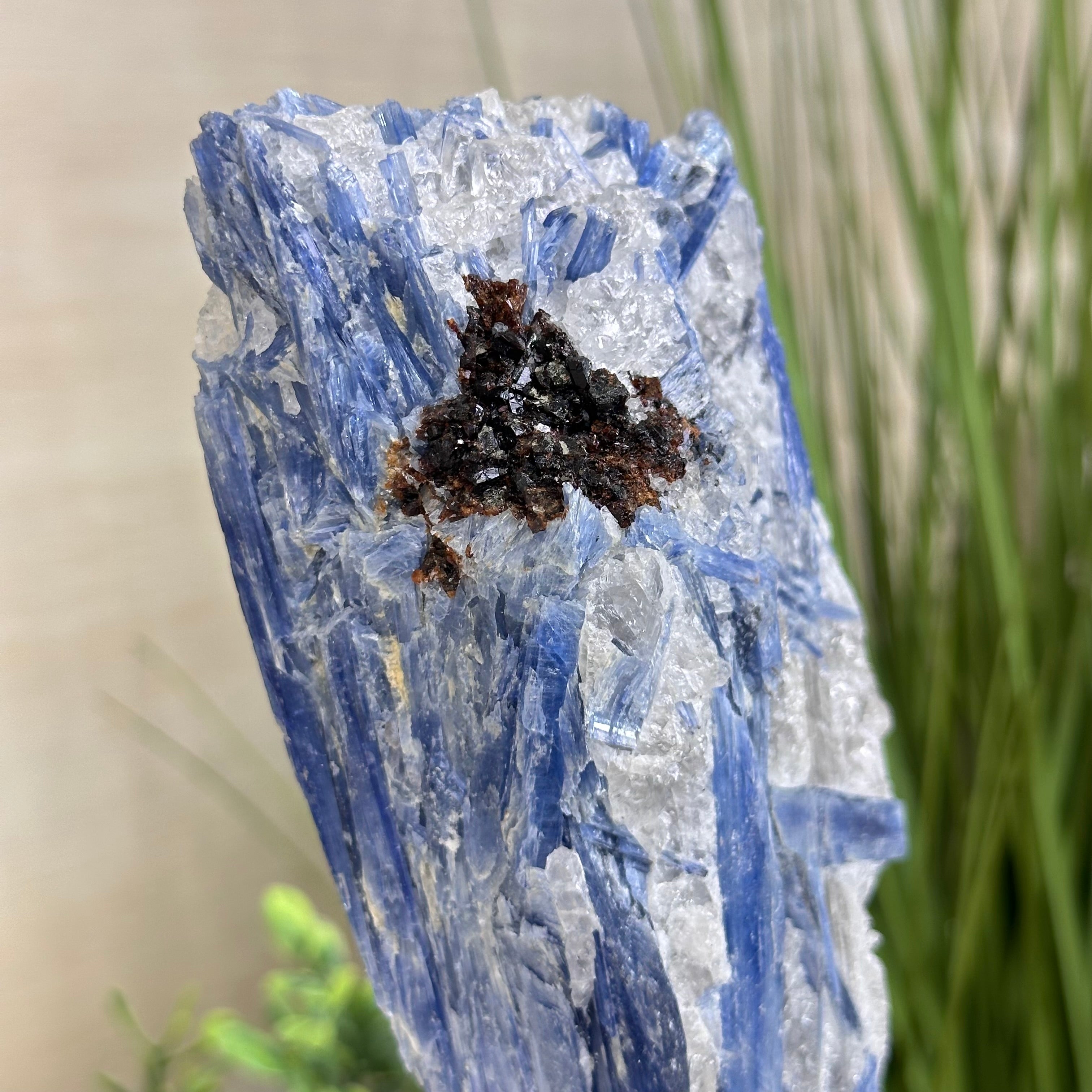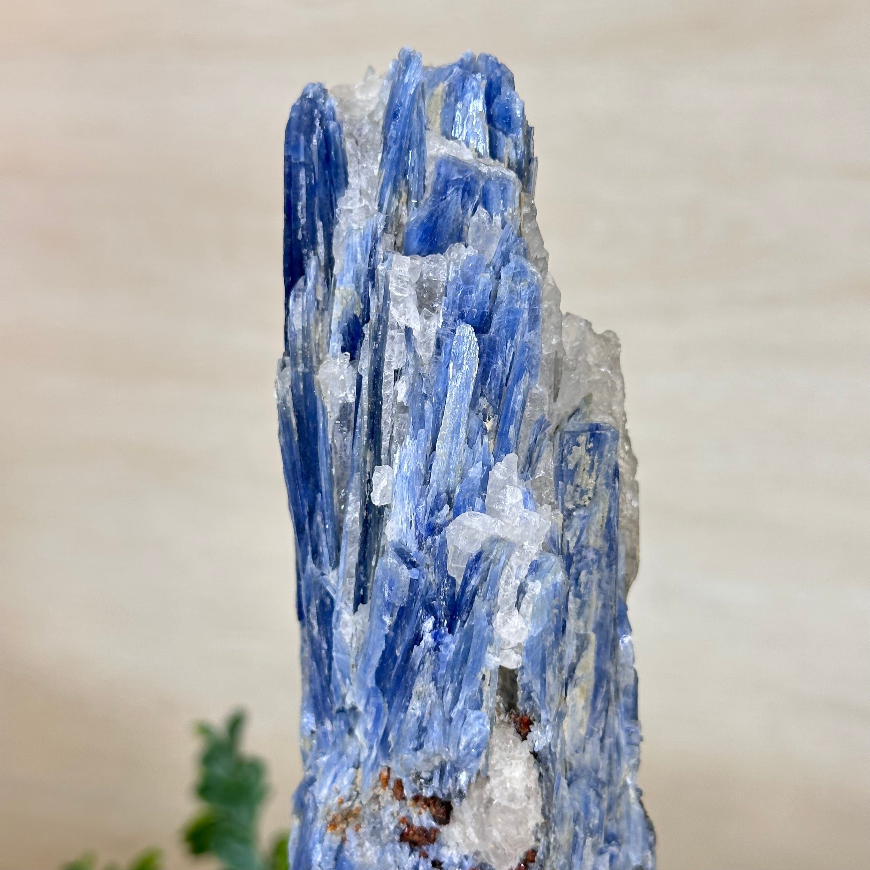 Brazil Gems offers quality Brazilian Kyanite clusters displayed on wood or metal bases. The bright blue colors of this brittle gemstone will accent the decor of your home or office.