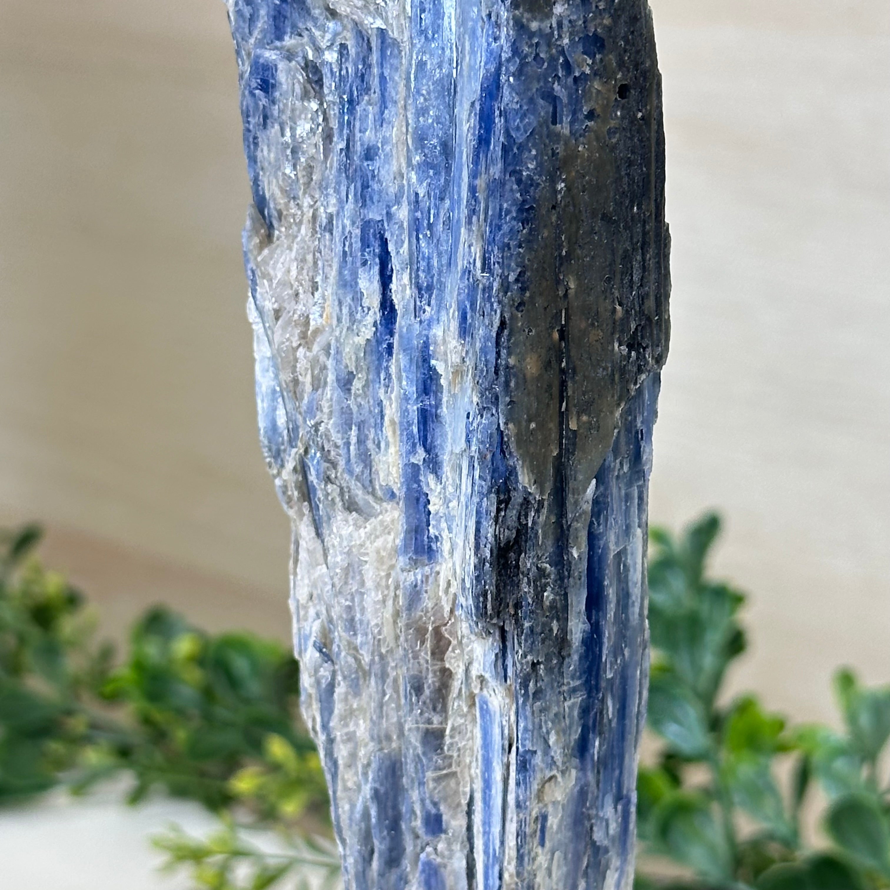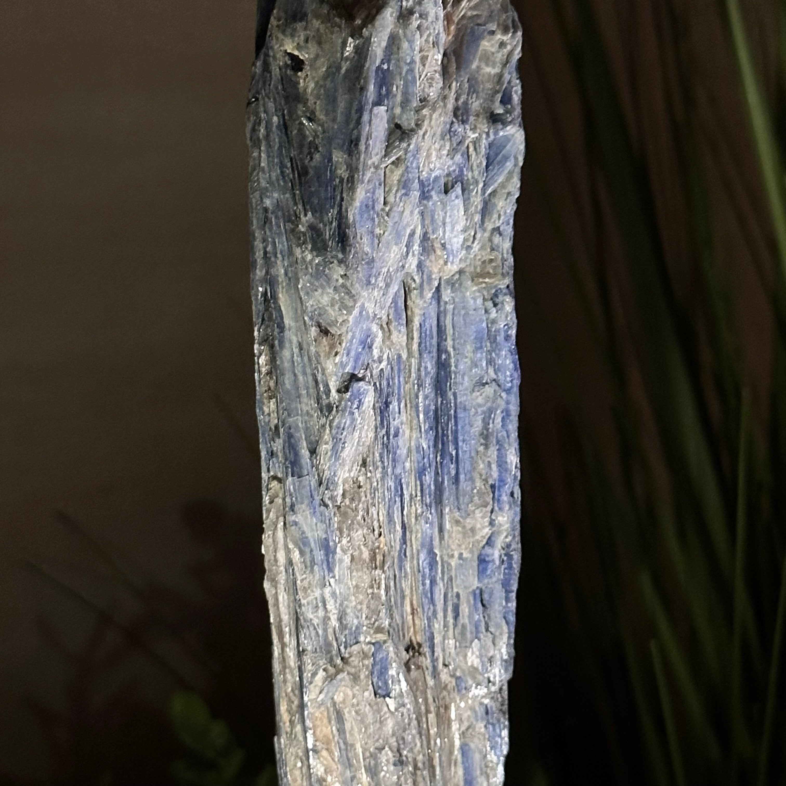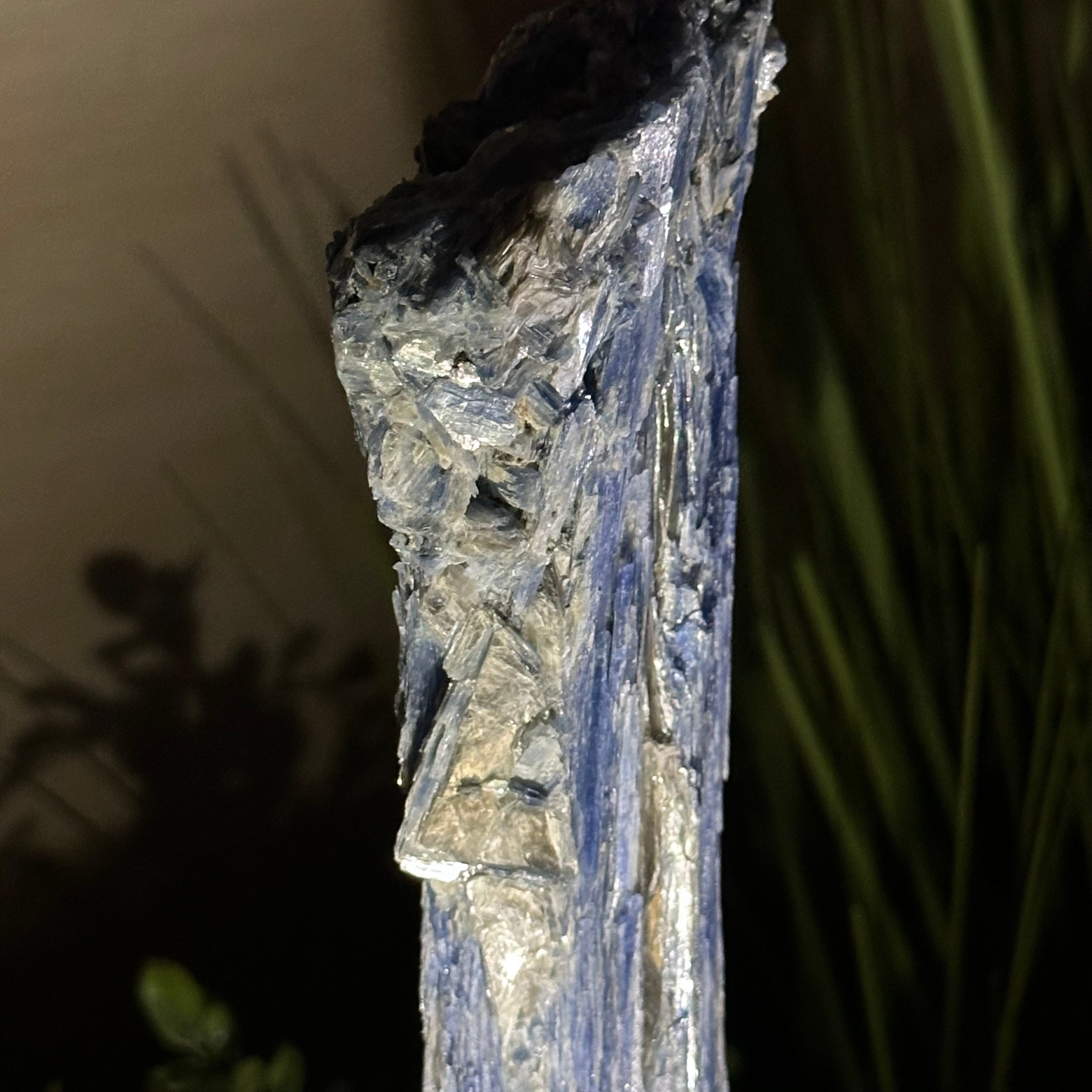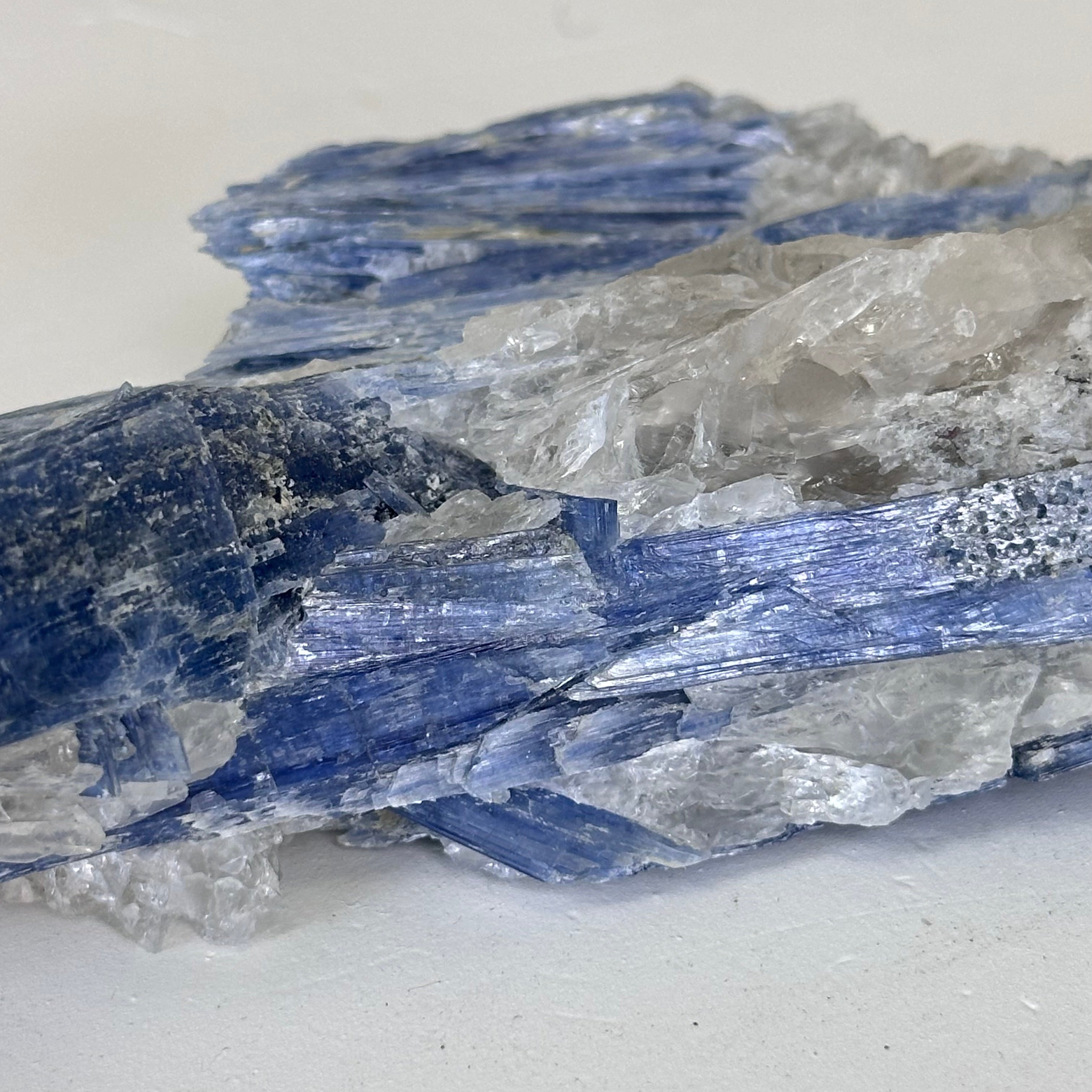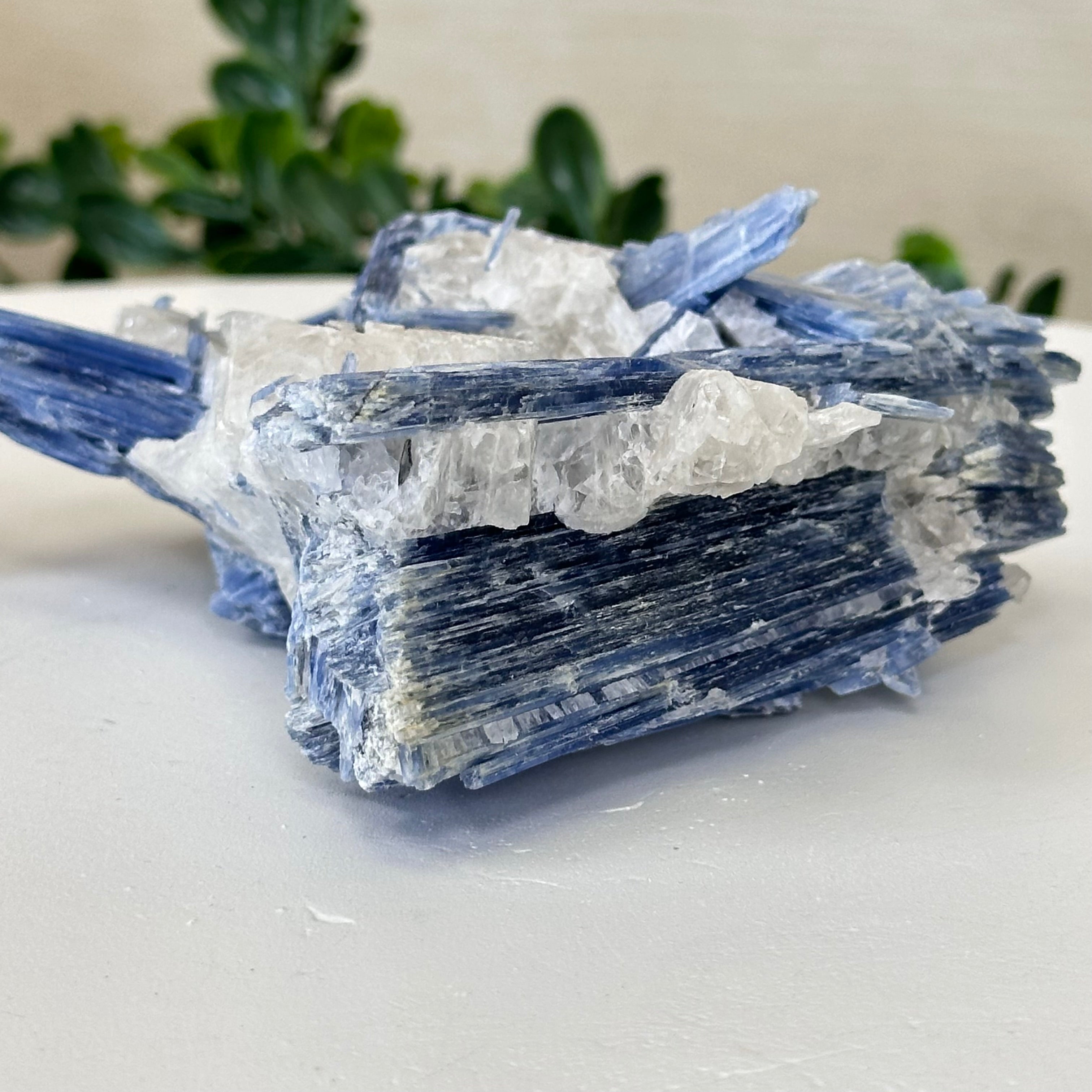 Believers in tantra value and venerate kyanite with the belief it can align chakras, particularly the throat chakra, and encourage psychic abilities. As a focus for meditation, many associate it with high vibrations and repelling negative energy, creating flow through your body and mind. The river of energy that flows through kyanite may reduce inflammation and aid in communication. Kyanite, often present in quartz, is an aluminosilicate mineral, which gives it its shiny, metallic look. Its fibrous characteristics can make it brittle and flaky to the touch.