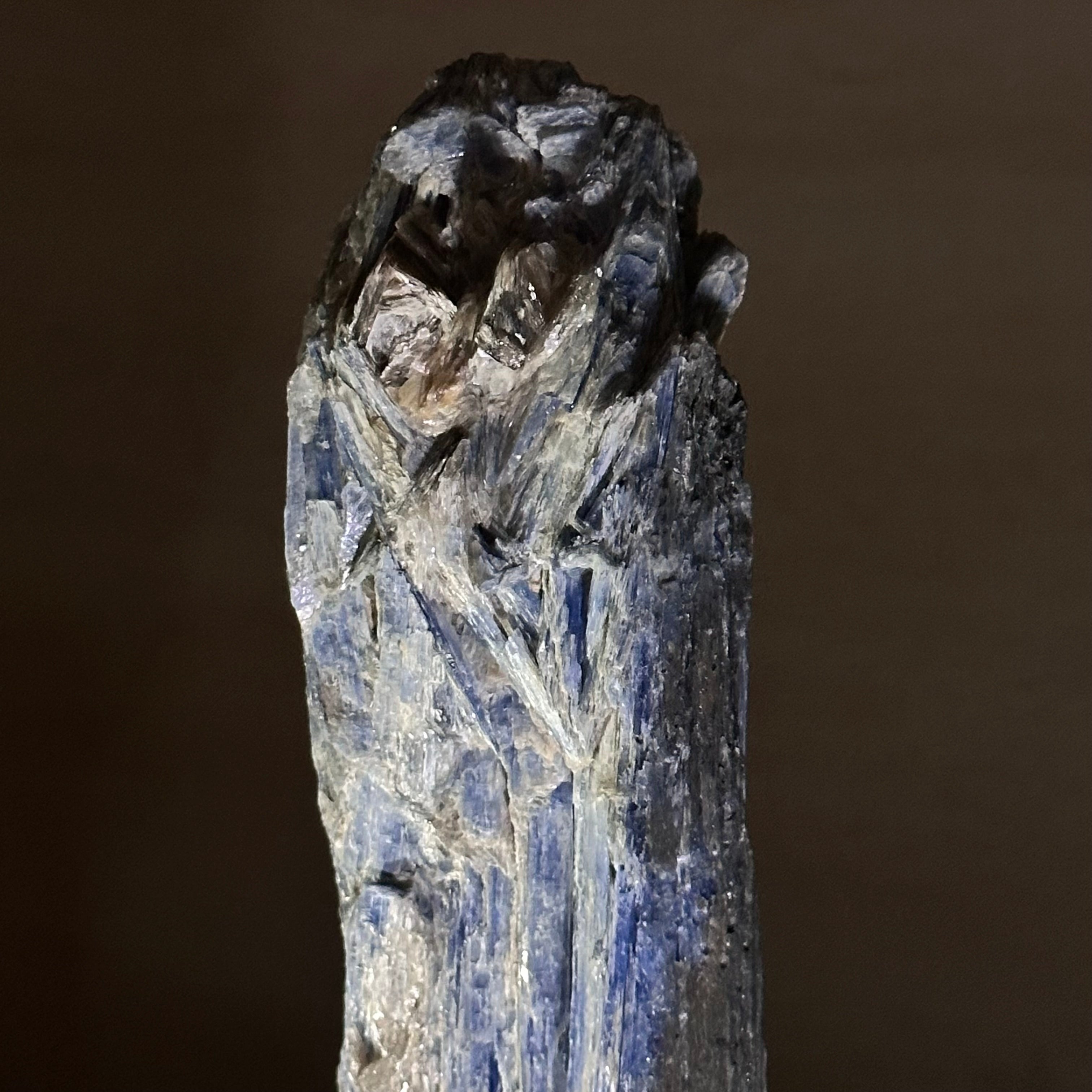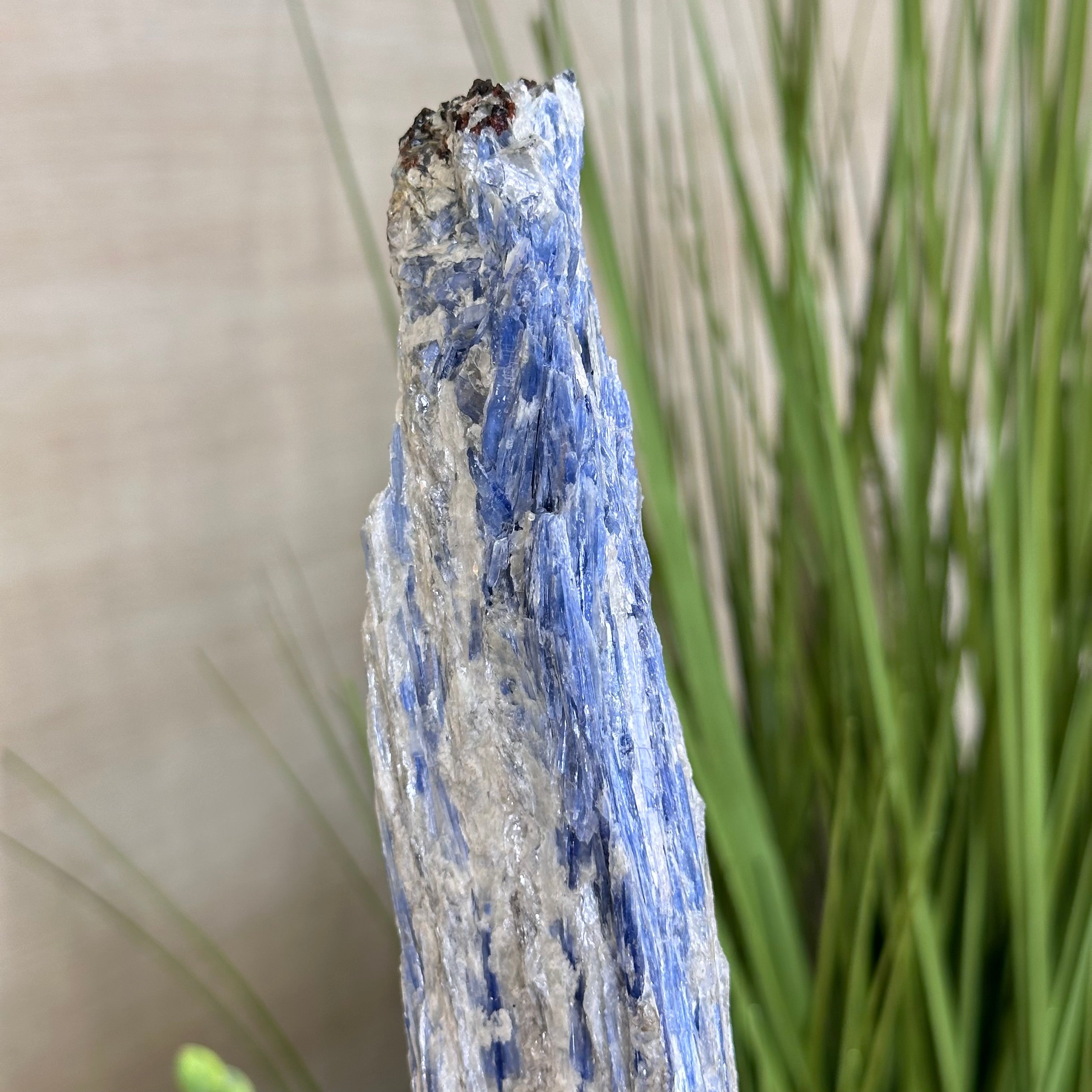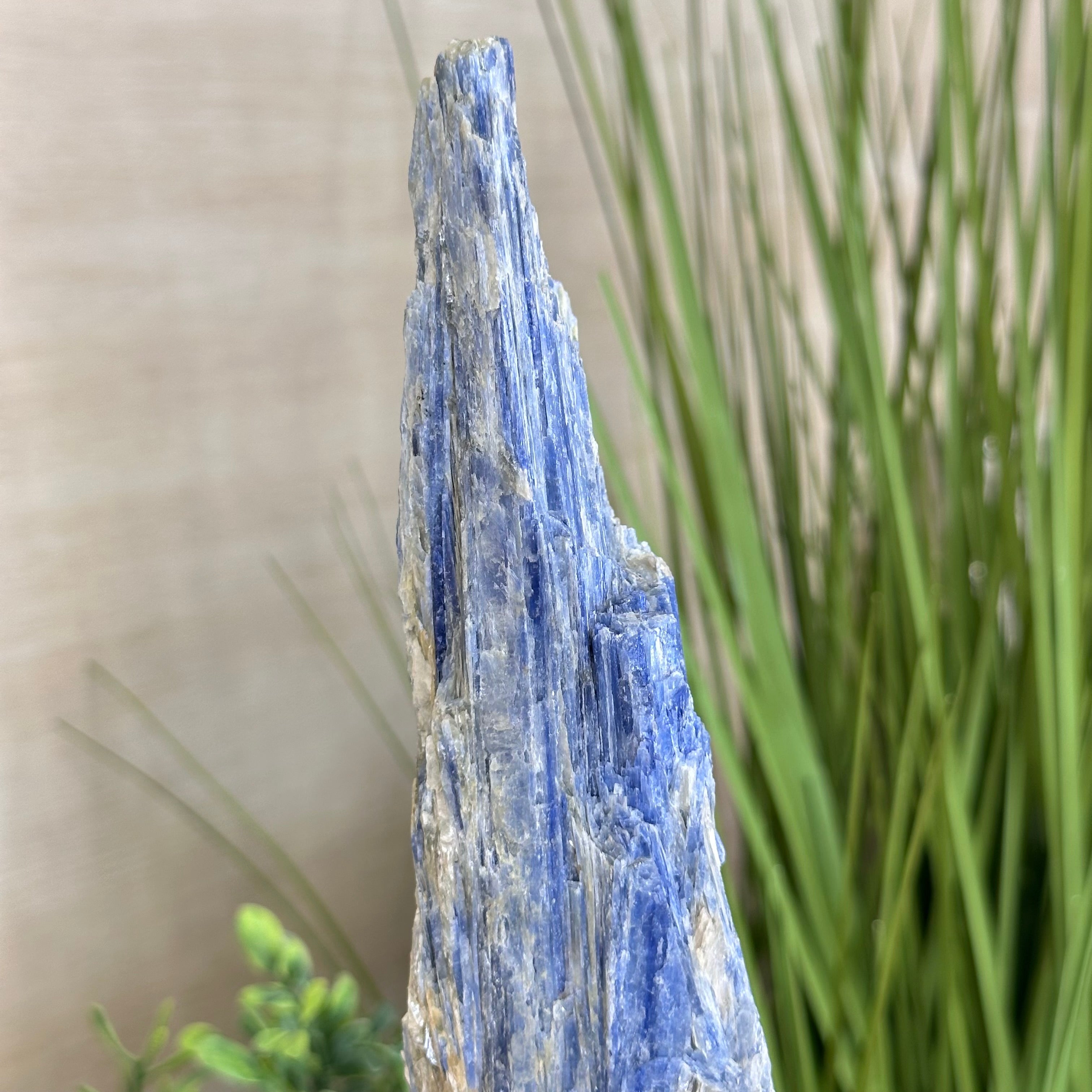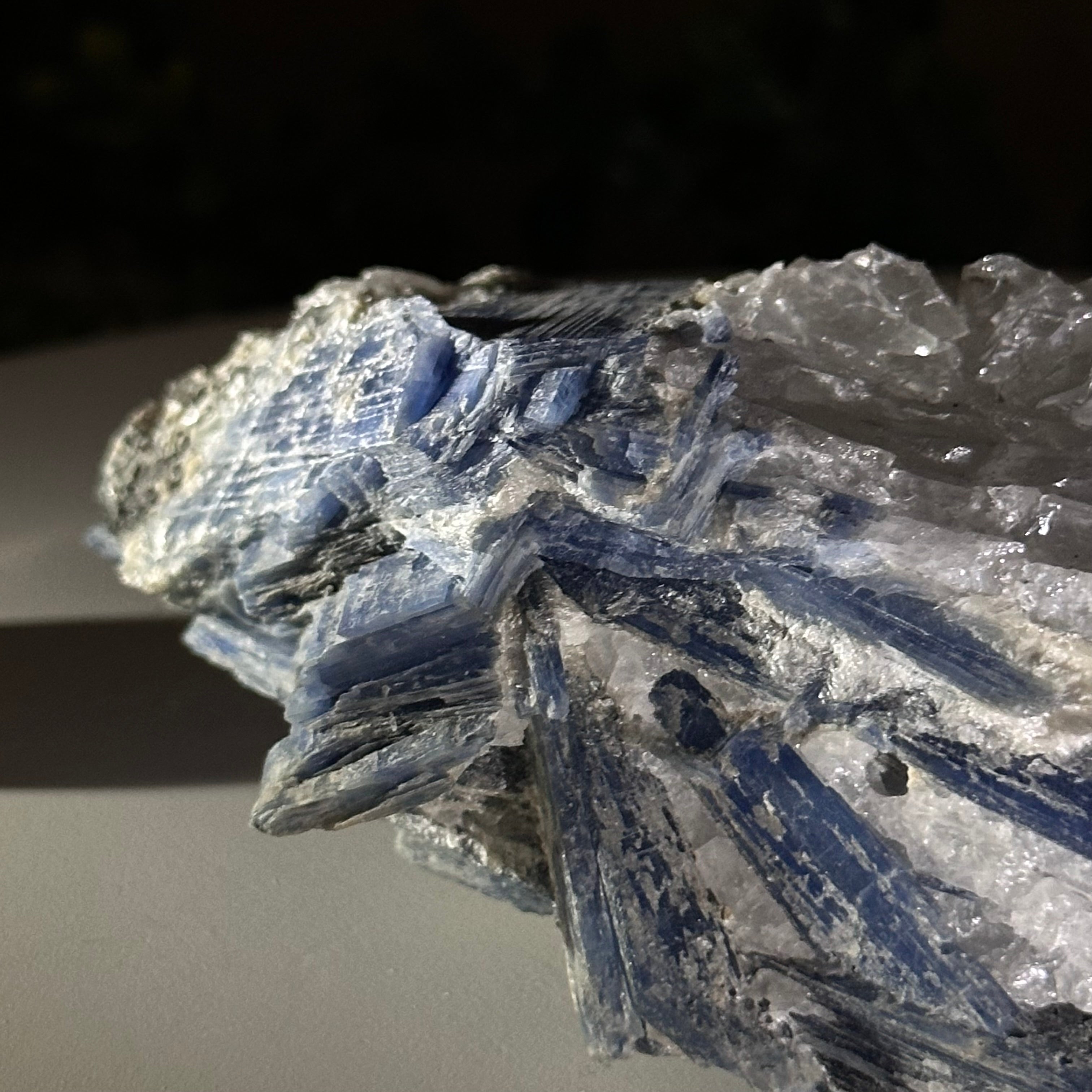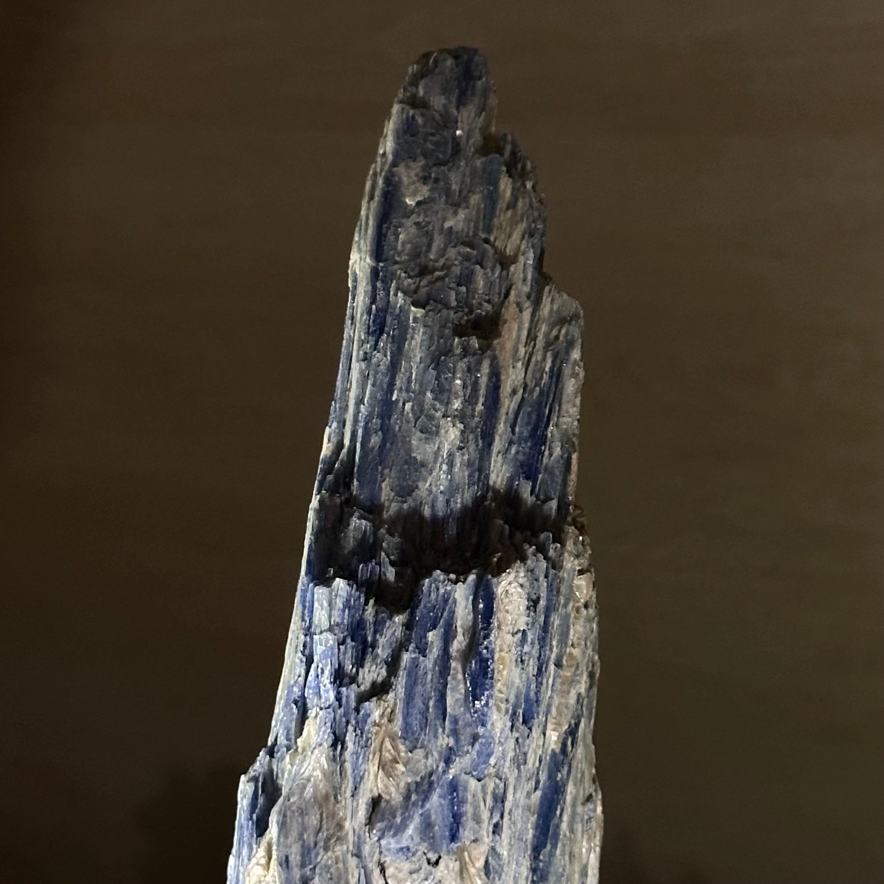 Believers in tantra value and venerate kyanite with the belief it can align chakras, particularly the throat chakra, and encourage psychic abilities. As a focus for meditation, many associate it with high vibrations and repelling negative energy, creating flow through your body and mind. The river of energy that flows through kyanite may reduce inflammation and aid in communication. Kyanite, often present in quartz, is an aluminosilicate mineral, which gives it its shiny, metallic look. Its fibrous characteristics can make it brittle and flaky to the touch.