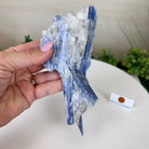 Disclaimer: This is a natural gemstone crystal sold by Brazil Gems® as is and as you see it in its images and video. It is the exact one you will receive. It may contain natural imperfections and/or imperfections, broken edges and repairs from the extraction and prepping processes. Kyanite is a very delicate and brittle gemstone with delicate crystal blades jutting out and handling the piece can inevitably cause its points/blades to break off in small pieces. It's best to handle it as little as possible. At Brazil Gems® we make every effort to get measurements as exact as possible but they are done by human hands and eyes and therefore may have minor discrepancies.